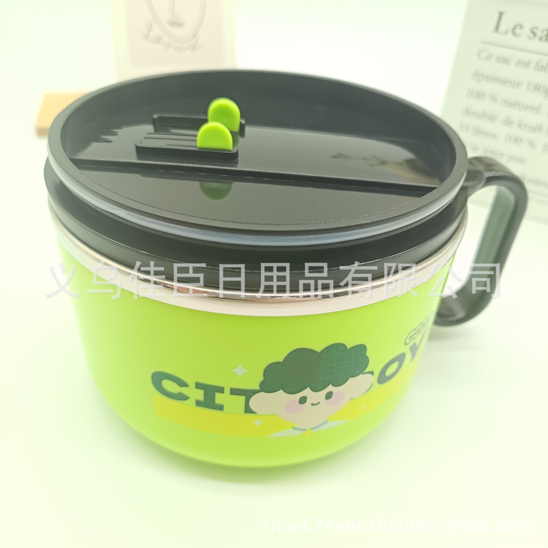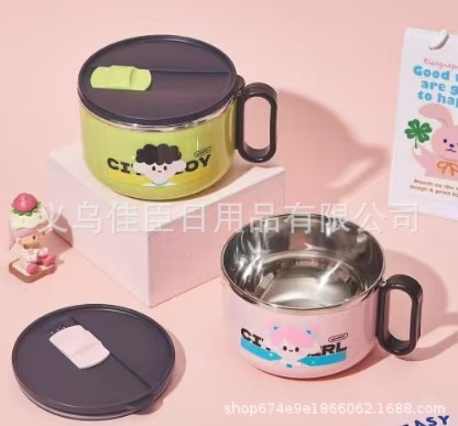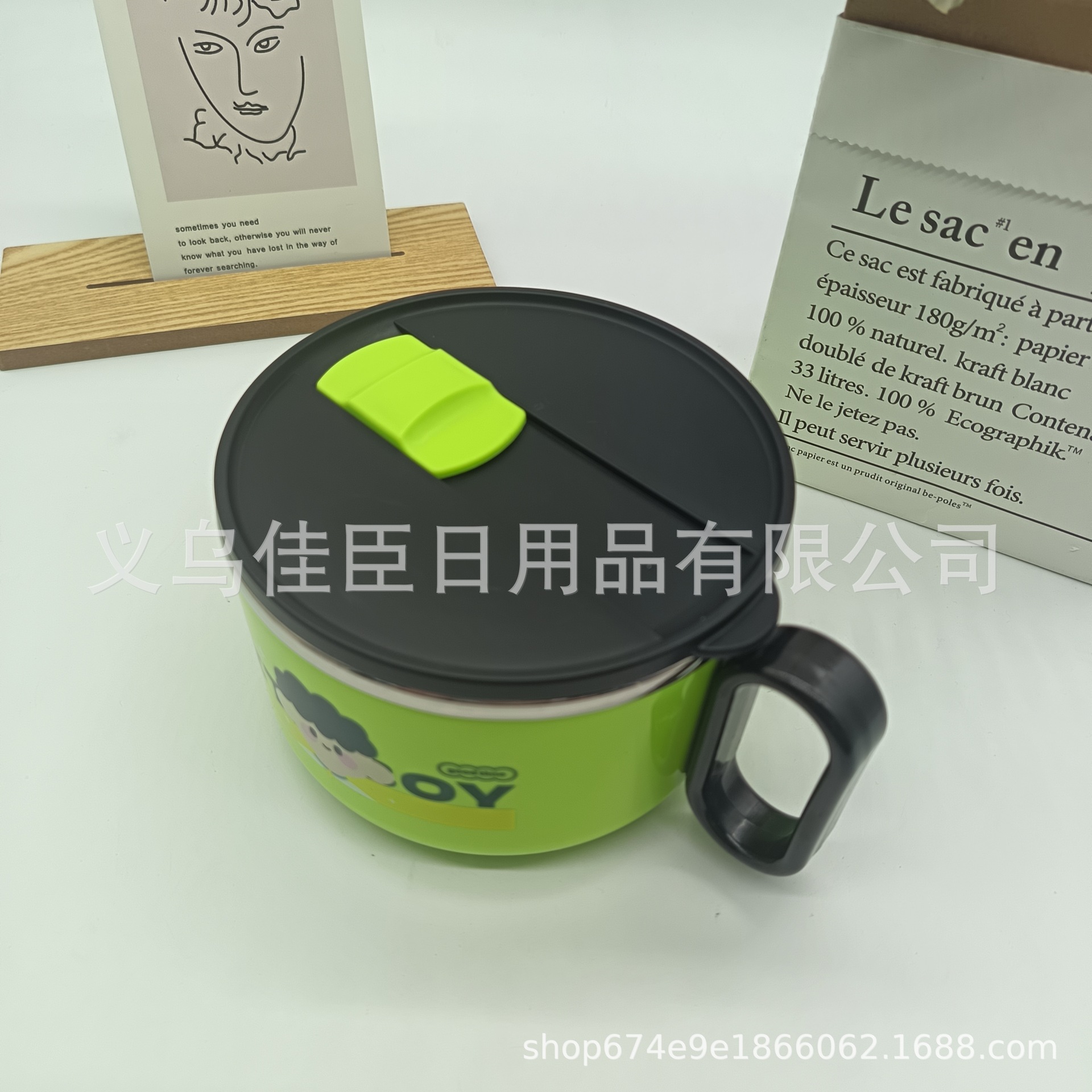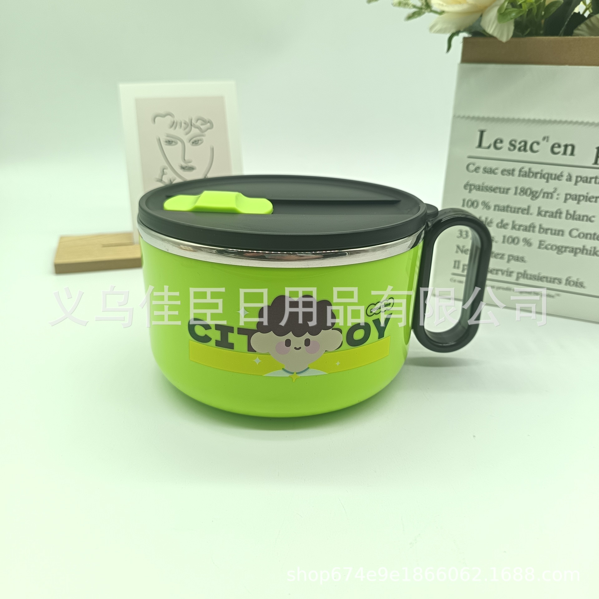 2025亚马逊爆款男孩女孩图案泡面碗带盖不锈钢饭碗圆形午餐盒上班