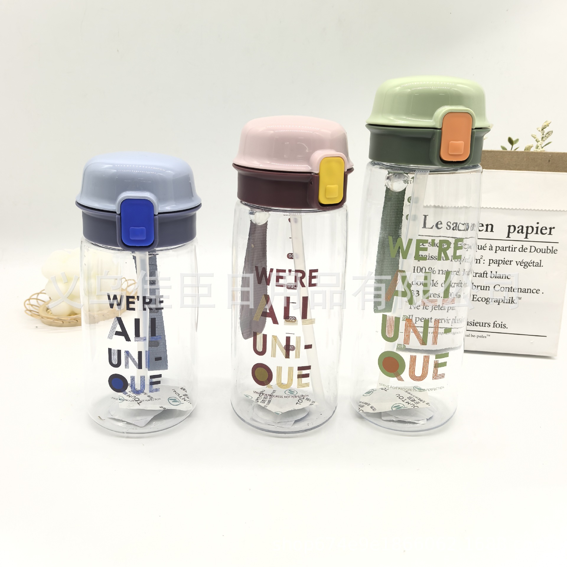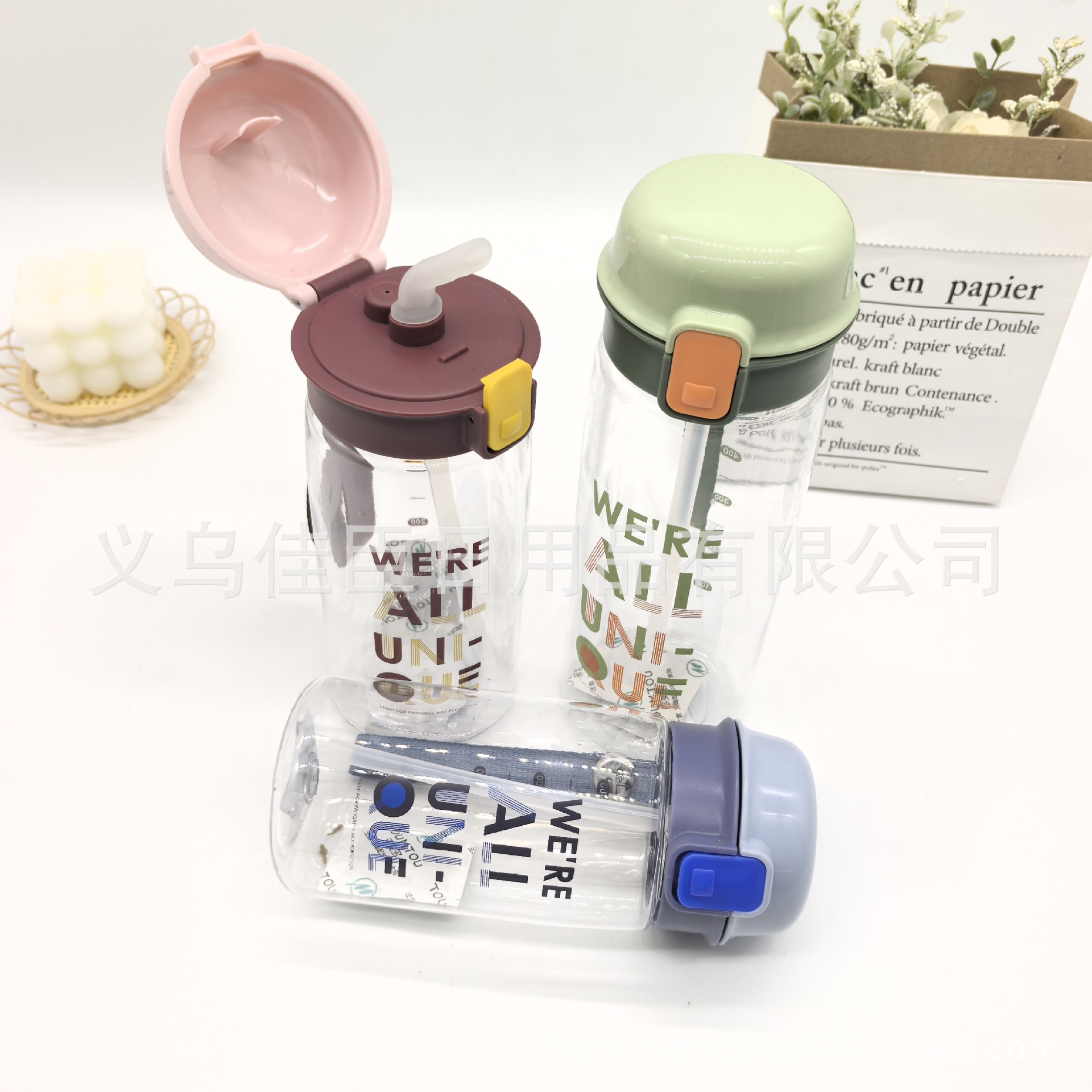 耐高儿童水壶水杯新款字母创意水杯弹盖式便携吸管杯学生塑料杯