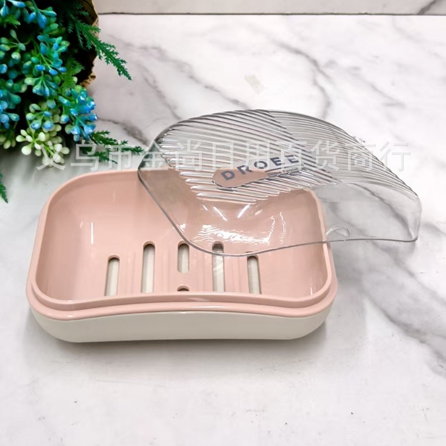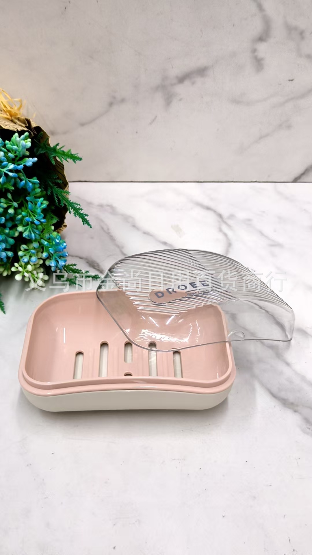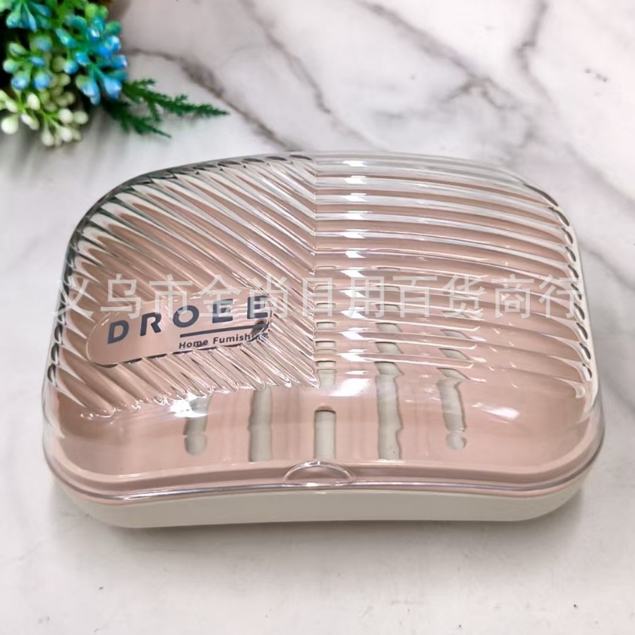 简约便携式带盖透明条纹肥皂盒洗刷香皂盒卫生间洗澡肥皂收纳盒