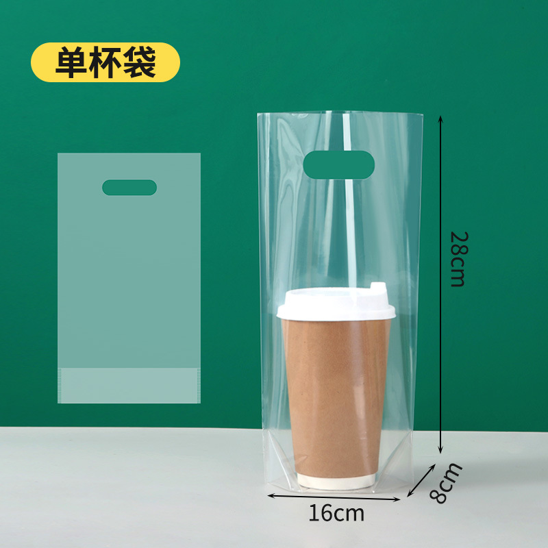 单杯双杯液体奶茶打包袋一次性豆浆果汁咖啡外卖加厚塑料手提袋