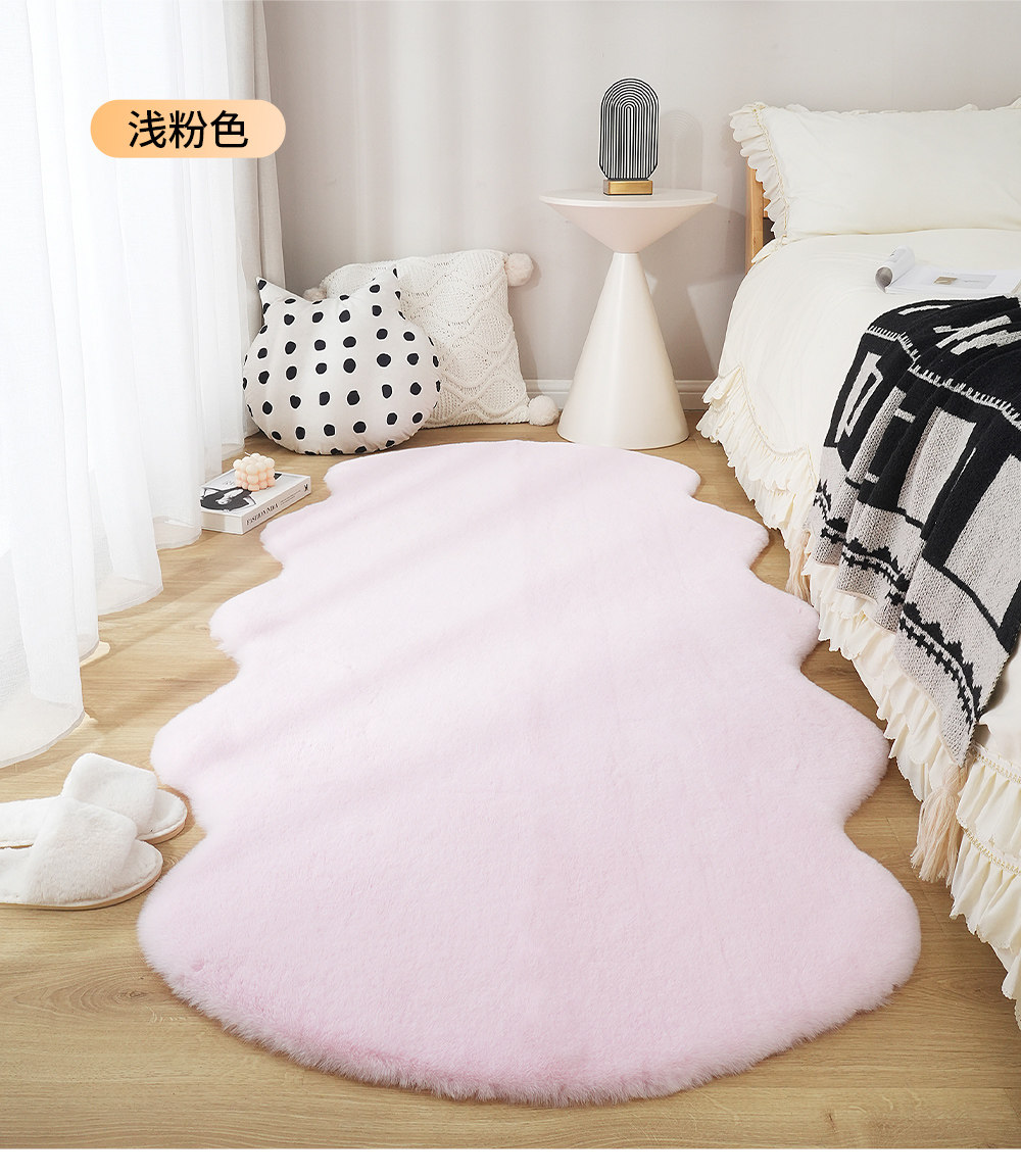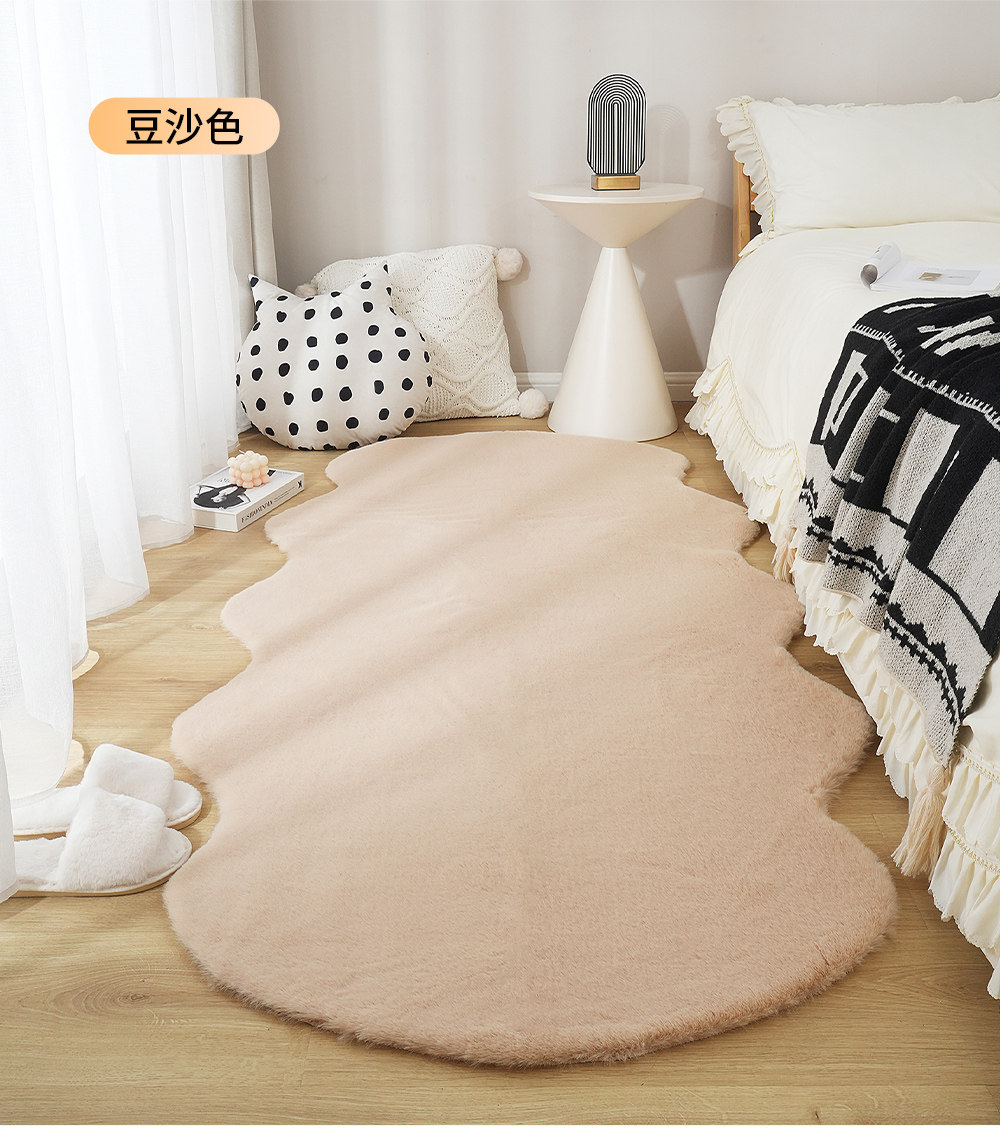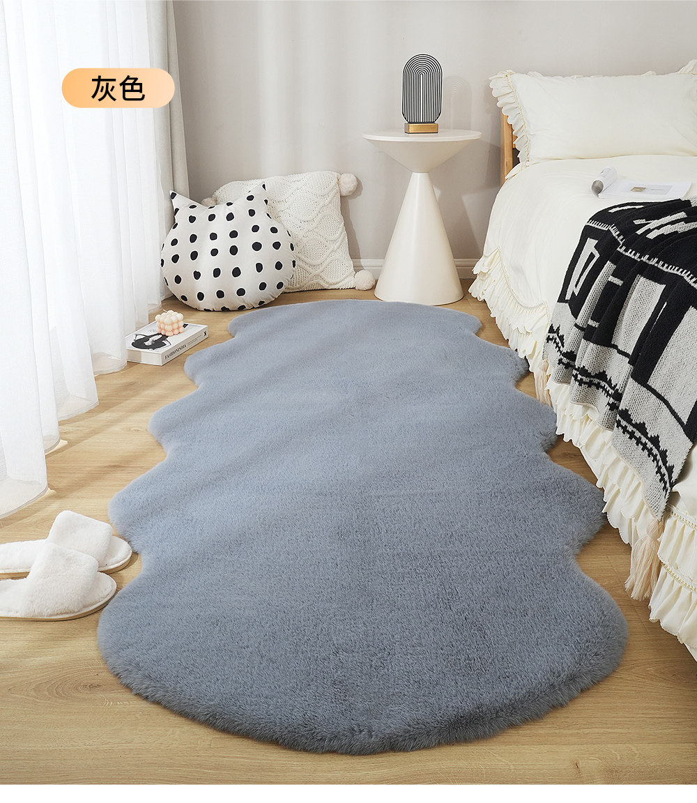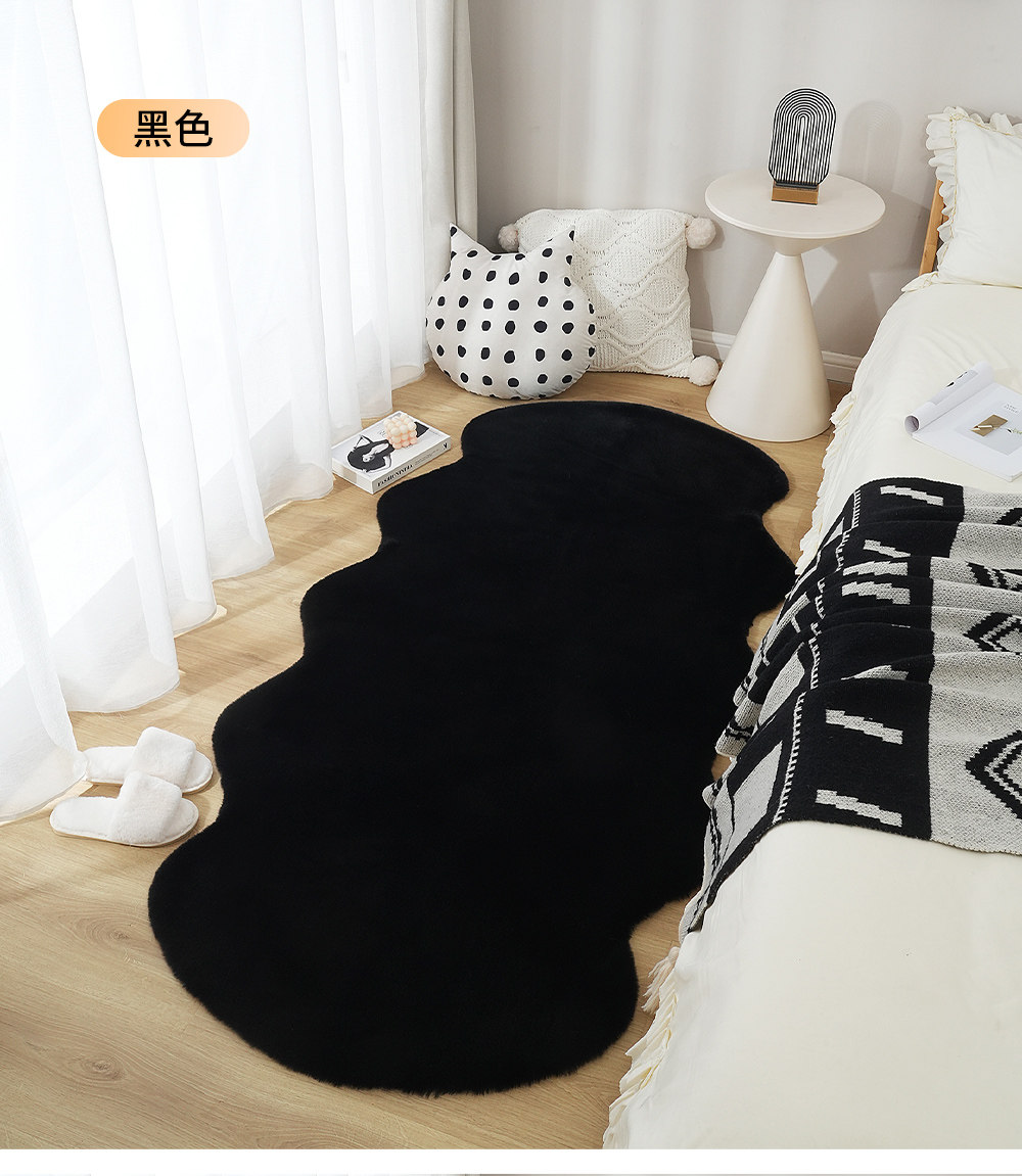 加厚仿兔毛绒地毯卧室床边毯衣不规则身镜前黑色地垫光脚踩撸猫感