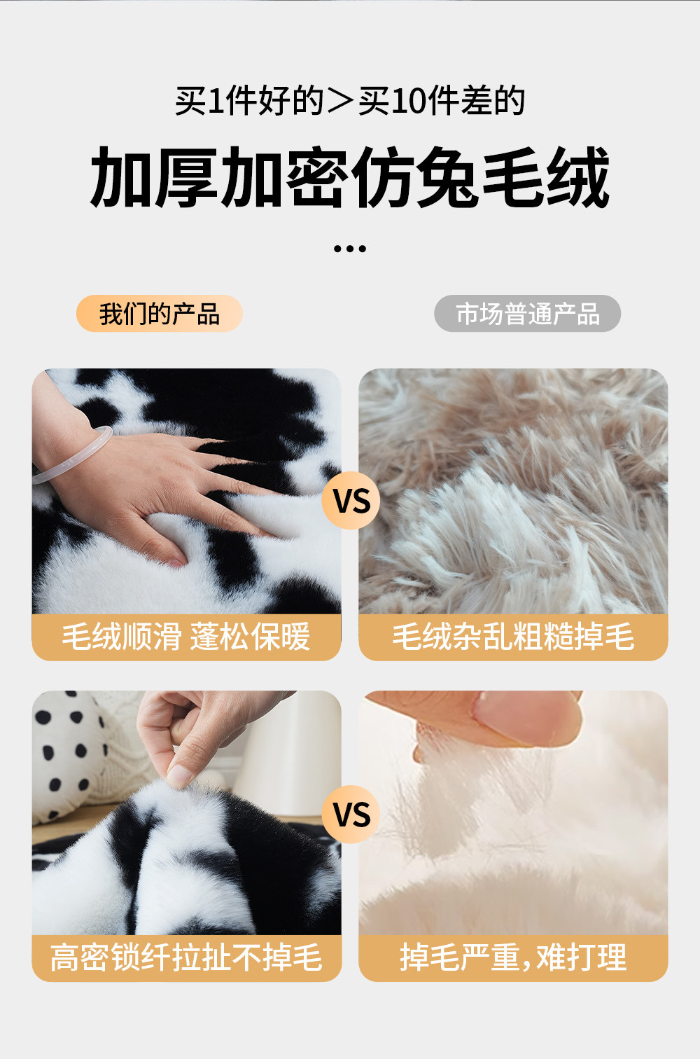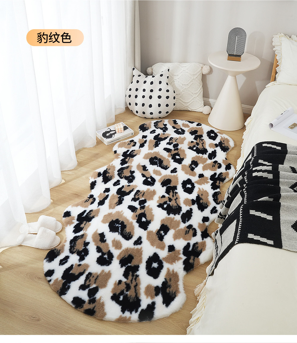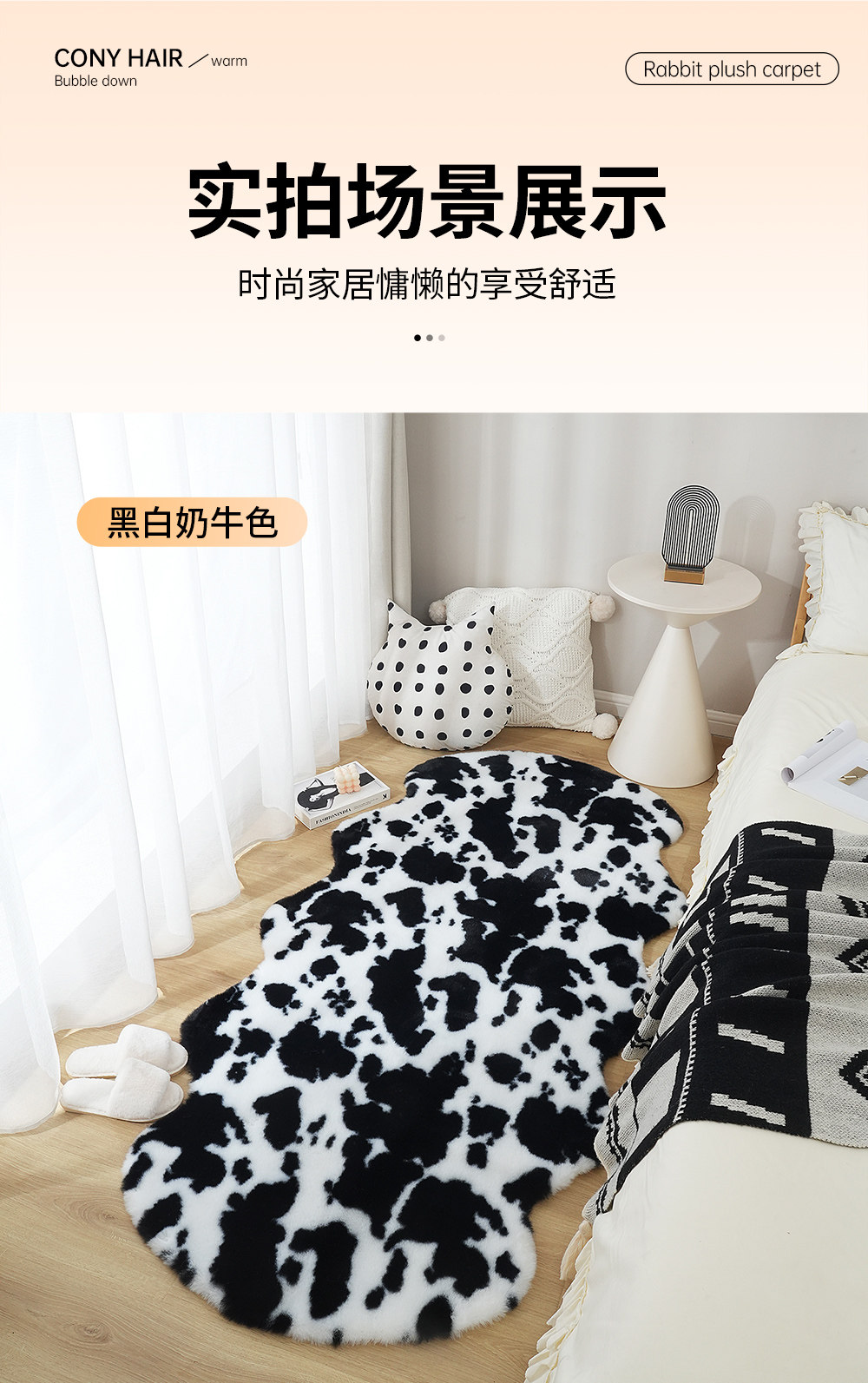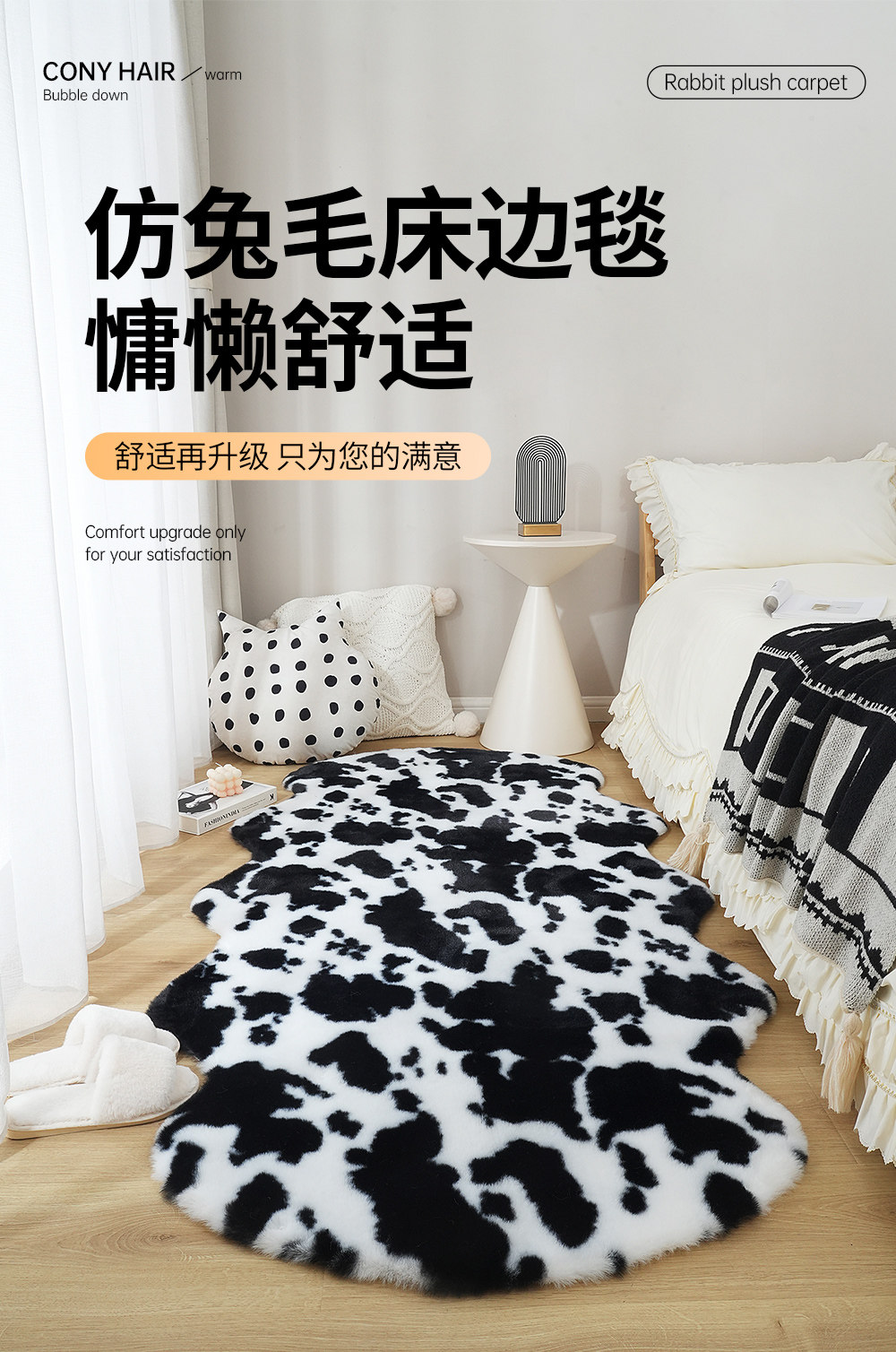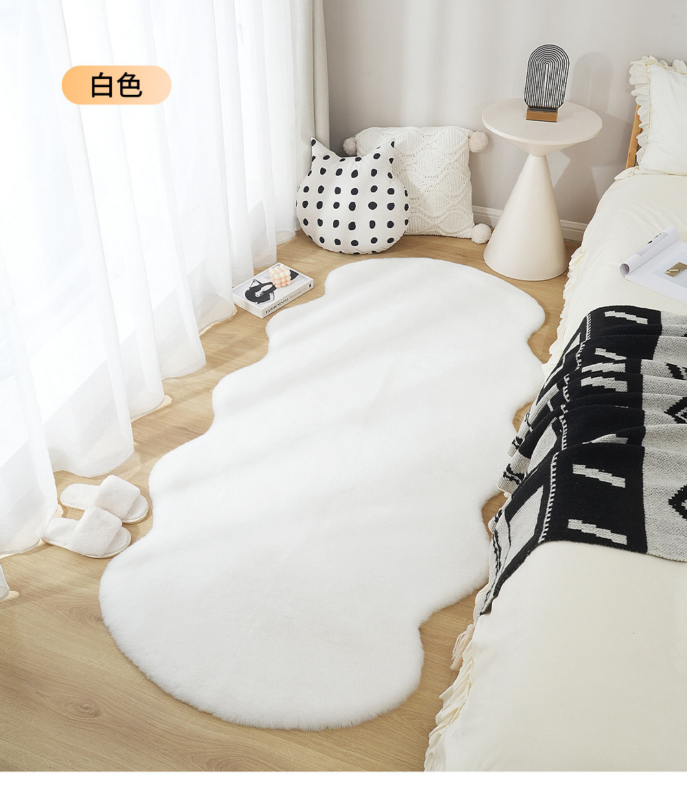 加厚仿兔毛绒地毯卧室床边毯衣不规则身镜前黑色地垫光脚踩撸猫感