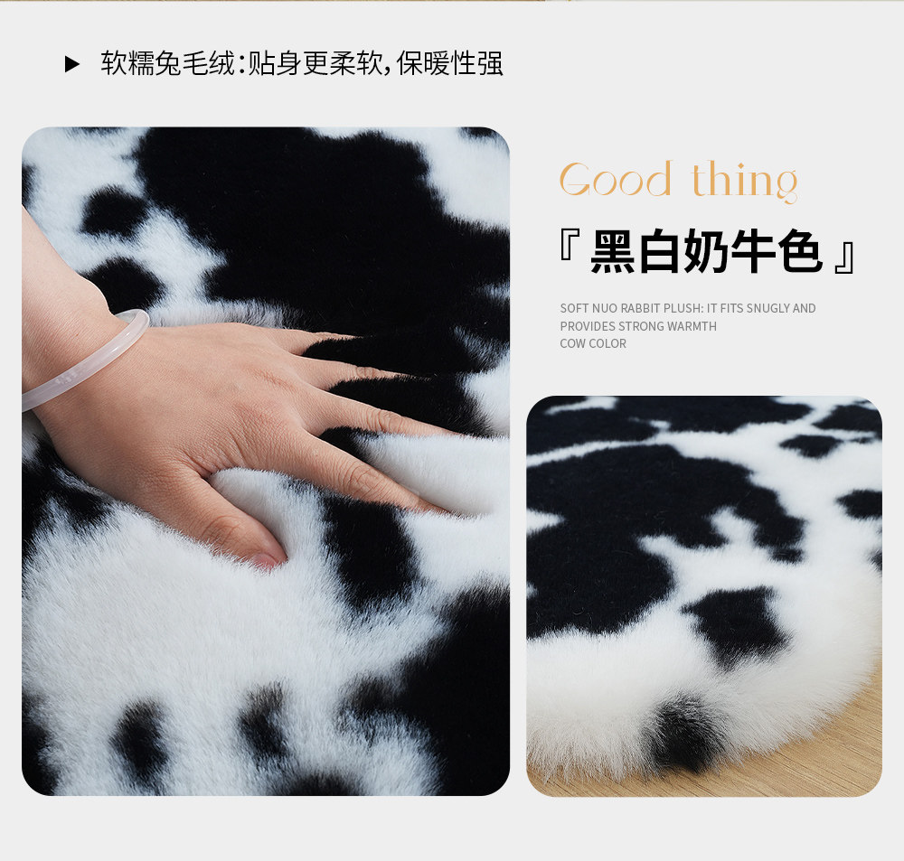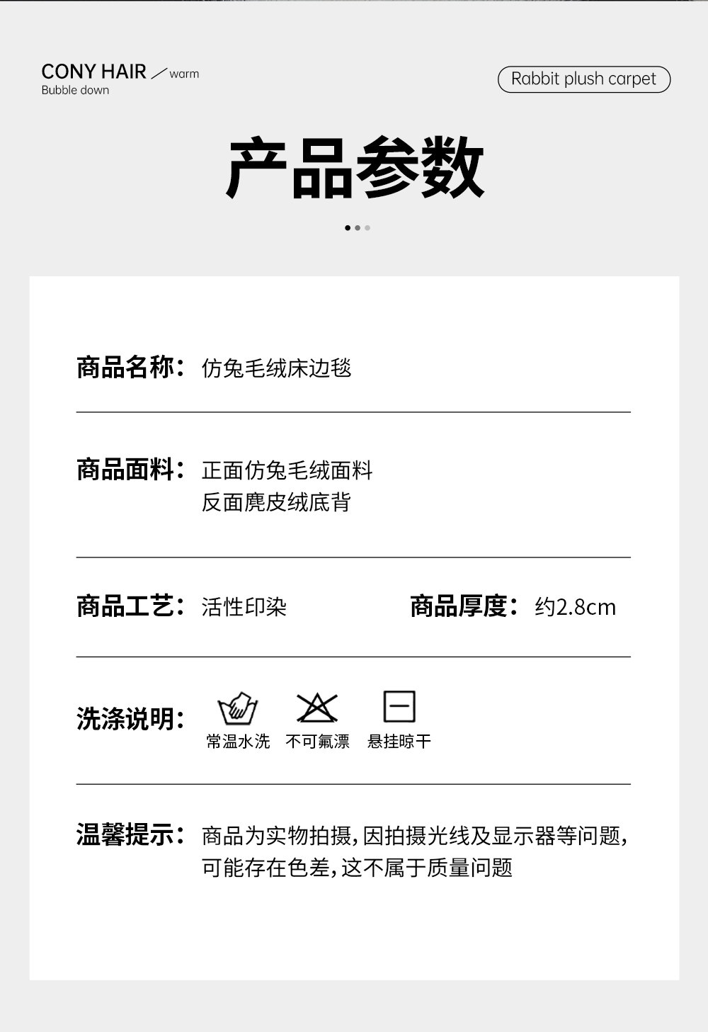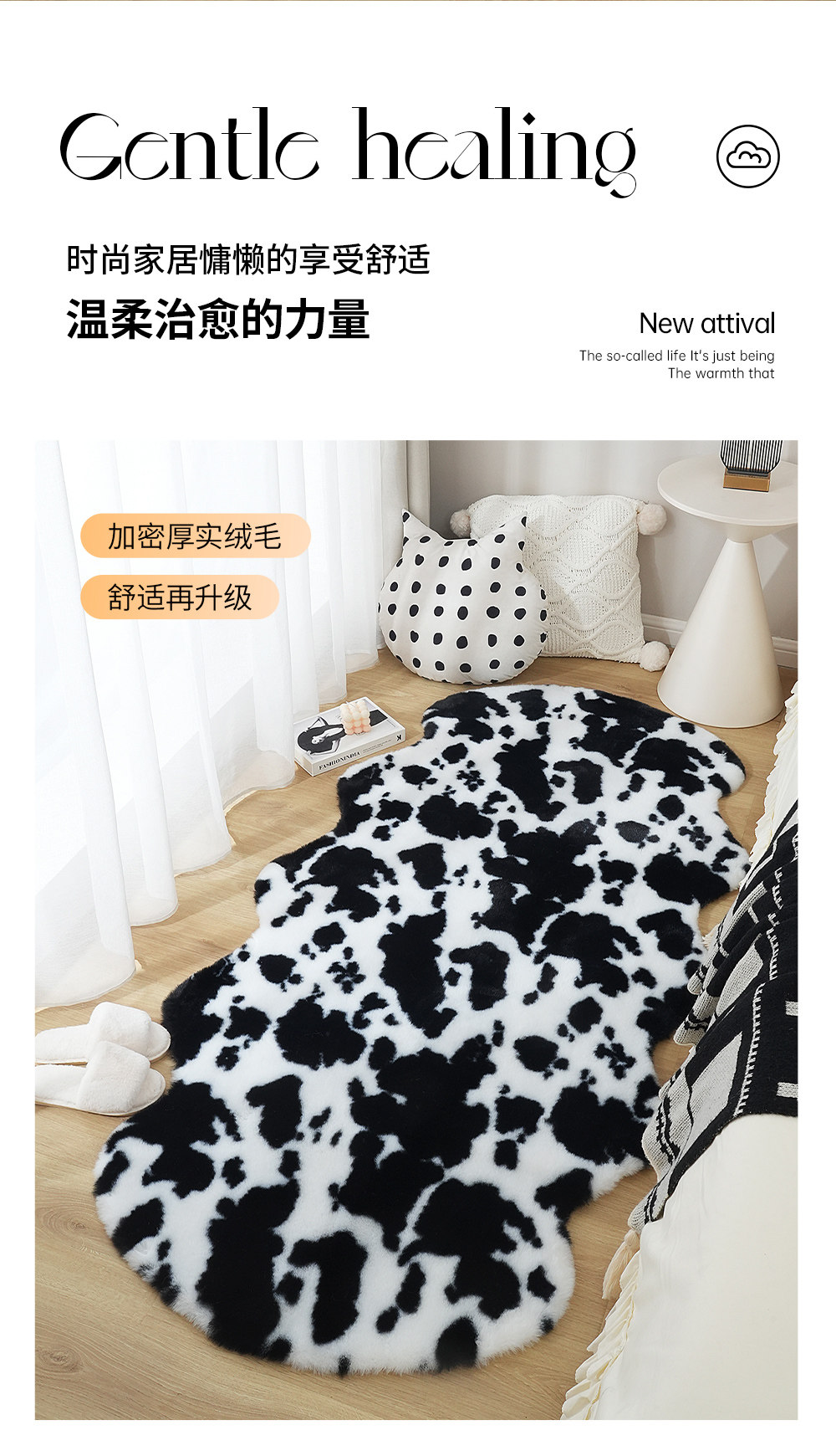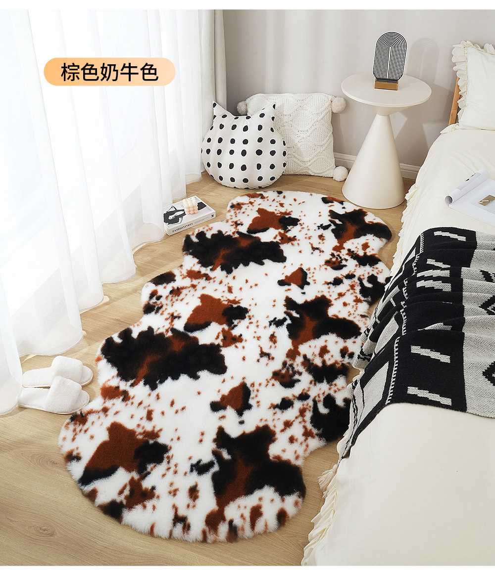 加厚仿兔毛绒地毯卧室床边毯衣不规则身镜前黑色地垫光脚踩撸猫感