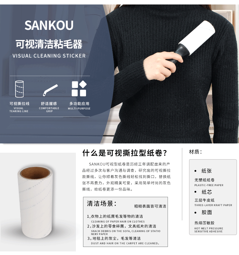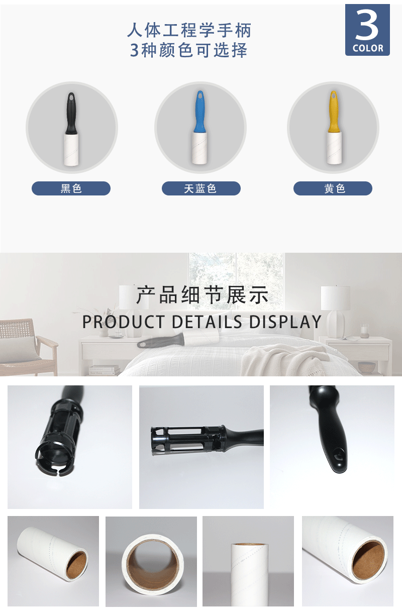 家用床上宠物地板粘毛器可撕式清洁胶带滚刷纸粘尘纸粘毛替换卷纸