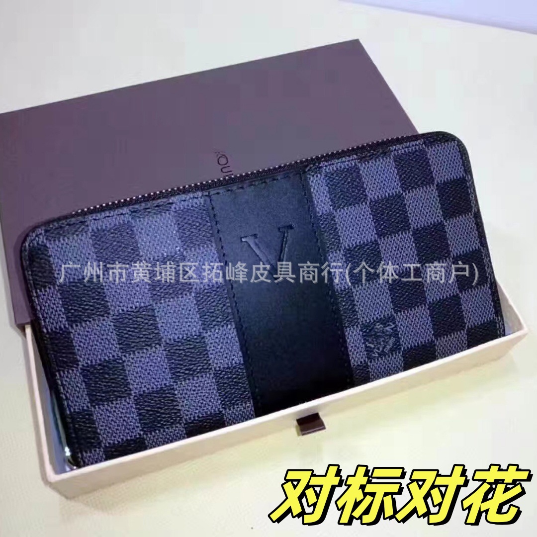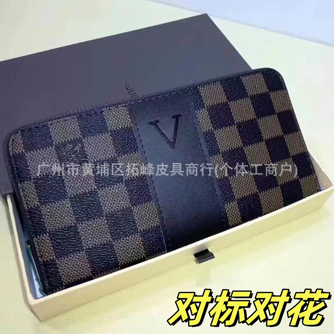 驴家经典款老花印花男女通用中长款钱包条纹织带横款拉链钱包男款