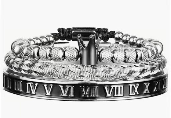 跨境热卖光面皇冠手链套装菠萝珠罗马数字麻花手镯套装