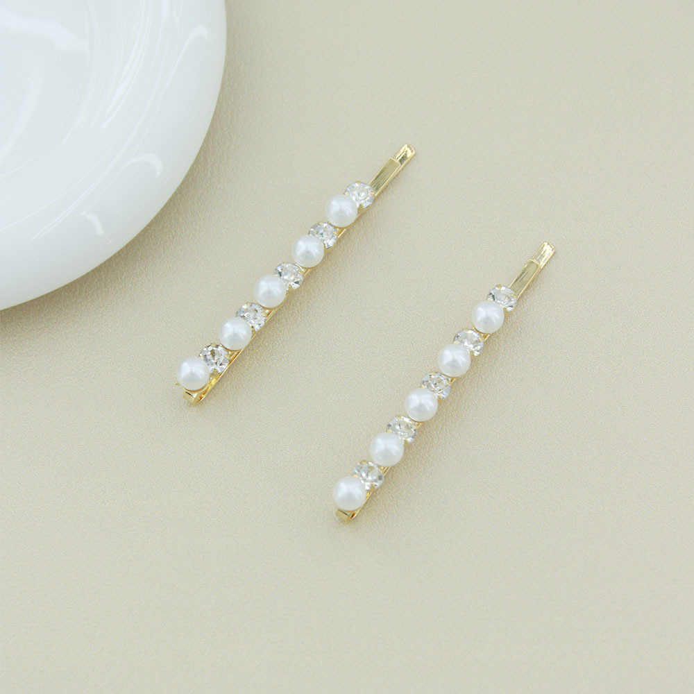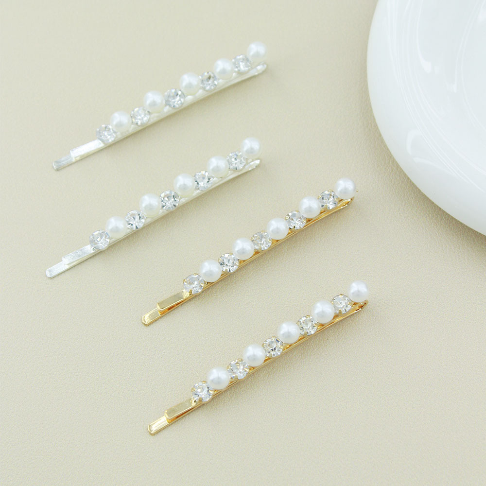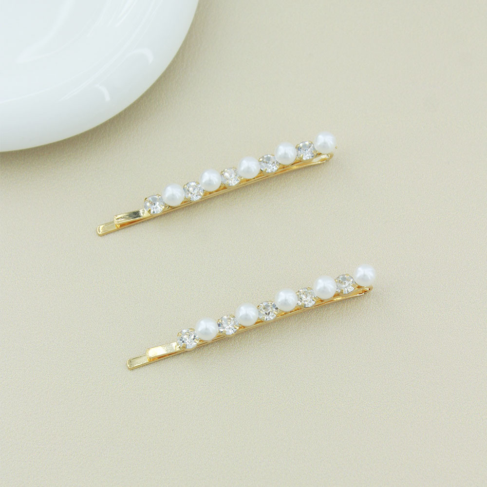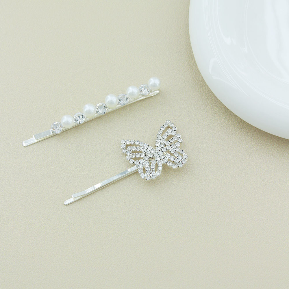 外贸时尚优雅气质韩版蝴蝶结珍珠水钻一字夹女轻奢发饰头饰