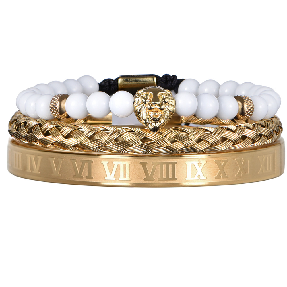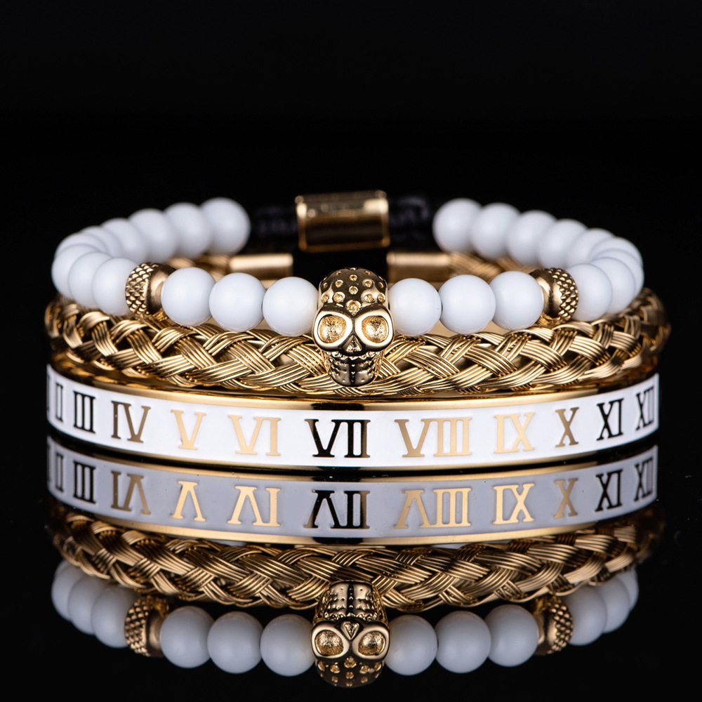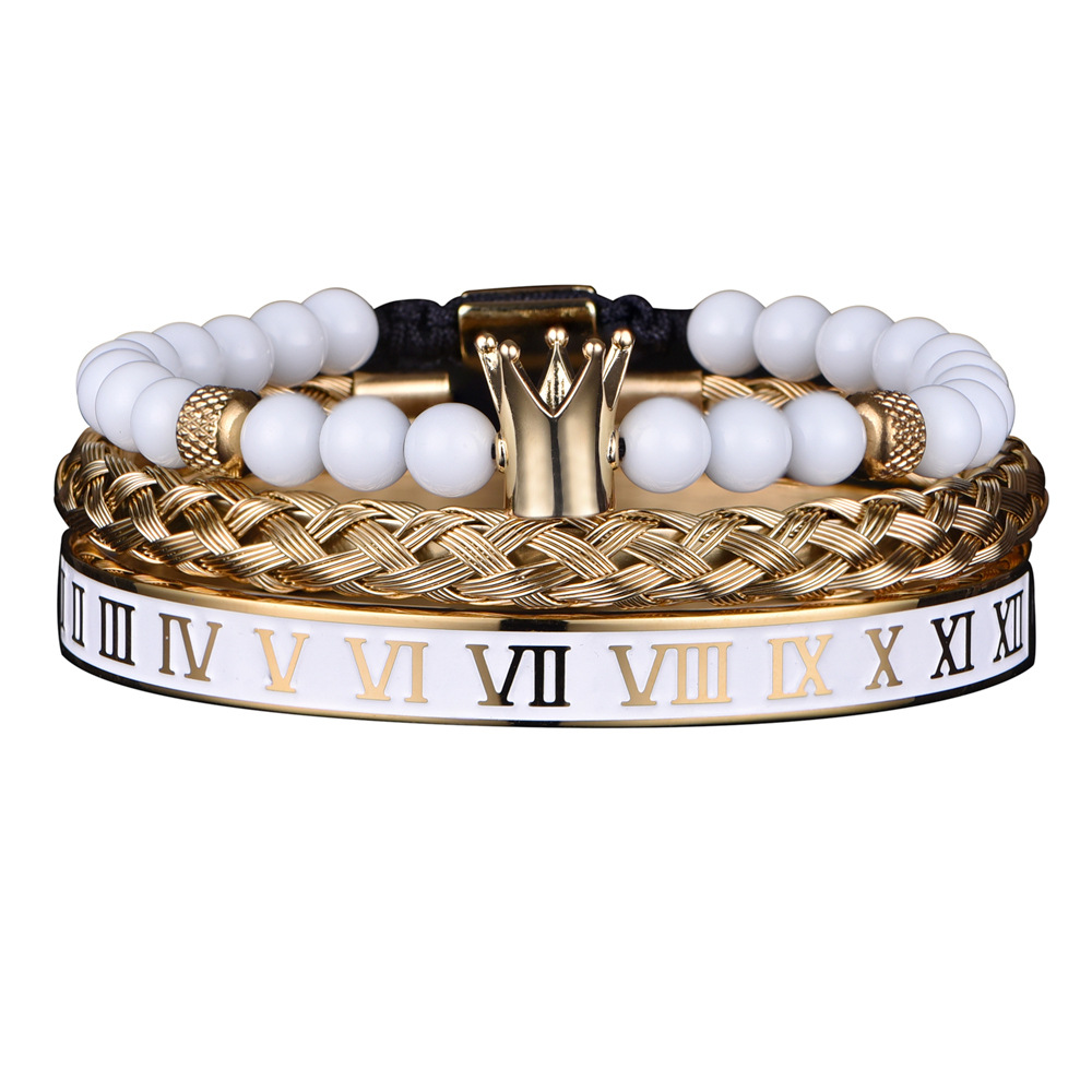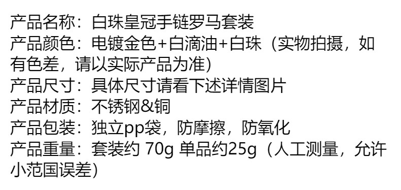 跨境热卖白珠皇冠手链套装滴胶珐琅不锈钢罗马数字手镯套装