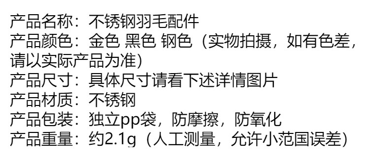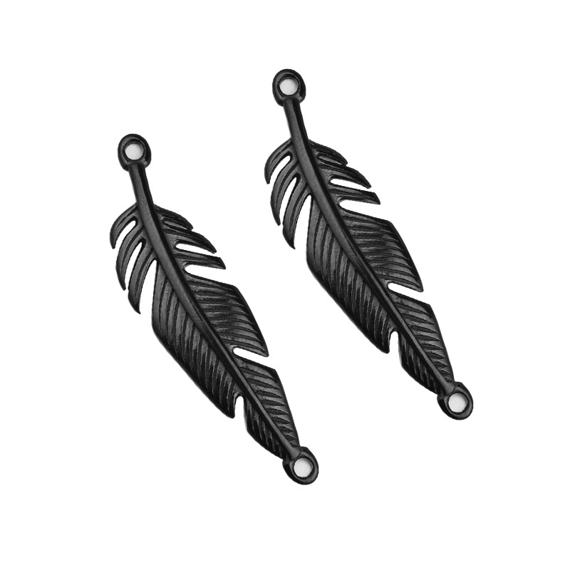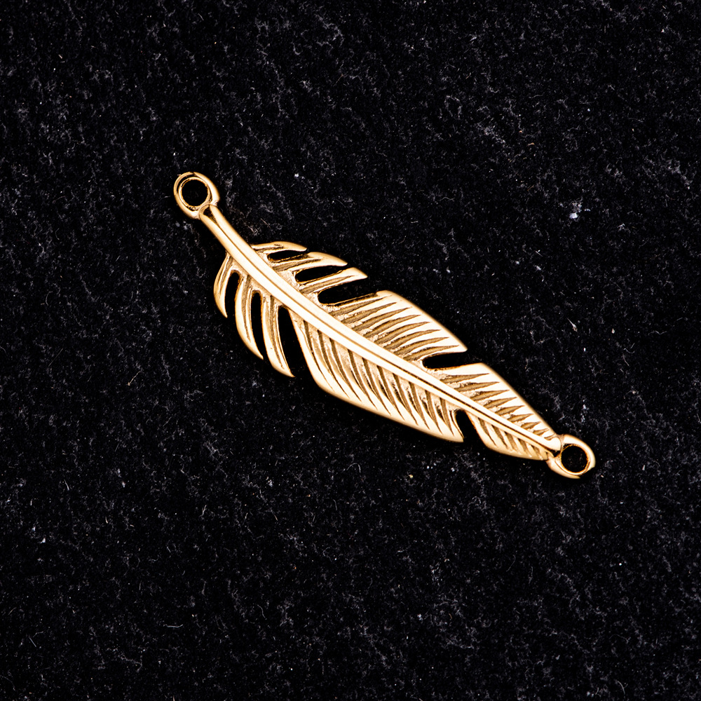 跨境羽毛吊坠不锈钢项链手链双孔连接挂件真空镀DIY饰品手工配件