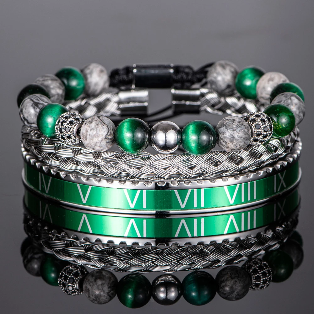 亚马逊跨境热卖天然青金石手链套装麻花罗马数字手链套装