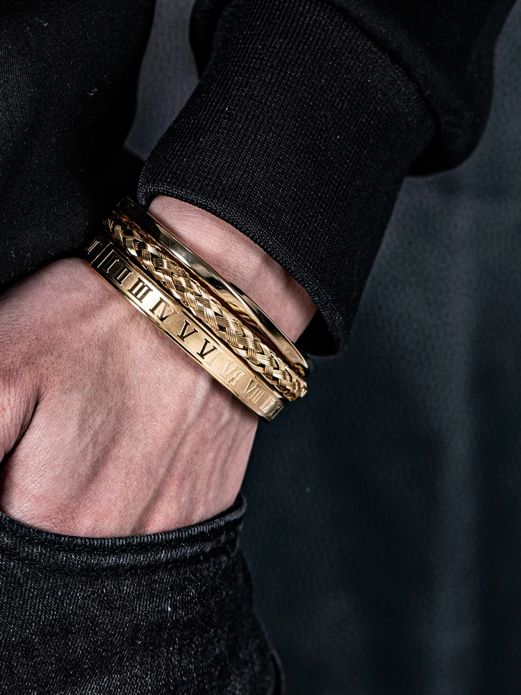 跨境热卖不锈钢乌比莫斯形不规则手镯罗马数字弹力麻花套装