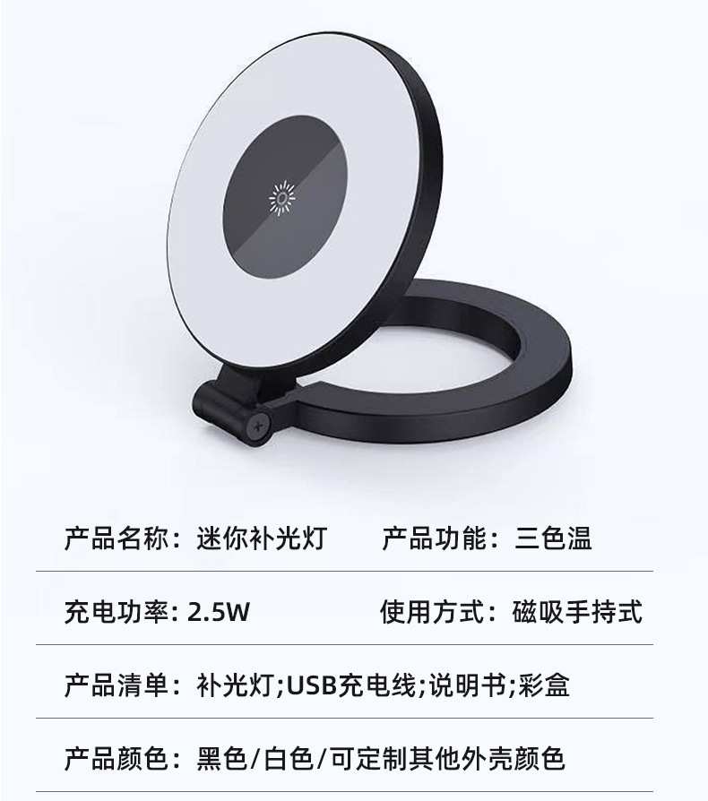LED迷你磁吸手机补光灯适用磁吸手机拍照摄影支架补光灯三档调节
