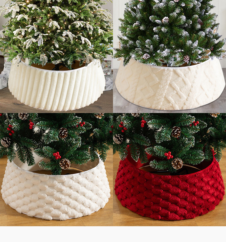 跨境亚马逊新款圣诞节装饰毛绒花纹树围家居圣诞树酒店装饰树裙