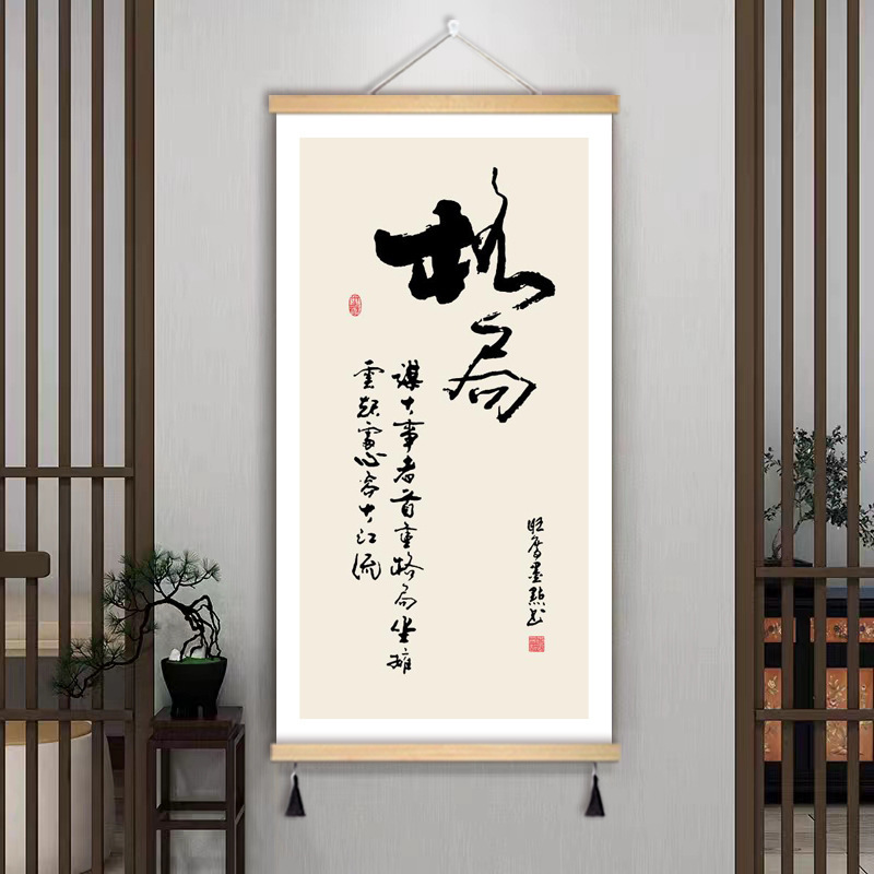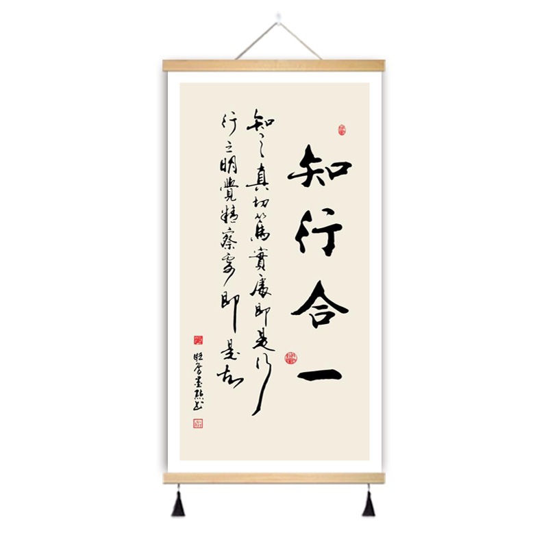 知行合一字画办公室卷轴挂画玄关墙壁画新中式书房茶室书法