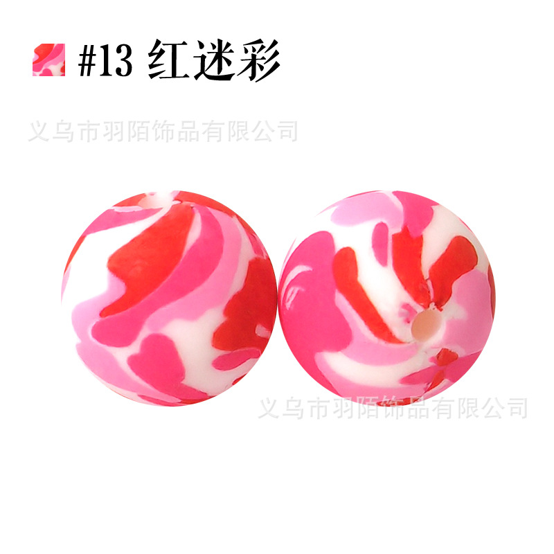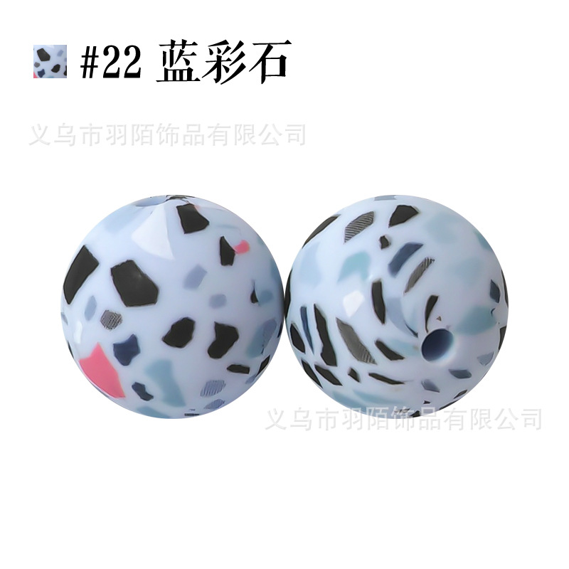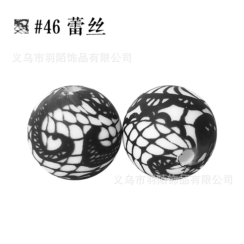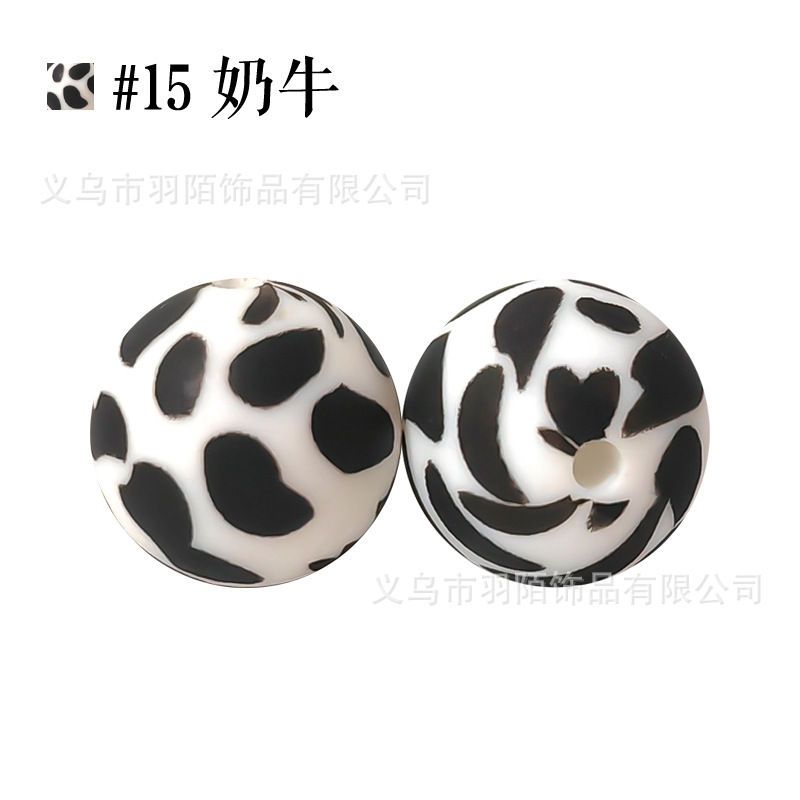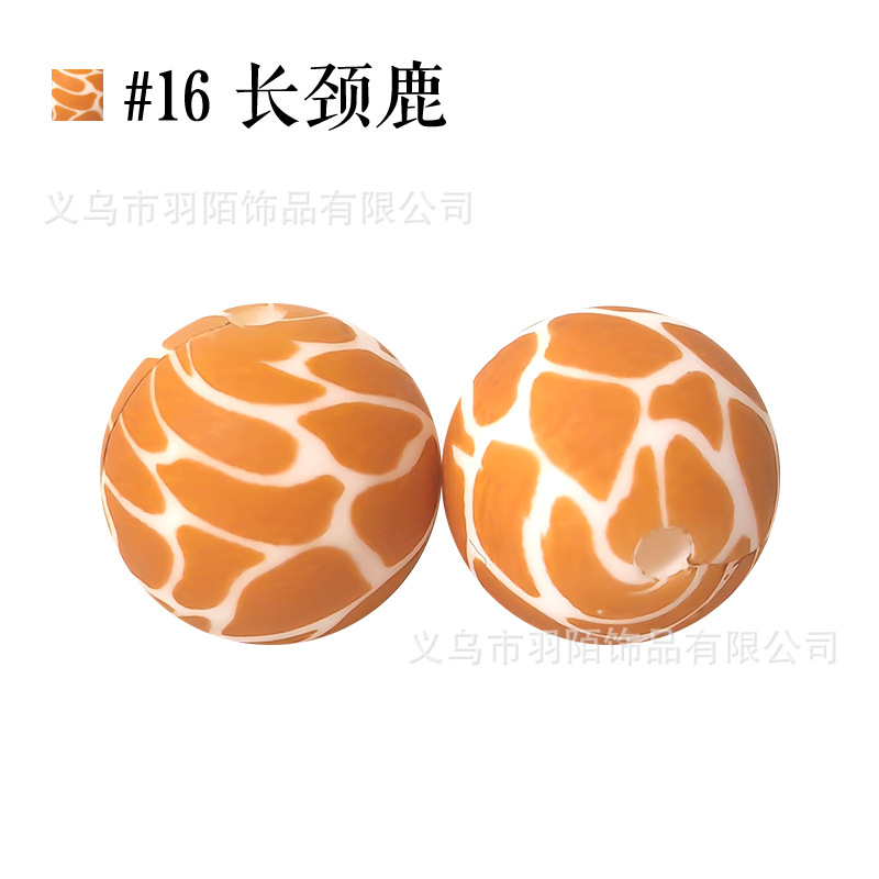 水印硅胶珠子 15mm硅胶圆珠豹纹珠水转印硅胶珠子奶嘴链圆珠配件