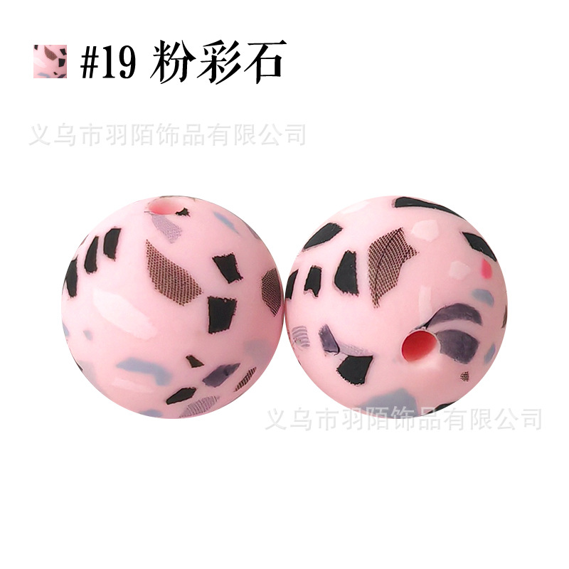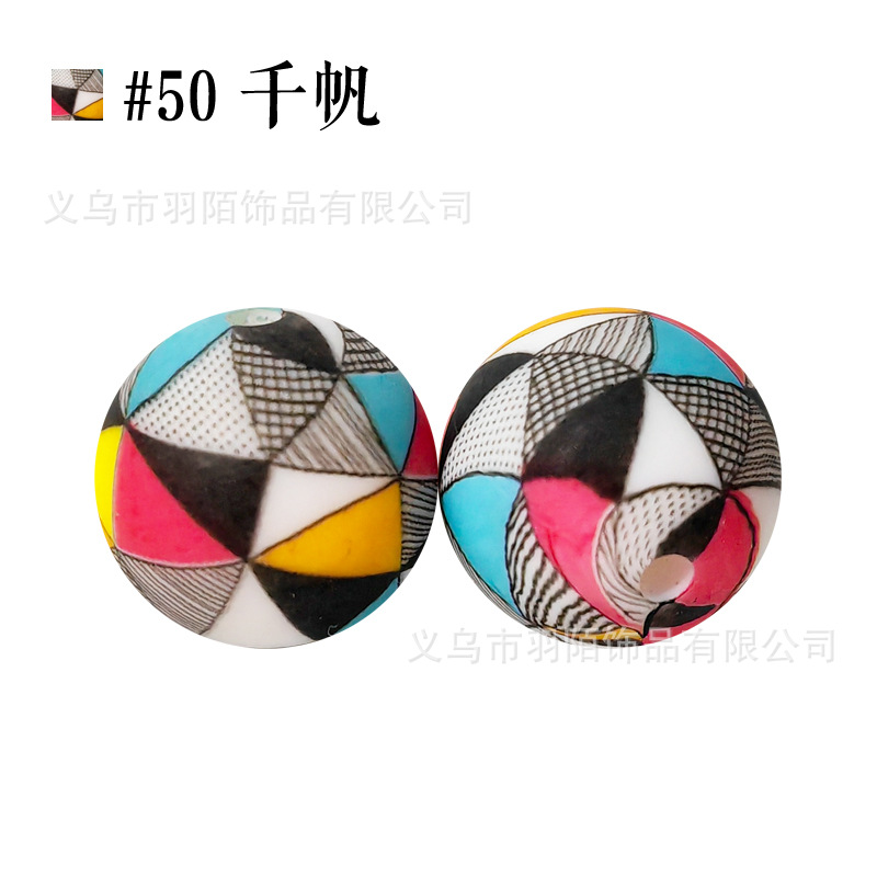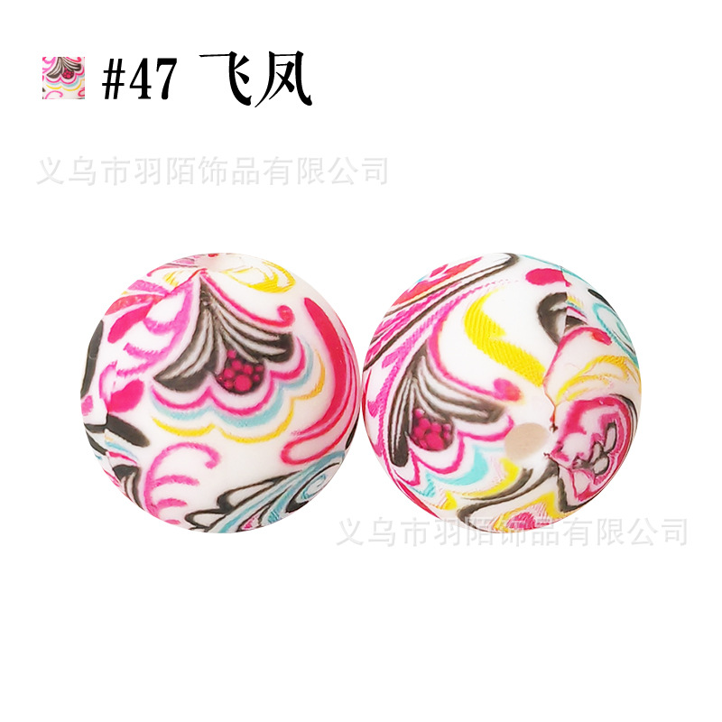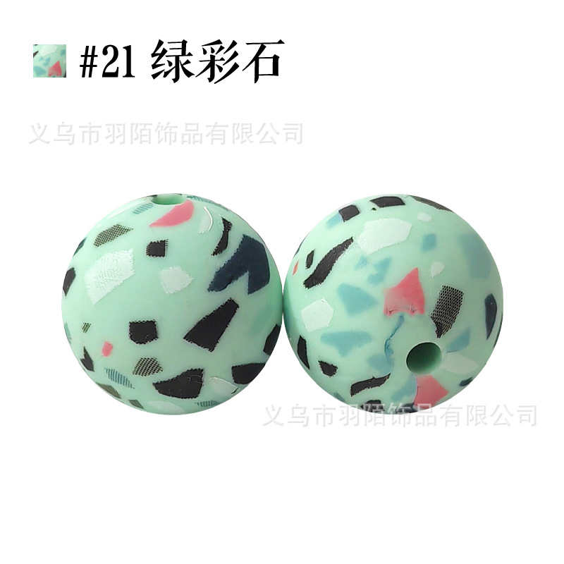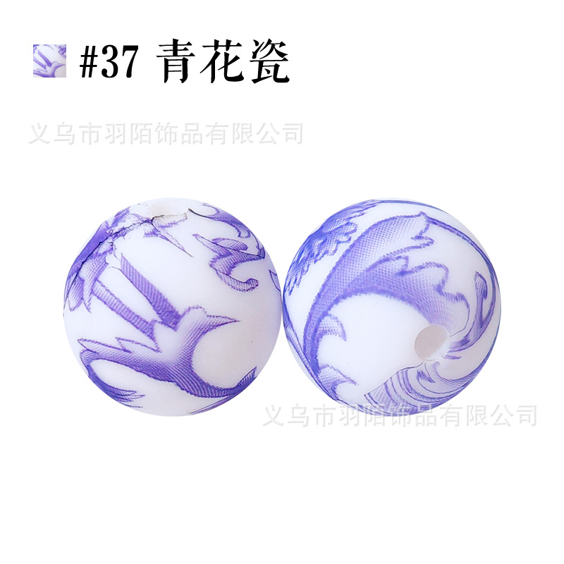 水印硅胶珠子 15mm硅胶圆珠豹纹珠水转印硅胶珠子奶嘴链圆珠配件