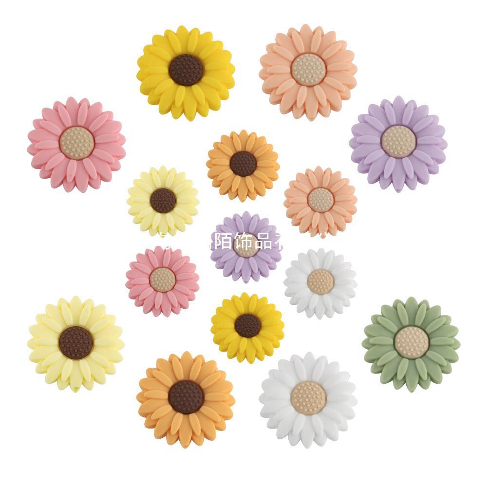 硅胶珠 20-30mm雏菊硅胶珠花朵硅胶圆珠DIY手工饰品配件手链散珠