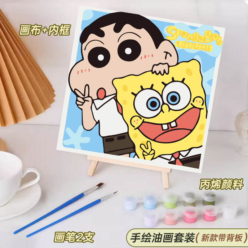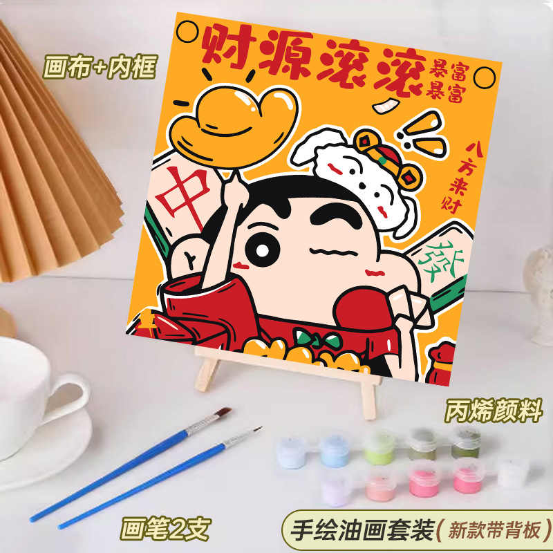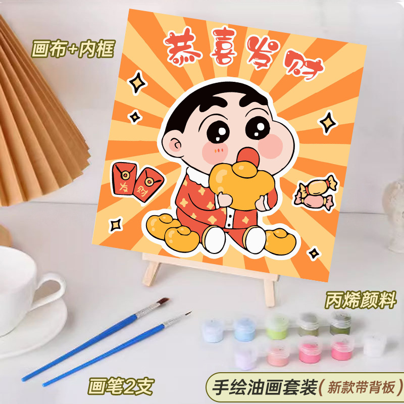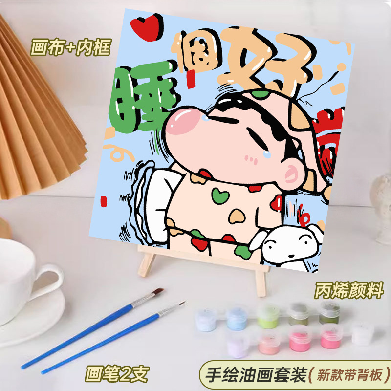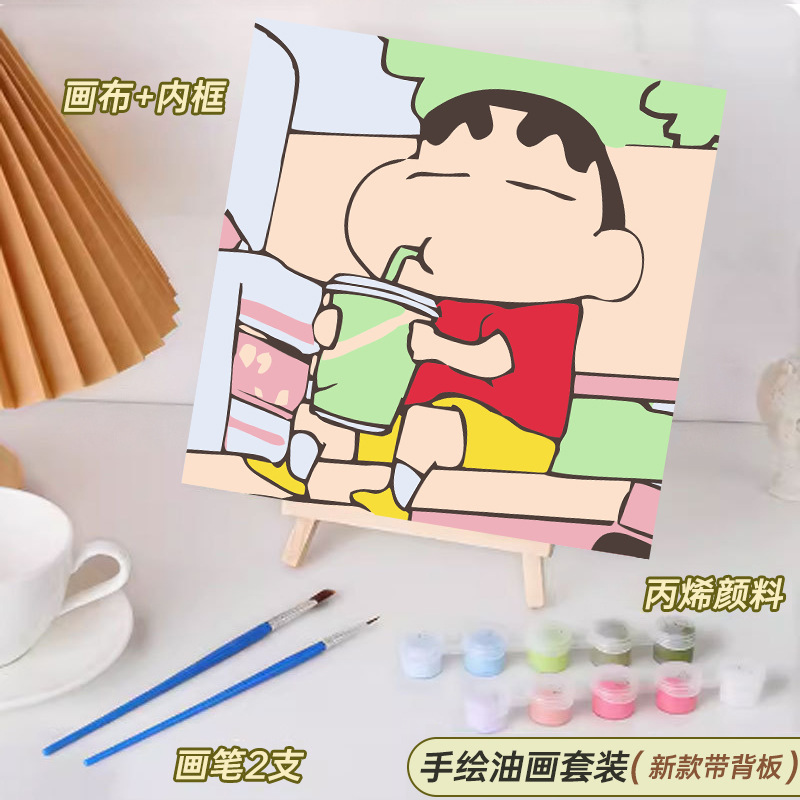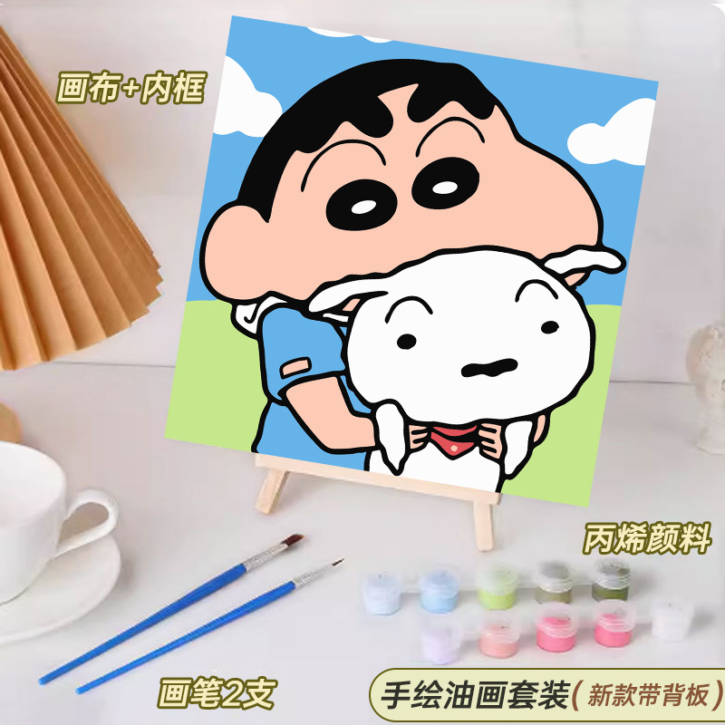 蜡笔小新diy填充数字油画动漫卡通装饰画手工填充填色画厂家批发