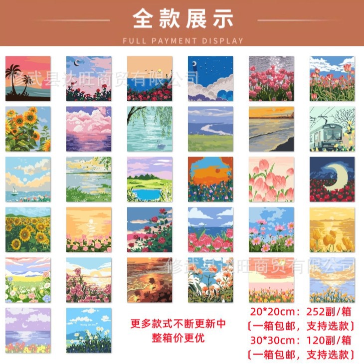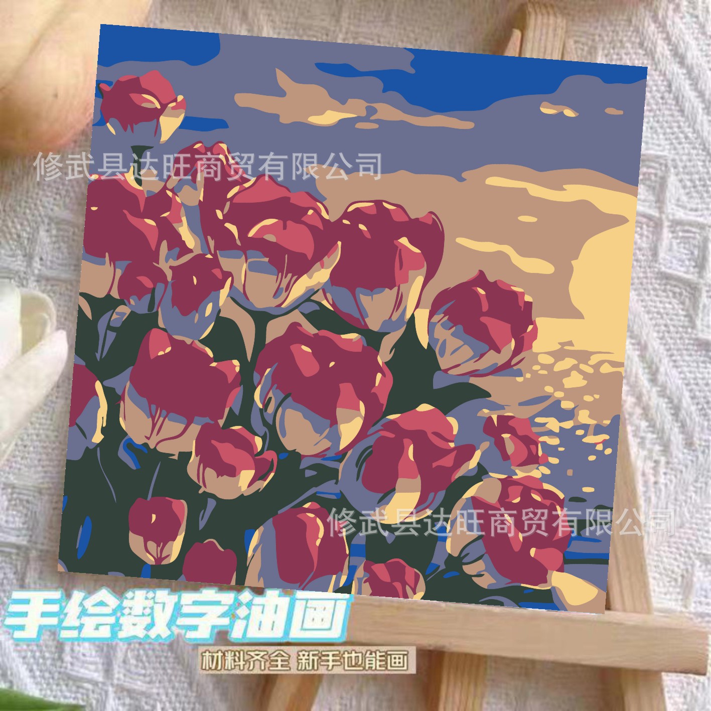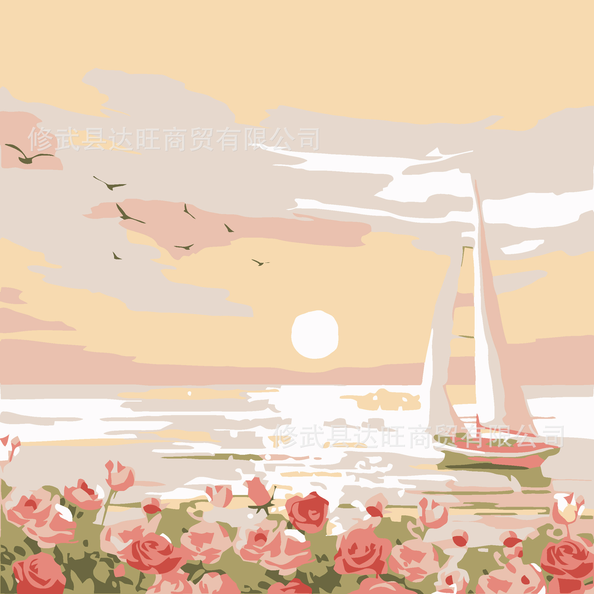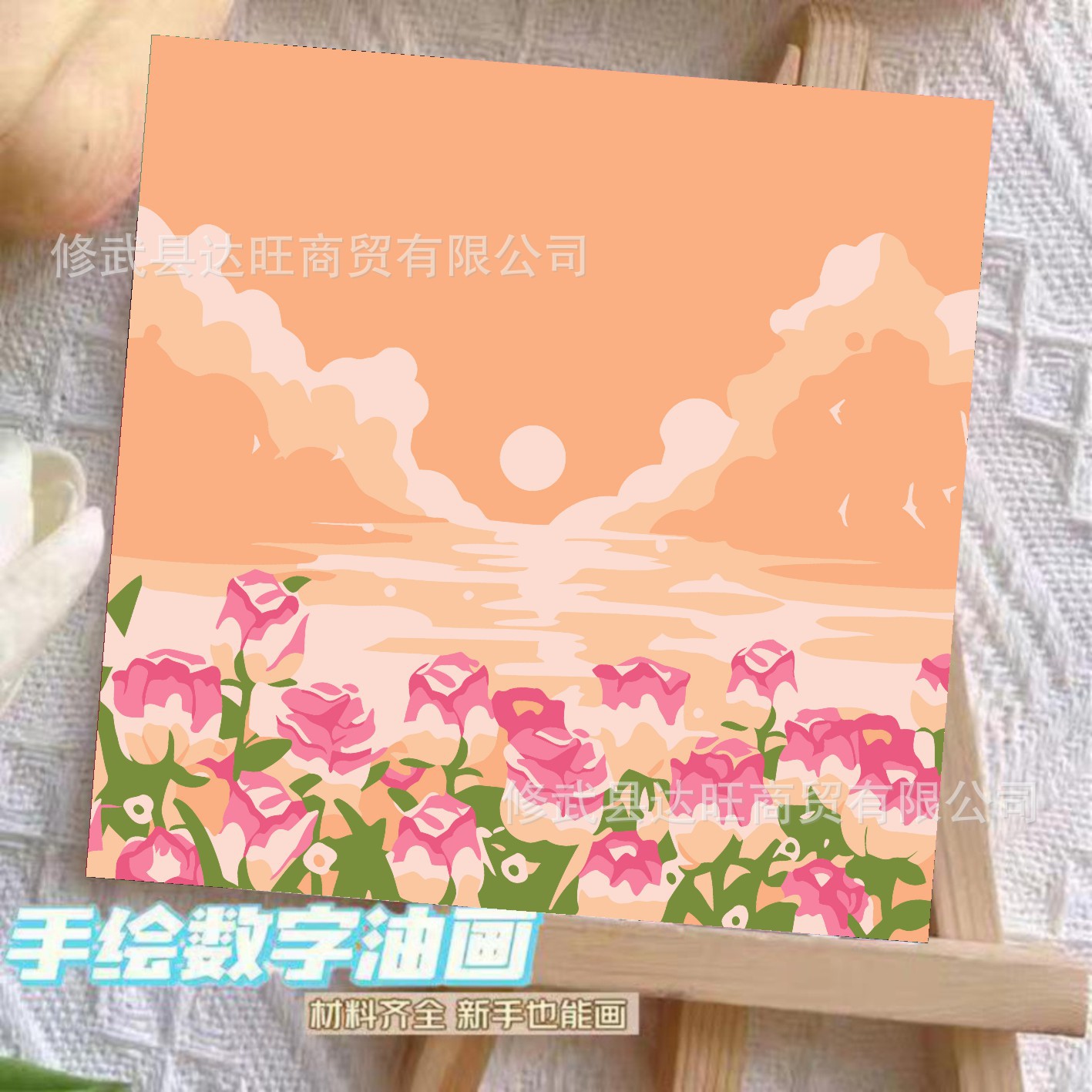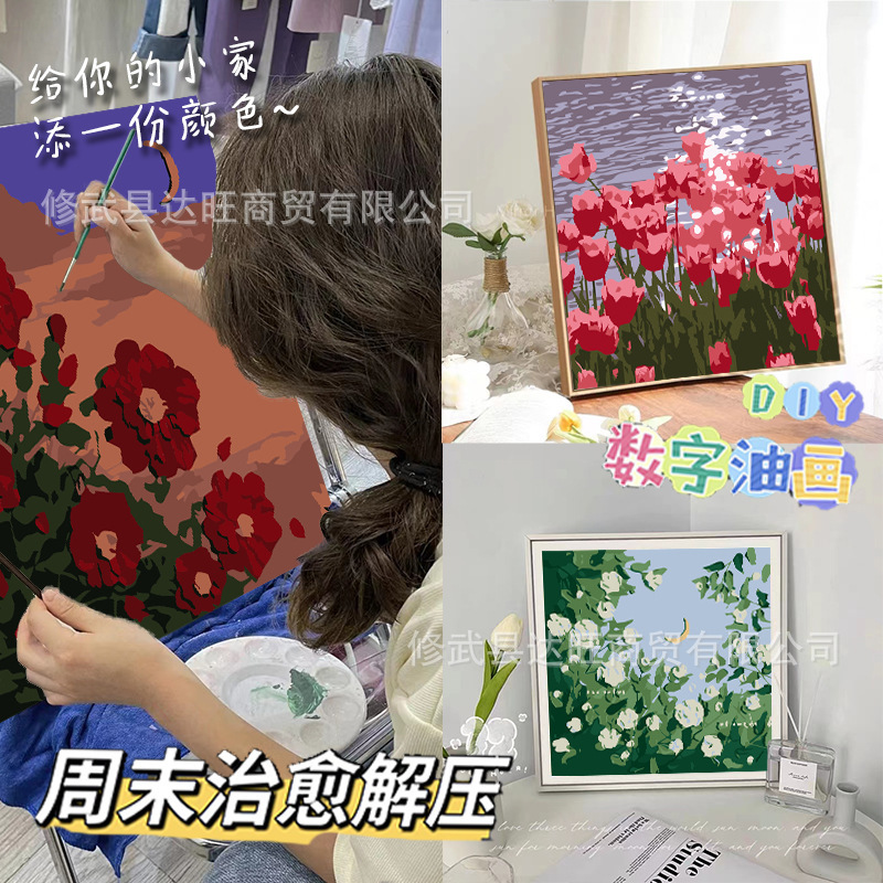 diy数字油画花卉风景装饰画卡通儿童手工成人填色涂鸦减压玩具