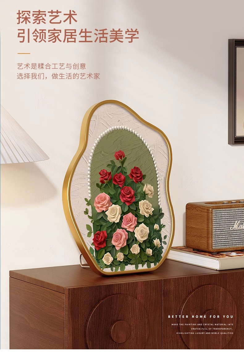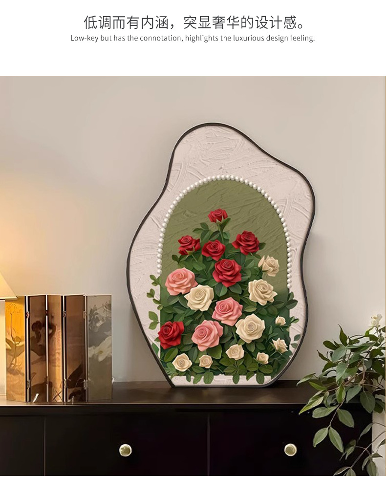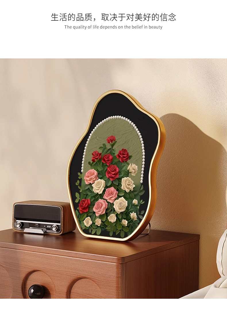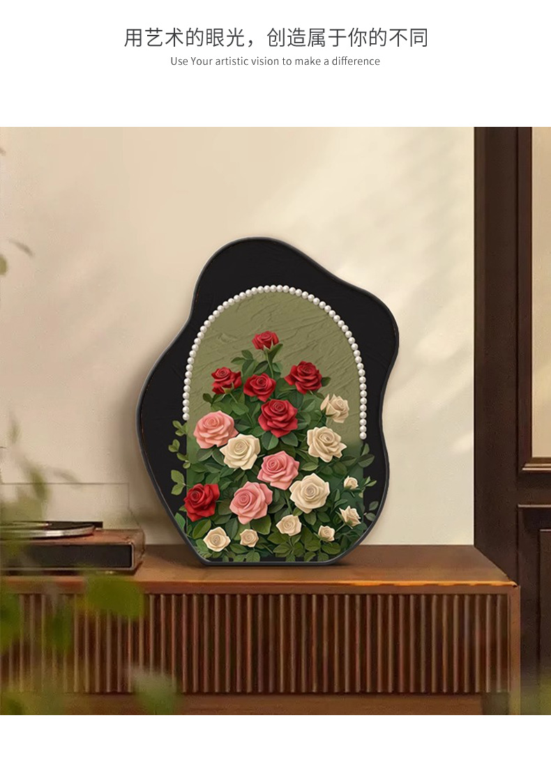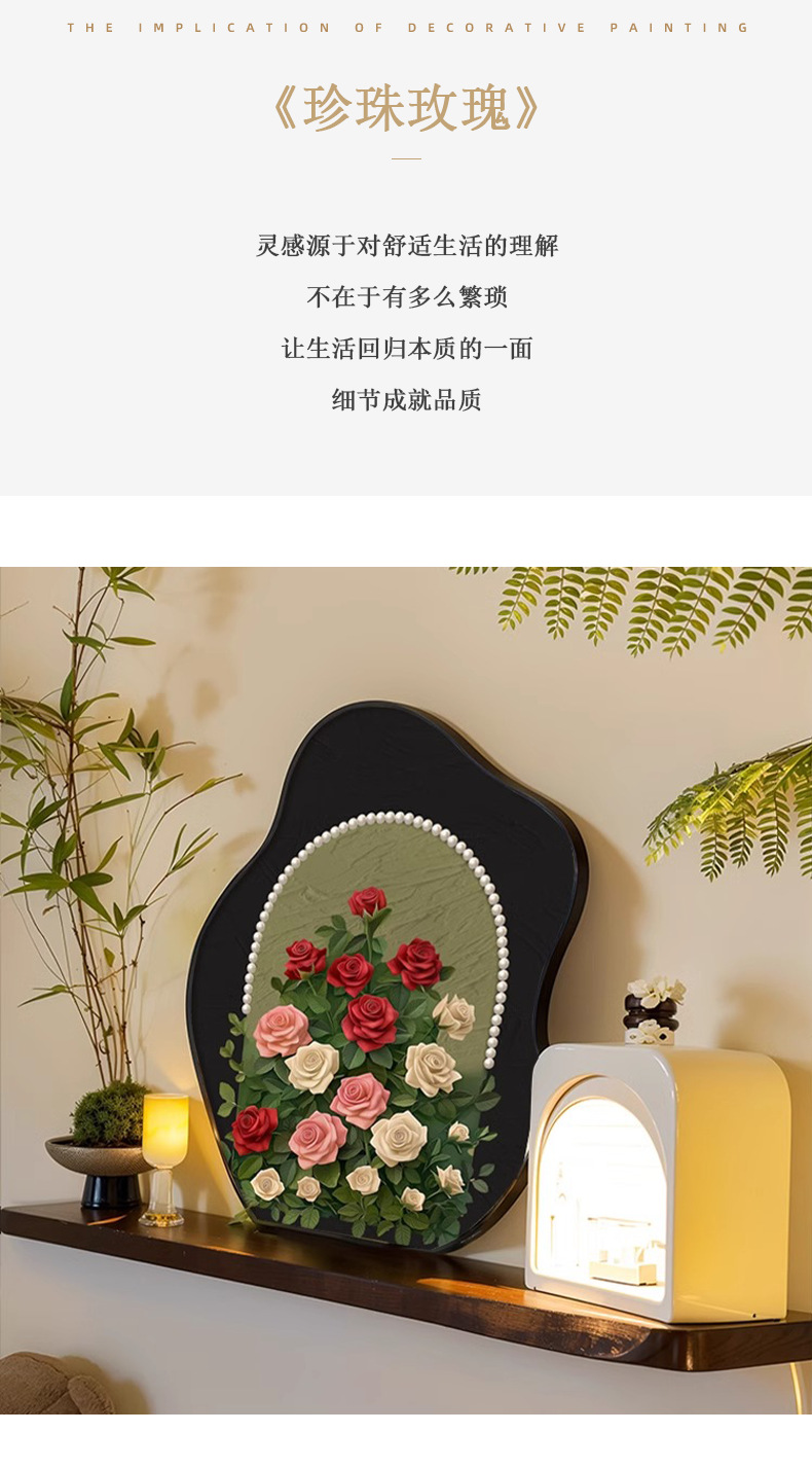 珍珠玫瑰中古风桌面斗柜小摆台装饰画复古艺术摆件高级感小众摆画