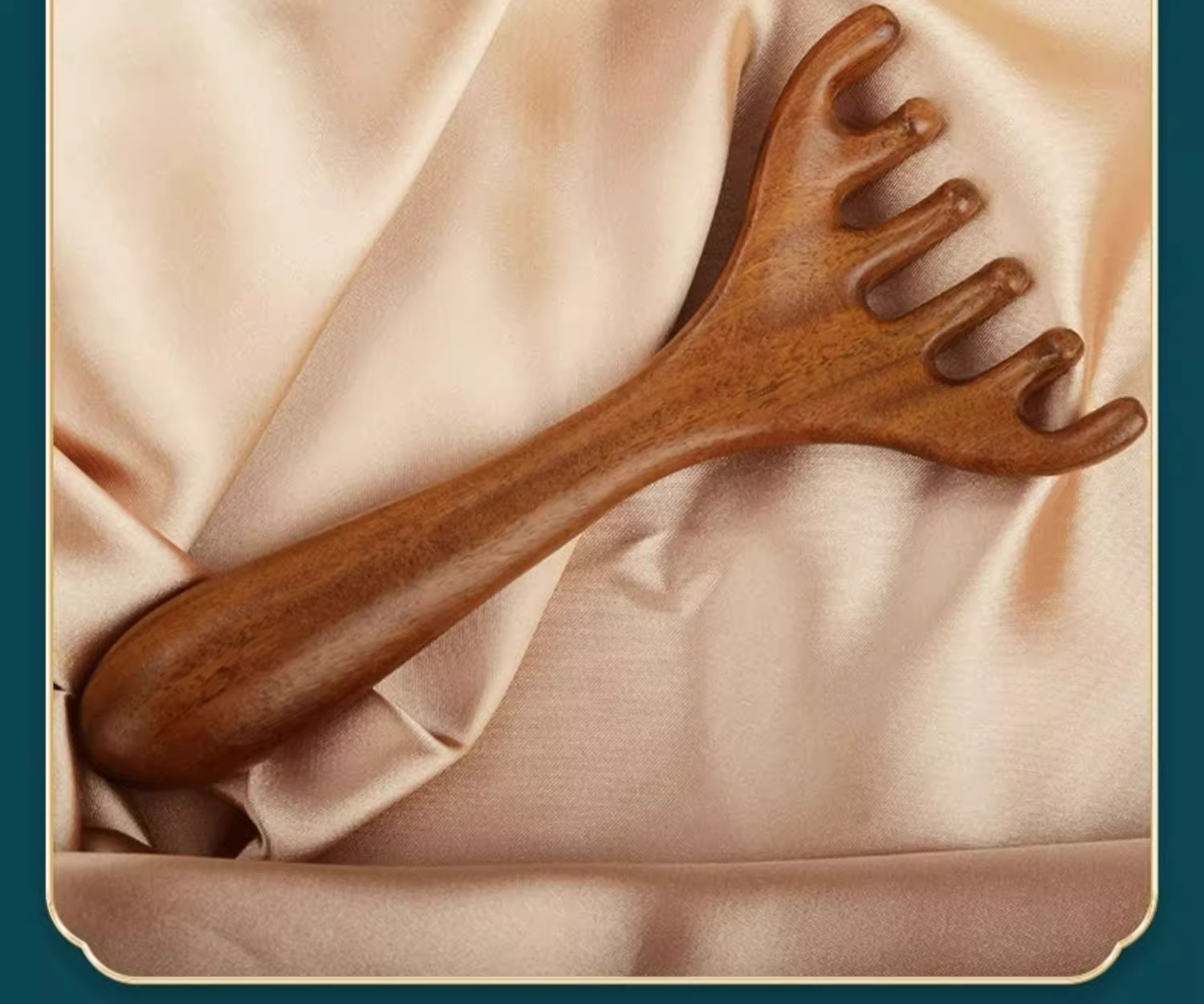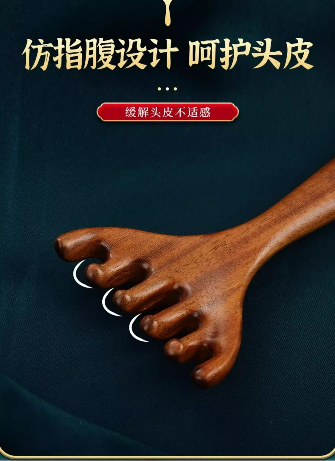 五爪头部按摩经络梳子养生头疗工具天然檀木头皮鹿角刮痧疏通神器