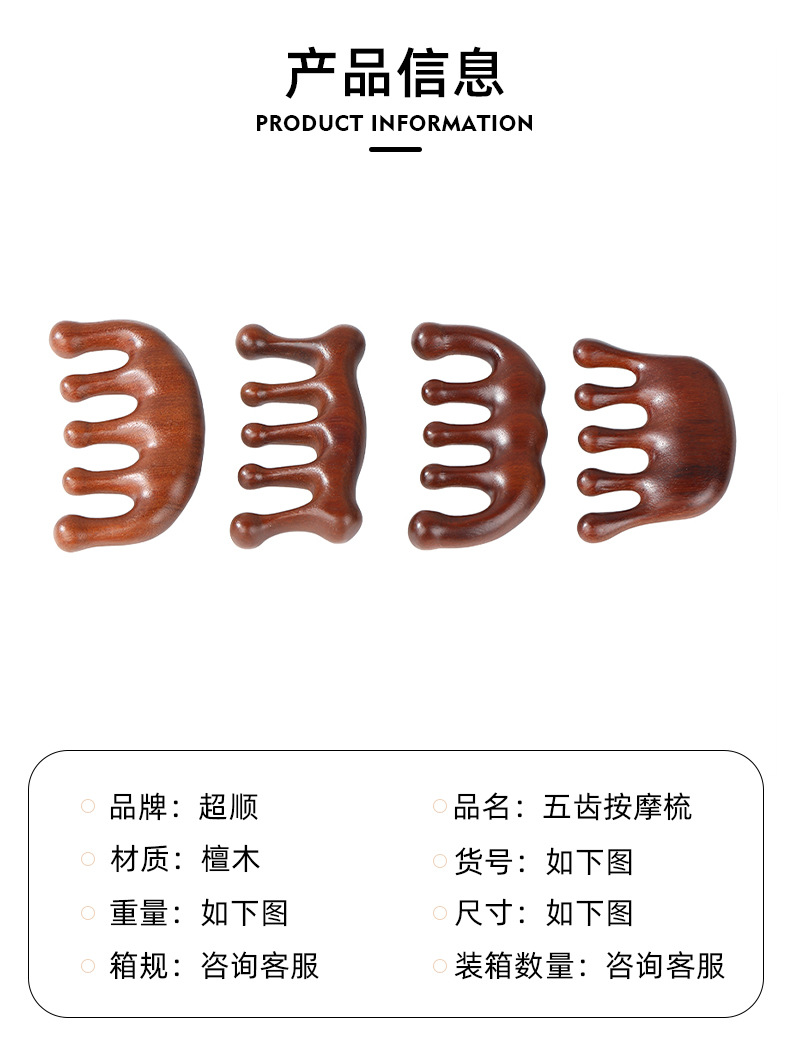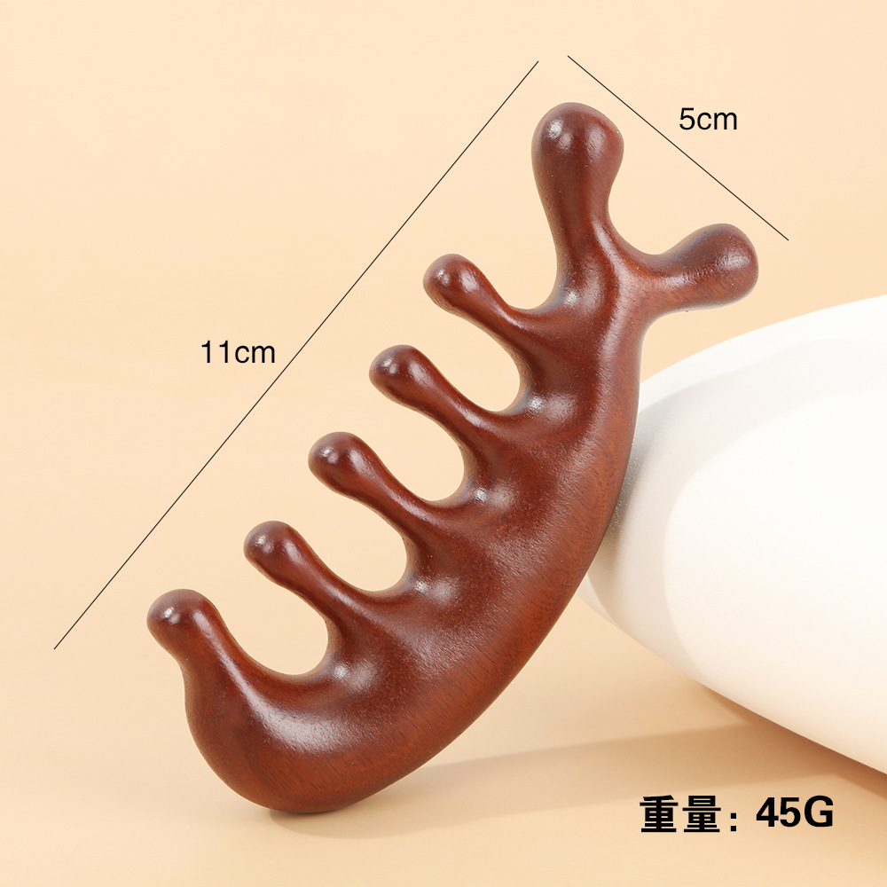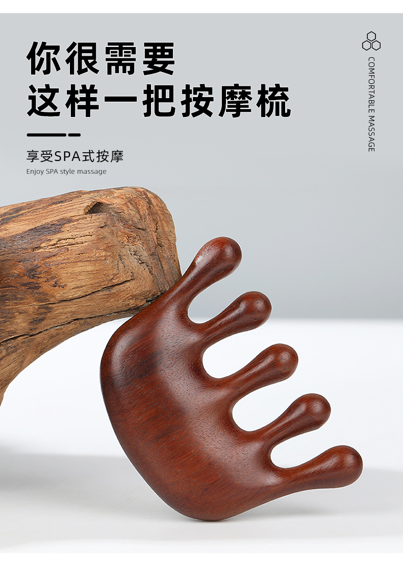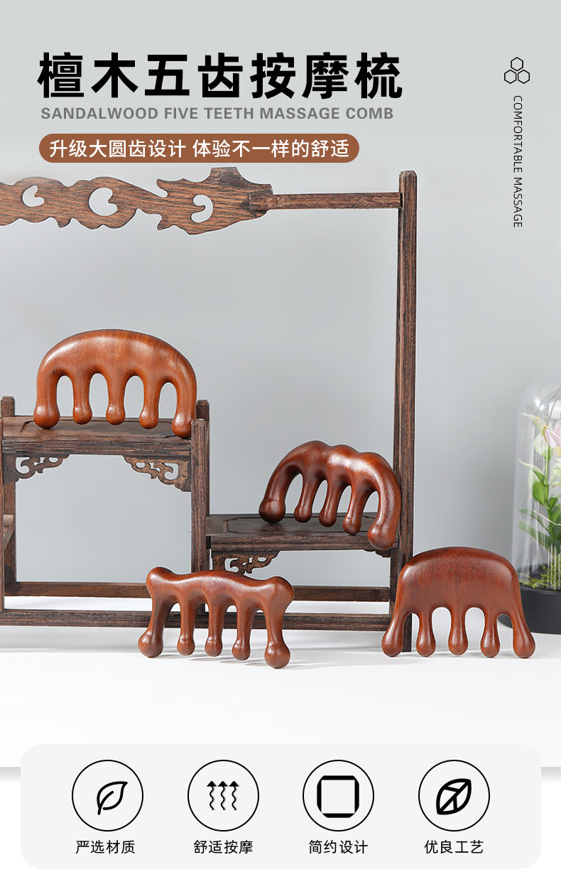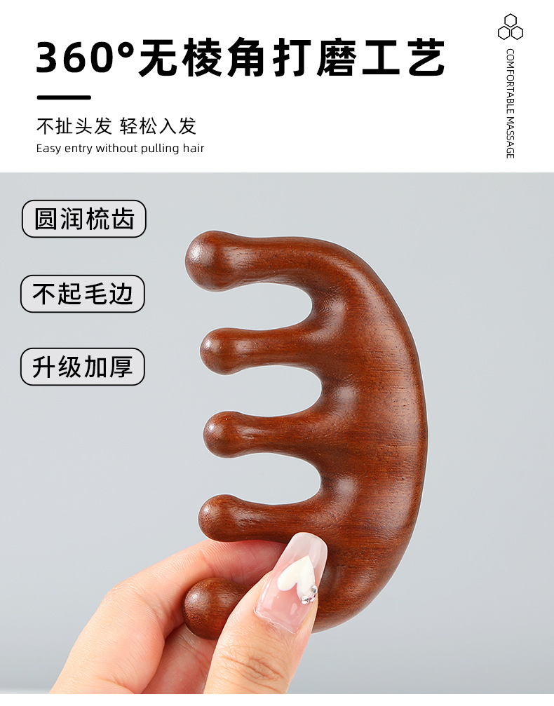 木梳家用伴手礼金丝檀金丝檀木五齿经络穴位头部按摩刮痧头疗木梳