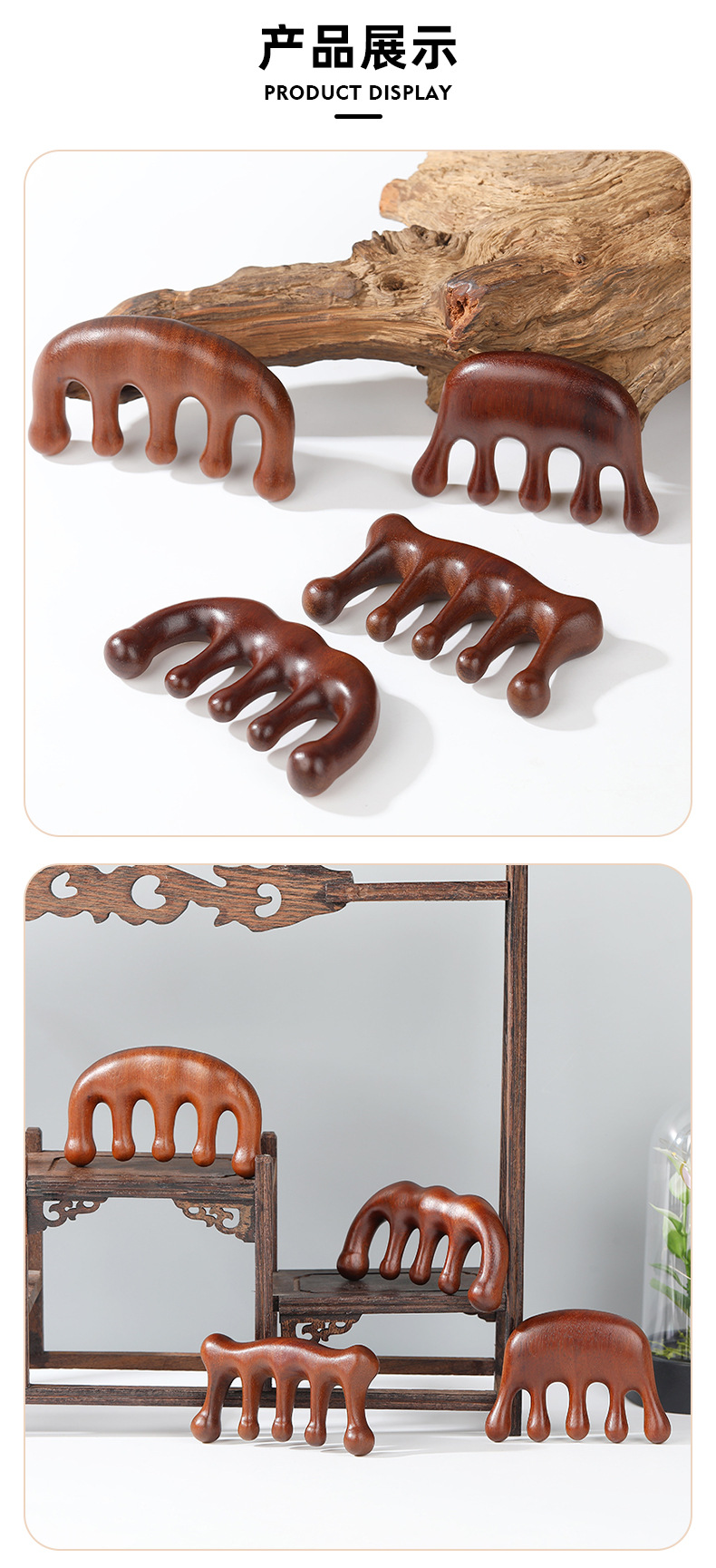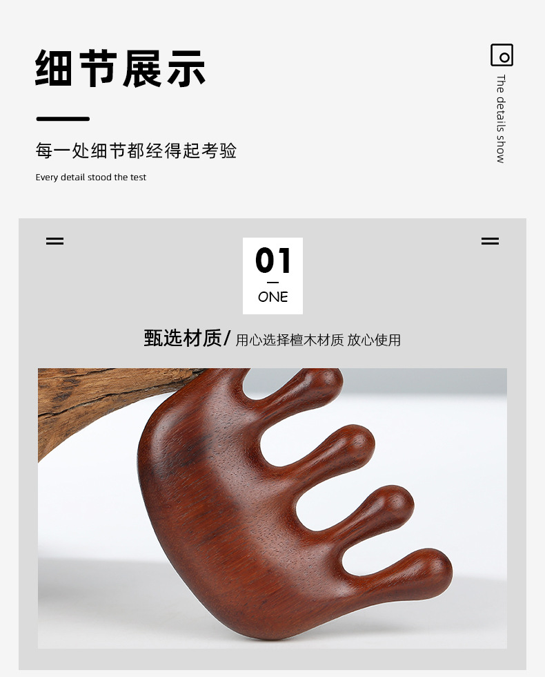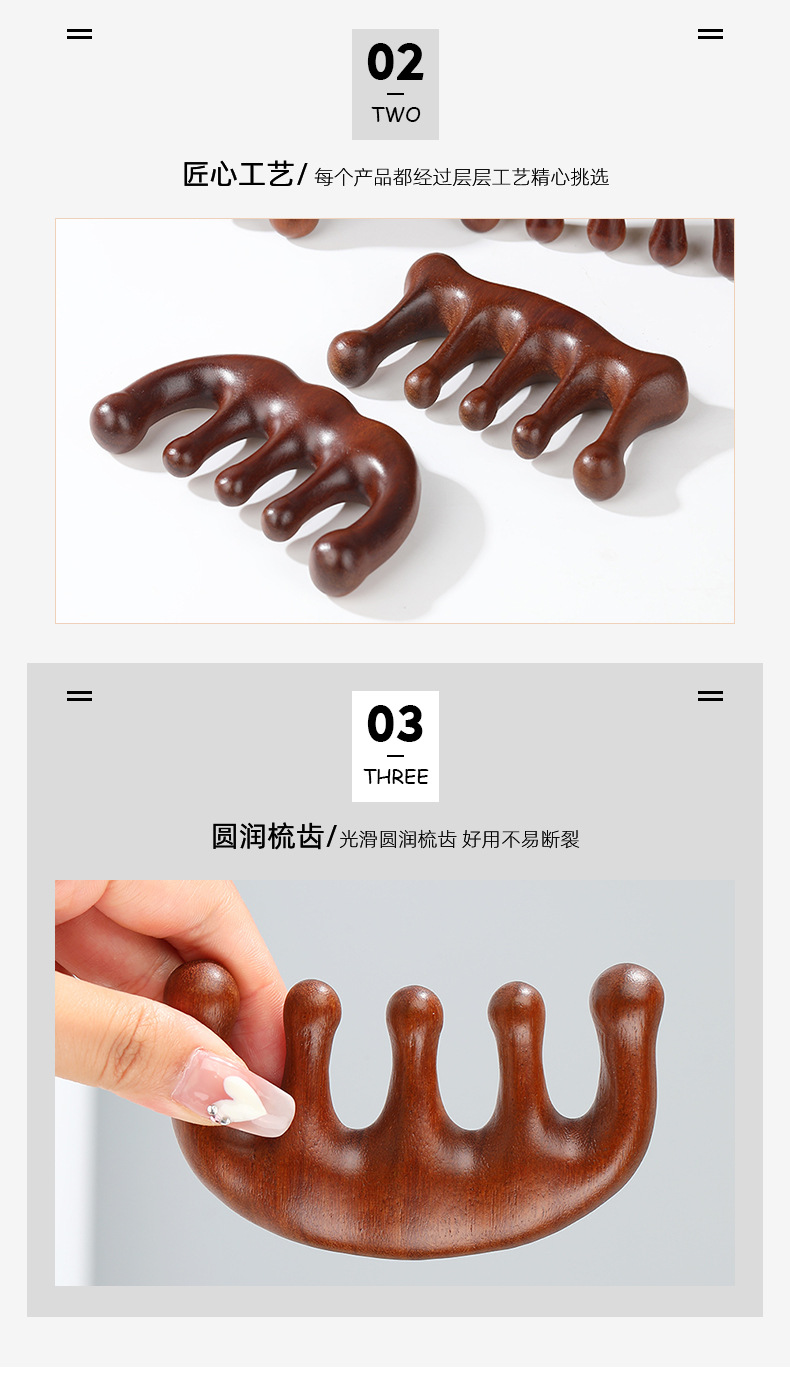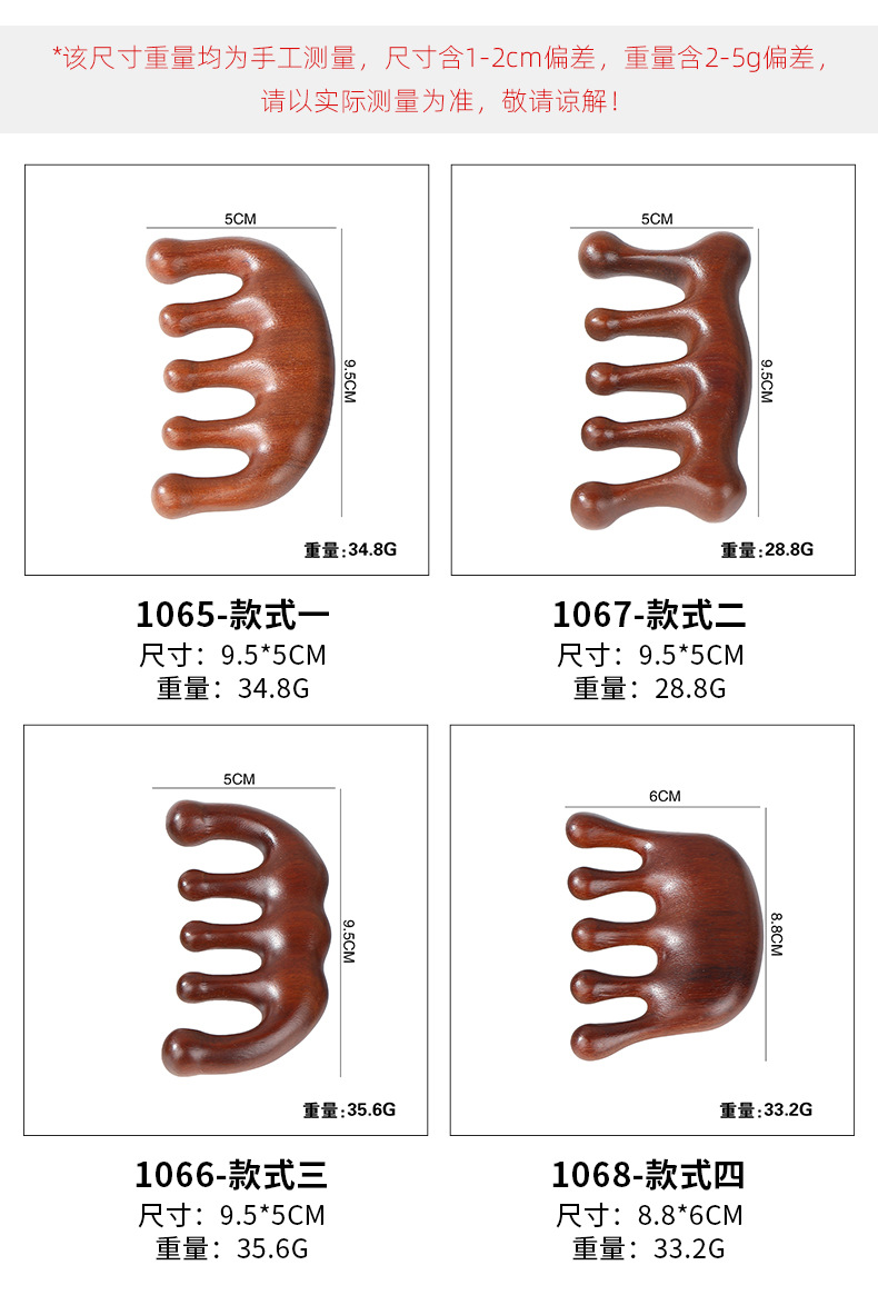木梳家用伴手礼金丝檀金丝檀木五齿经络穴位头部按摩刮痧头疗木梳