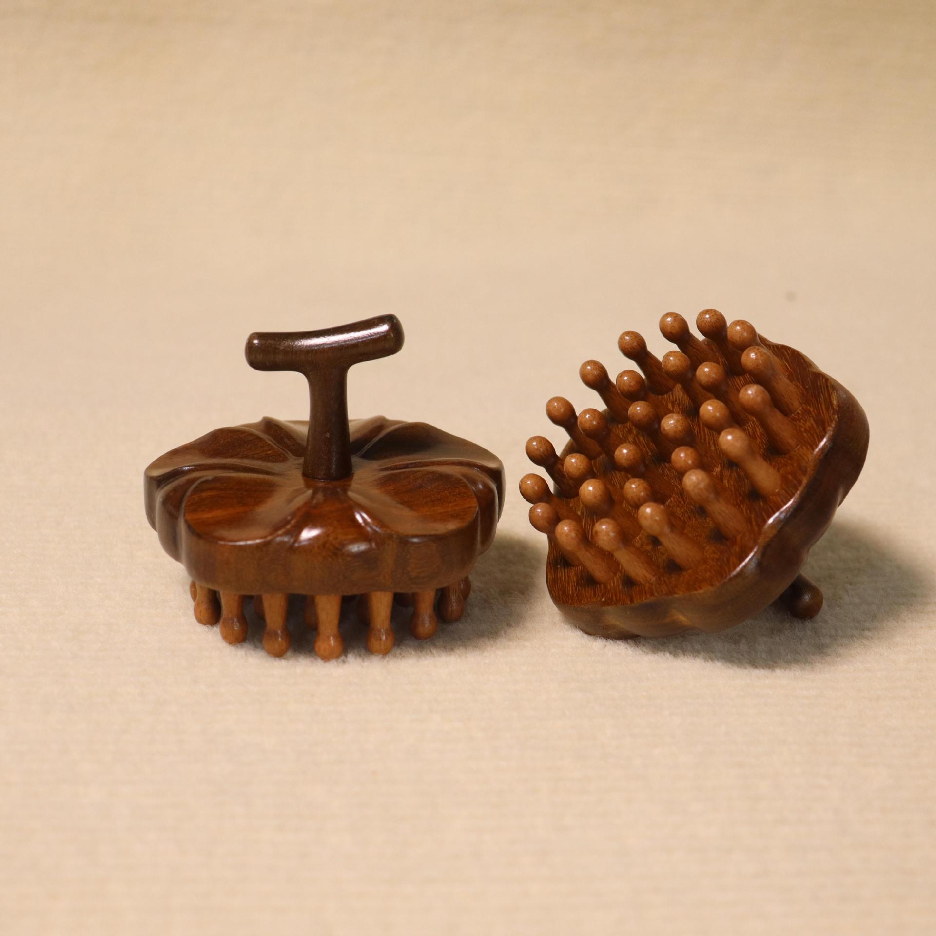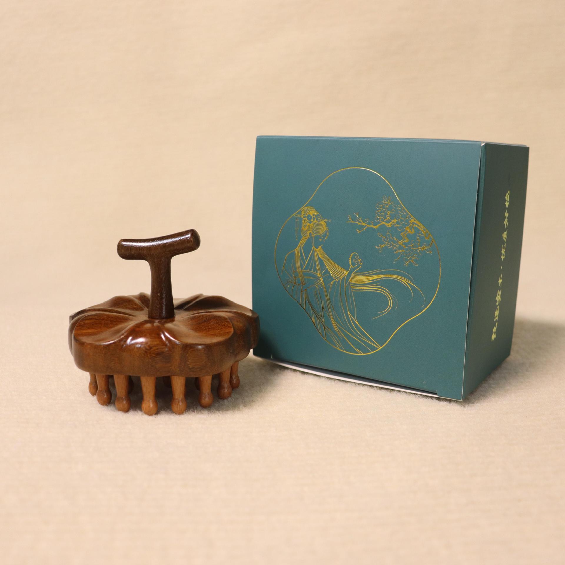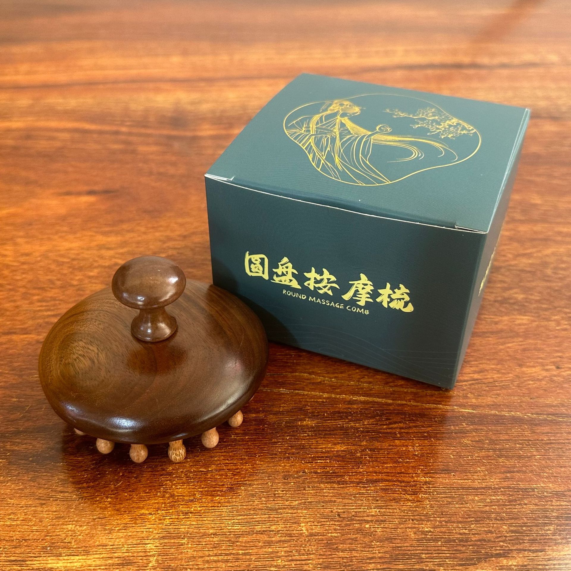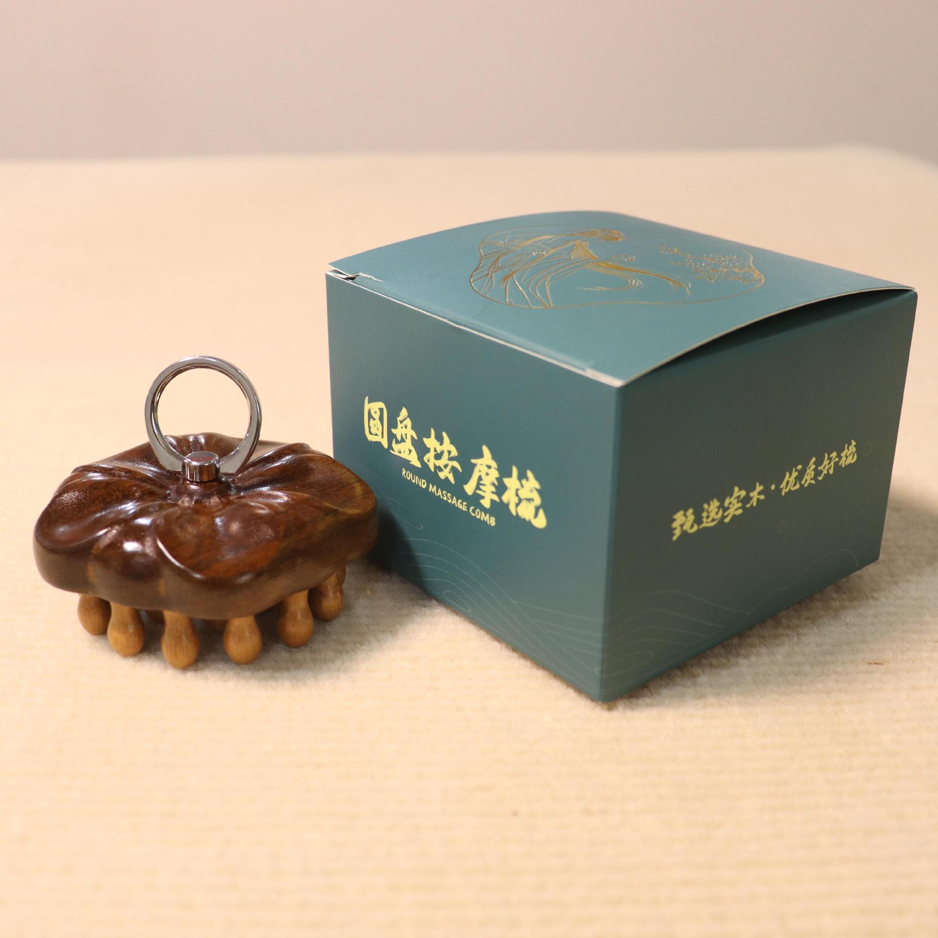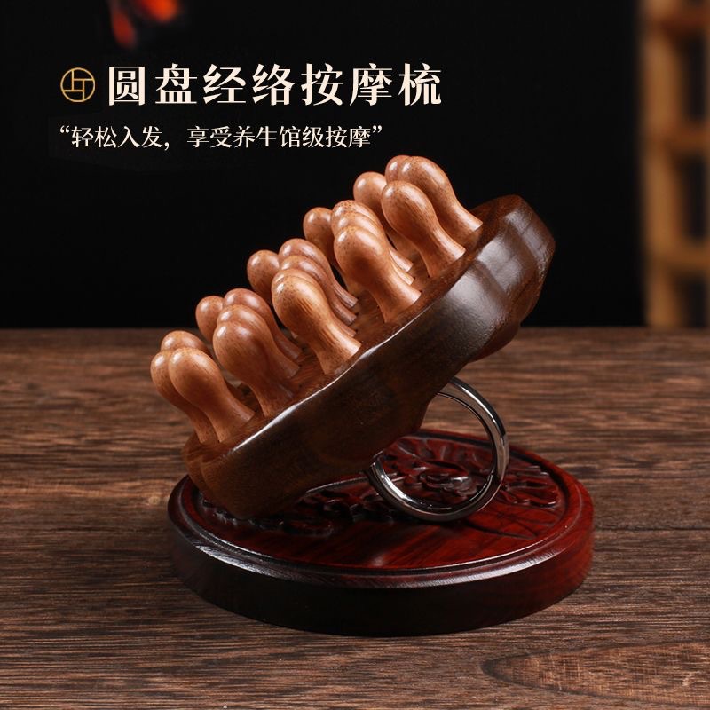 金丝檀木圆盘28钉按摩梳头部头皮全身经络梳毛囊疏通保健檀木梳子