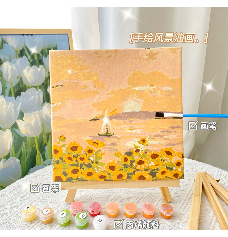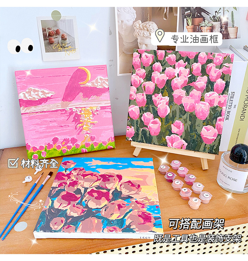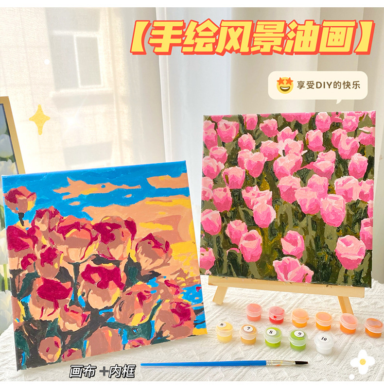 鲜花DIY数字油画玫瑰郁金香diy填色丙烯画手工油彩画填充油彩画