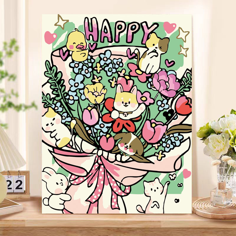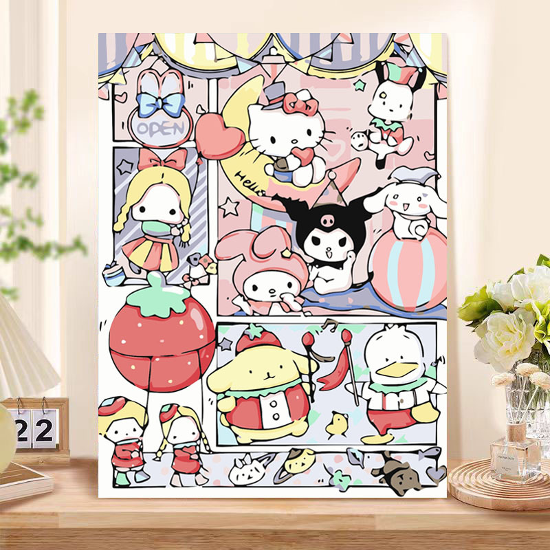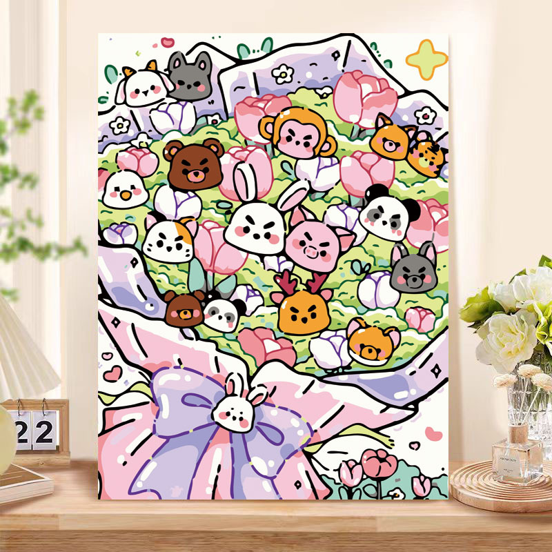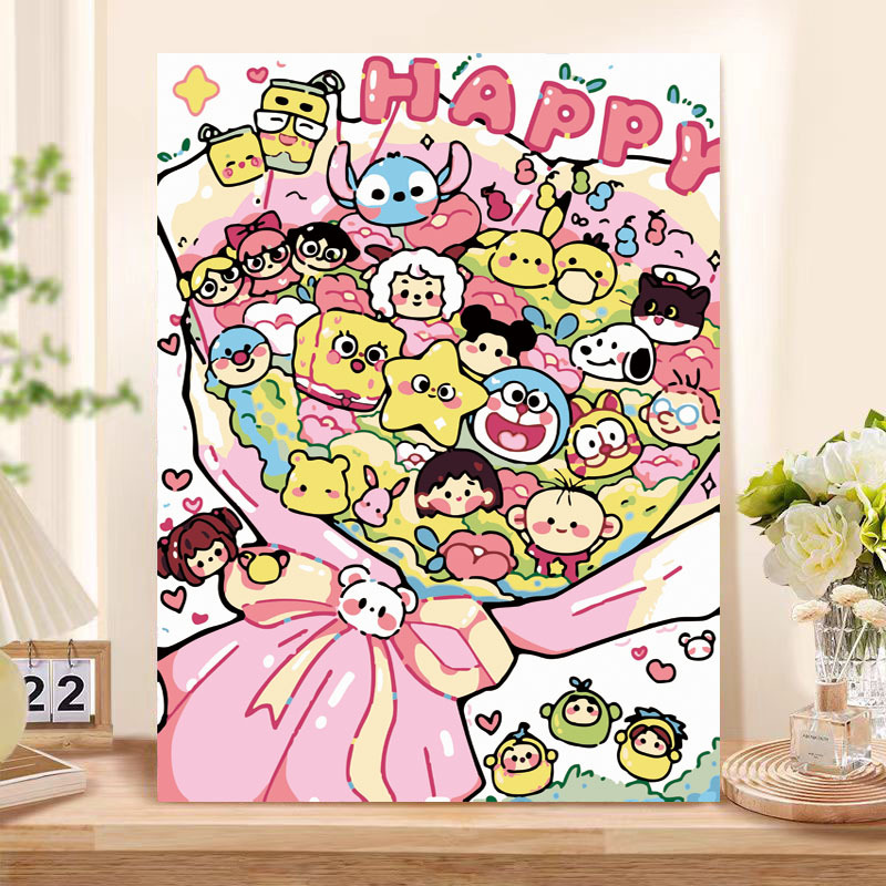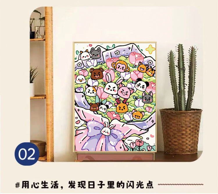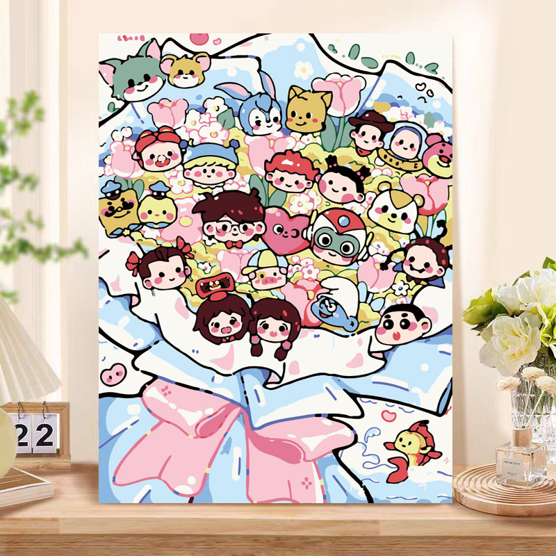 新款数字油画大尺寸diy手工填色涂鸦画卡通儿童装饰手绘厂家批发