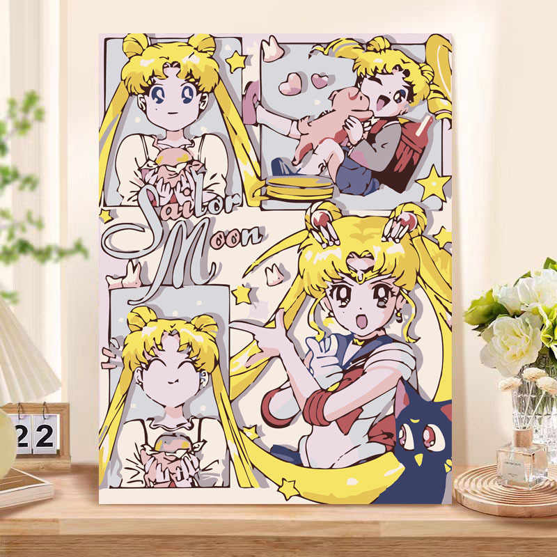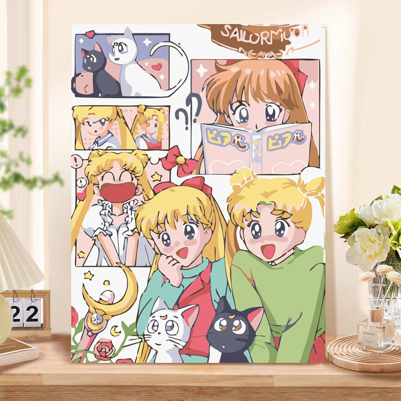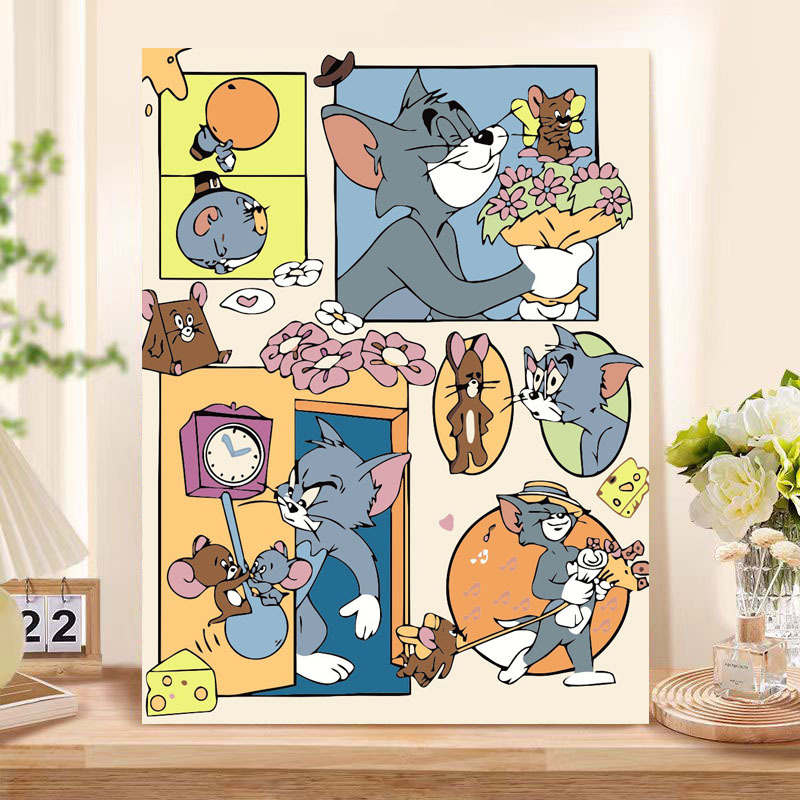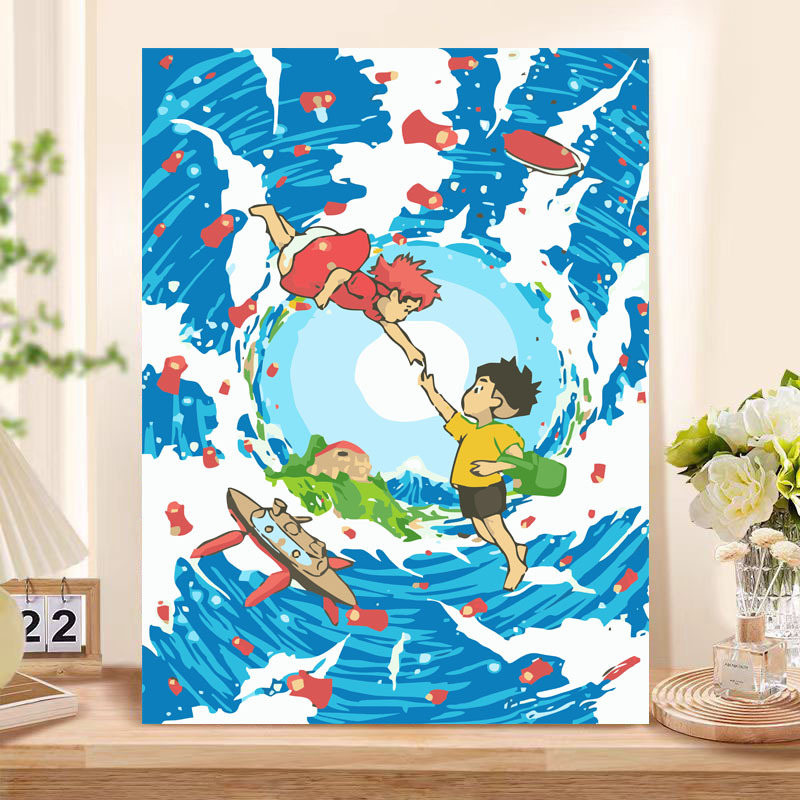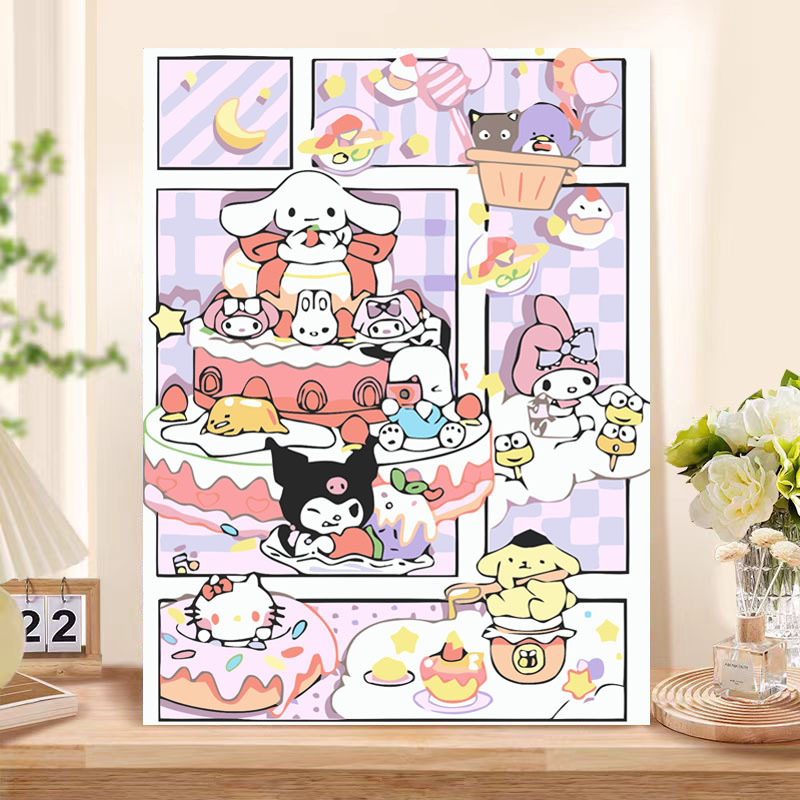 新款数字油画大尺寸diy手工填色涂鸦画卡通儿童装饰手绘厂家批发