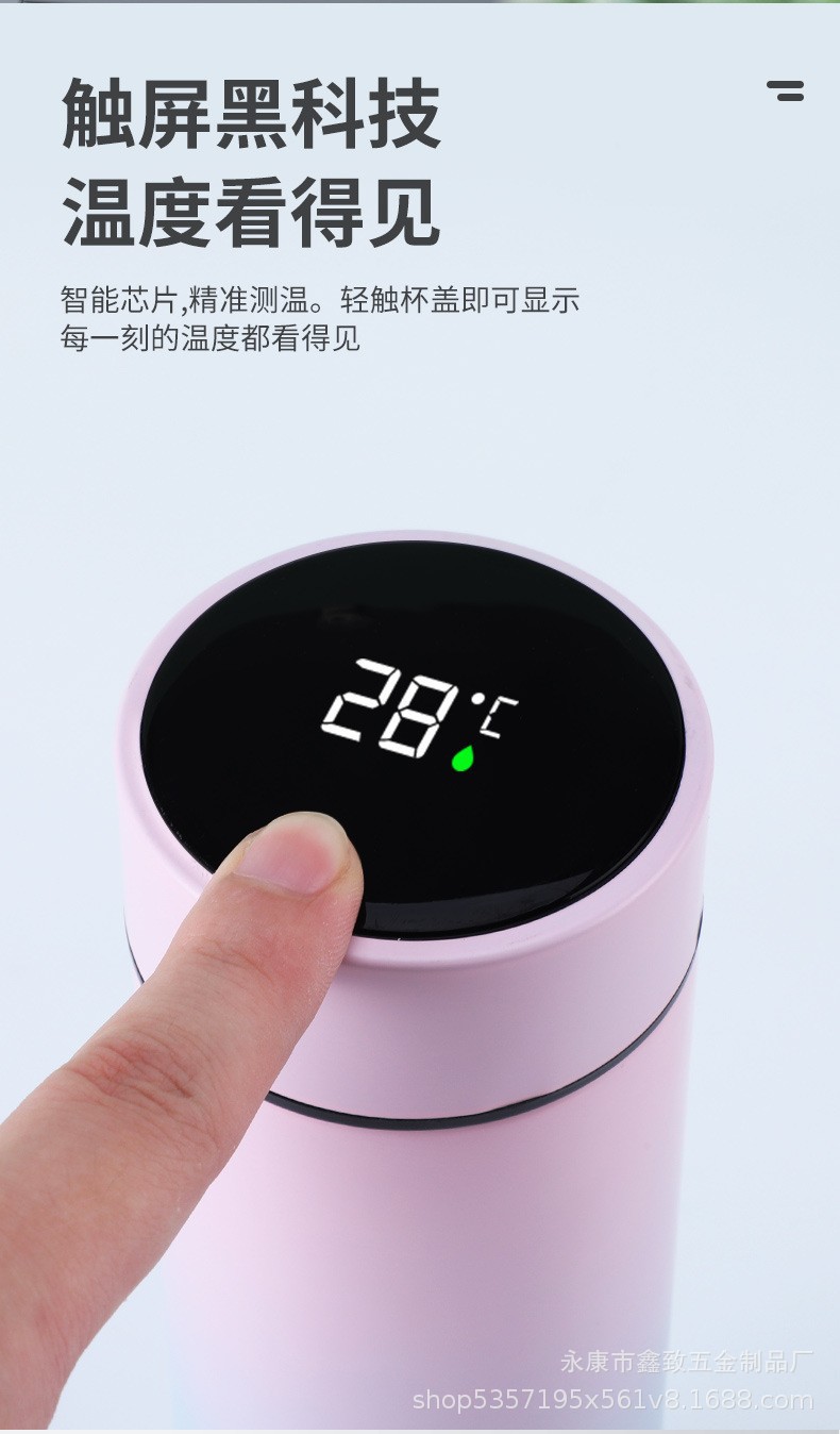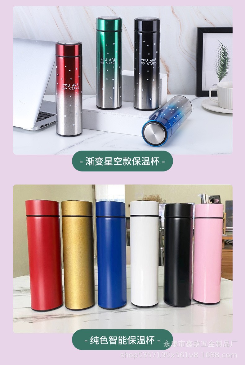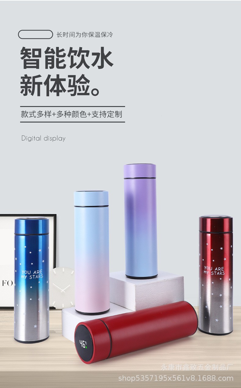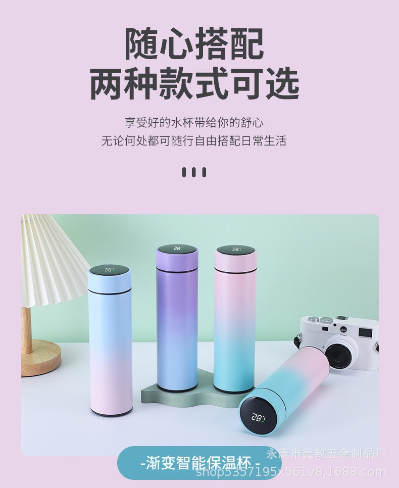 304不锈钢保温瓶渐变色智能测温保温杯高颜值便携直身杯礼品水杯