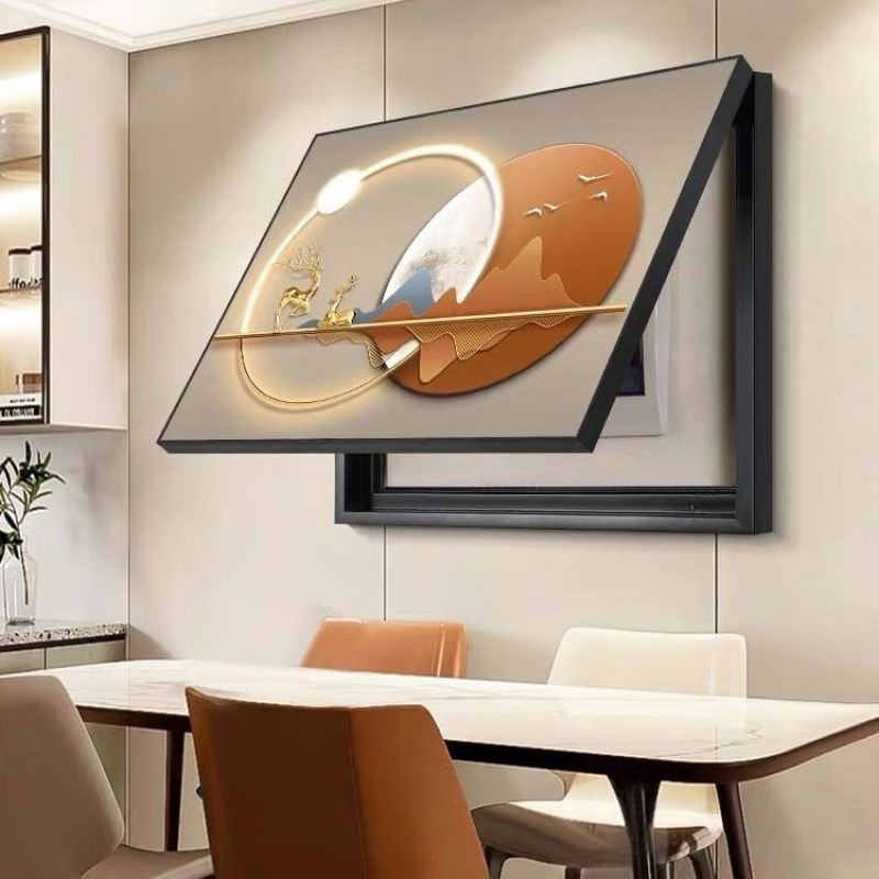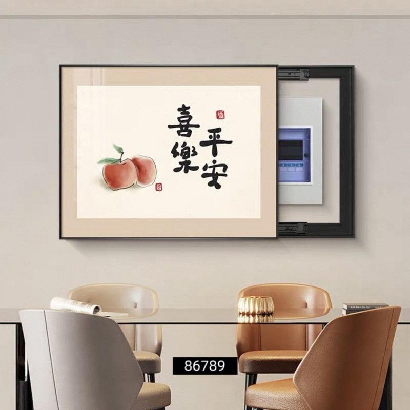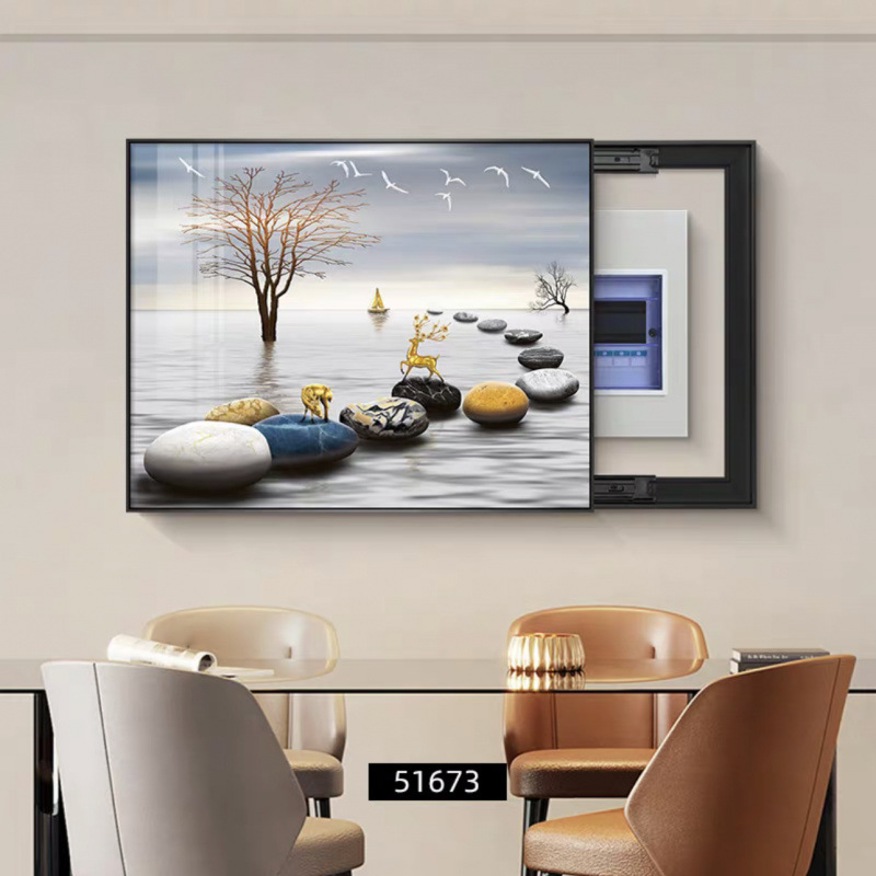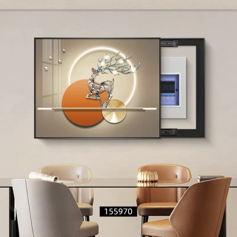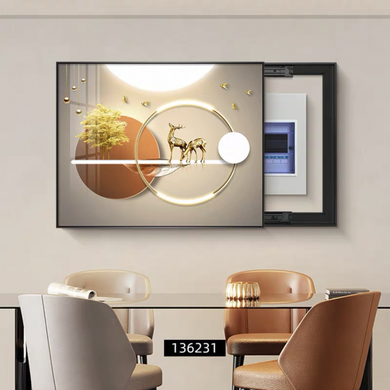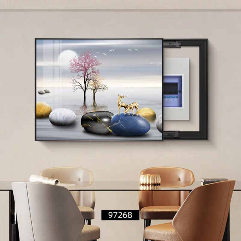 轻奢装饰画现代简约配电箱餐厅打孔电闸推拉挂画开关电表箱遮挡厂