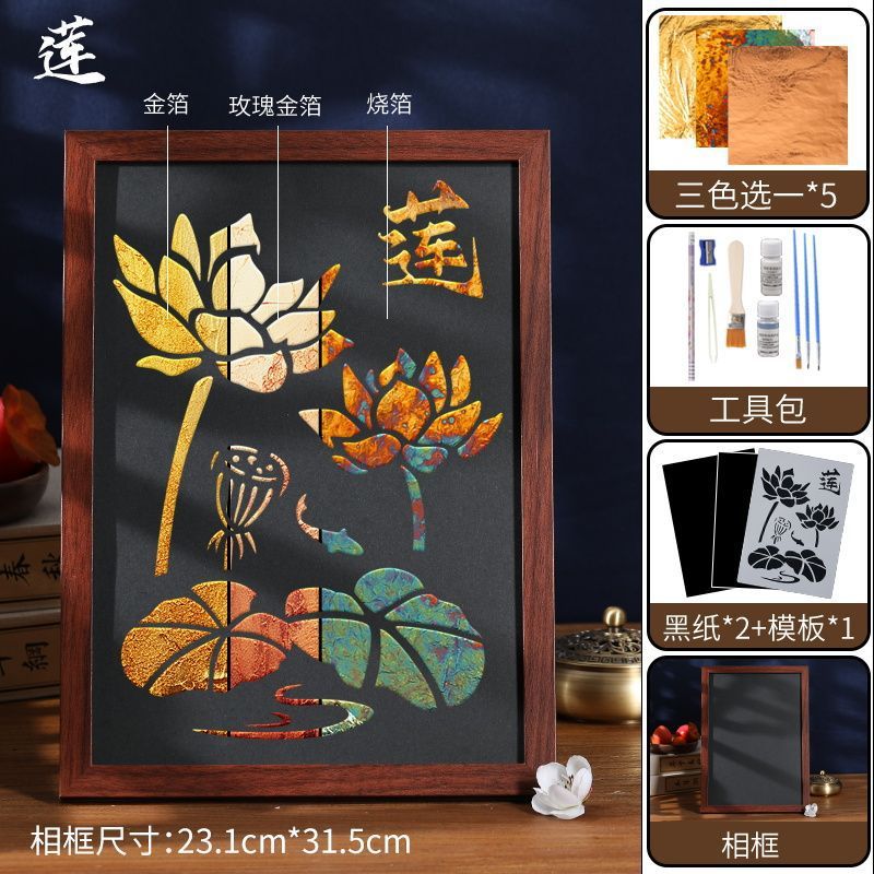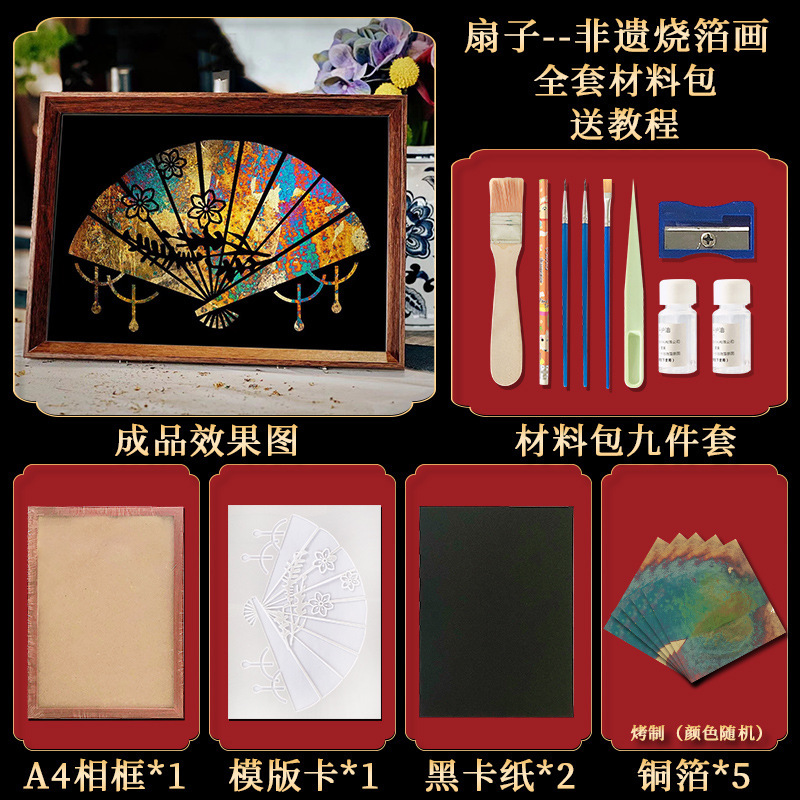 非遗烧箔画diy材料包金箔画全套装饰画非遗活动暖场文创手工绘画