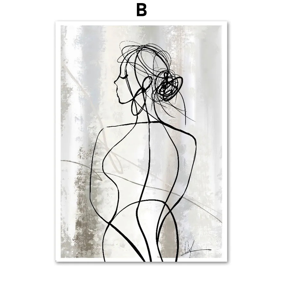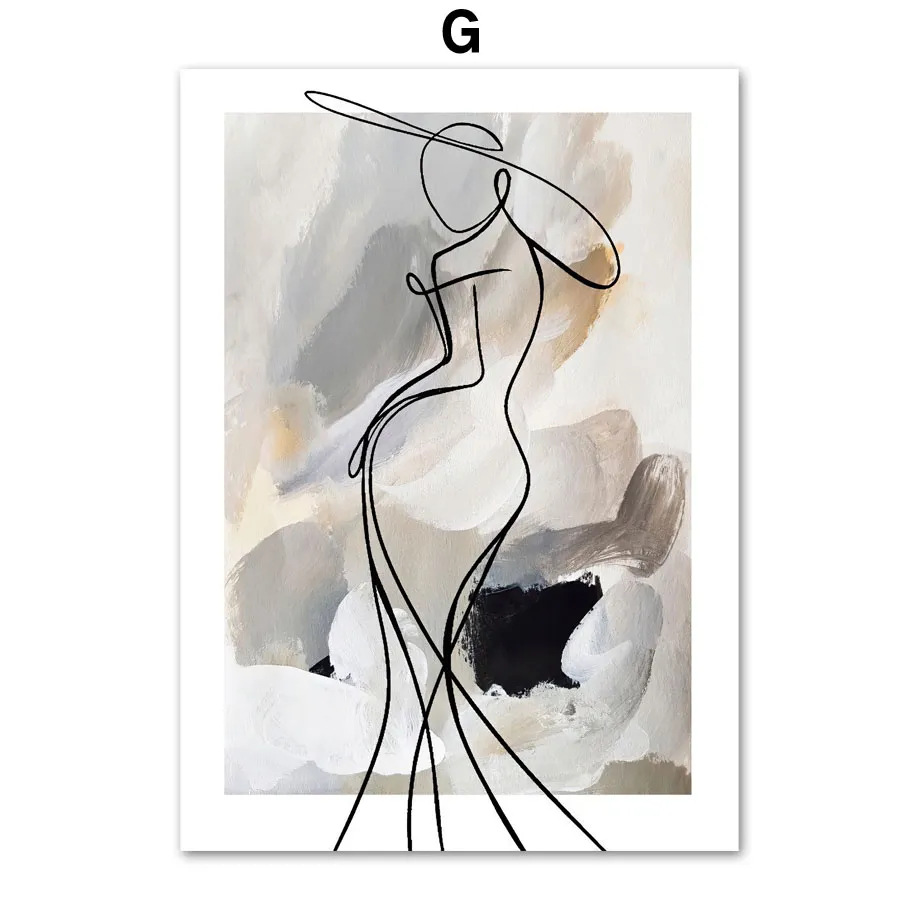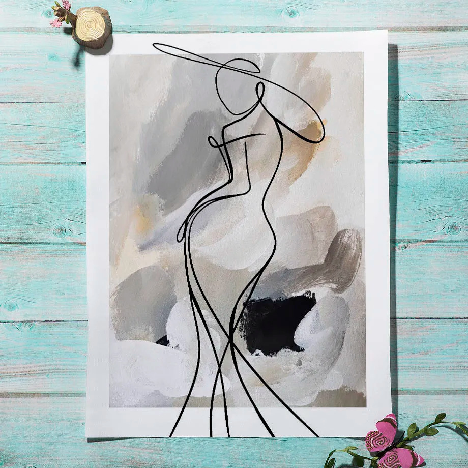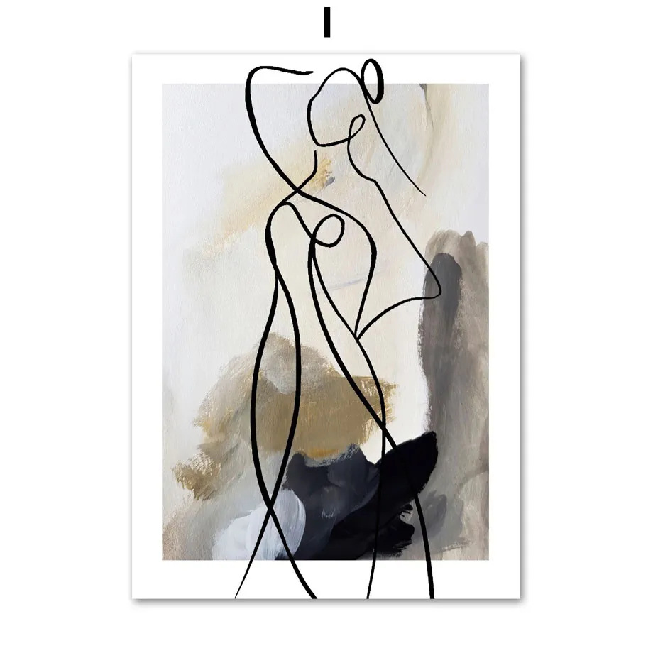 北欧风抽象艺术客厅装饰画几何线条人物挂画简约海报现代沙发