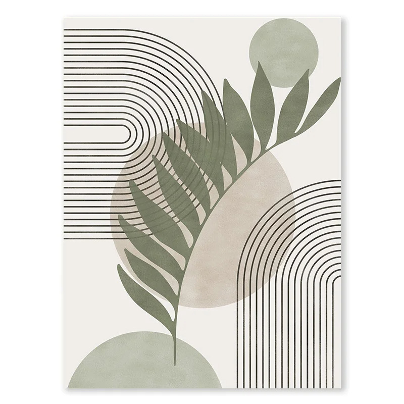 现代简约客厅装饰画北欧绿色植物抽象几何莫兰迪海报酒店公寓挂画