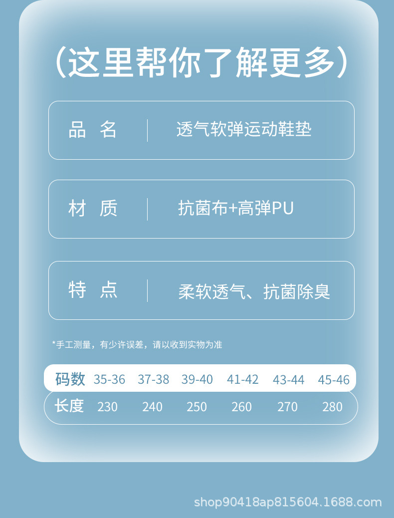 步云鞋垫男吸汗防臭透气除臭防滑按摩软底舒适夏天光脚可穿女运动