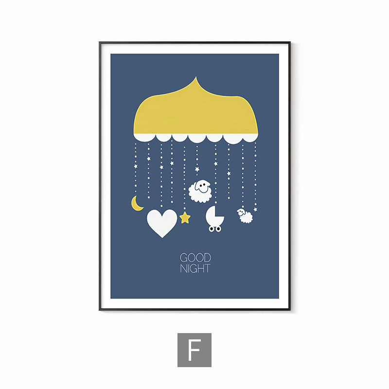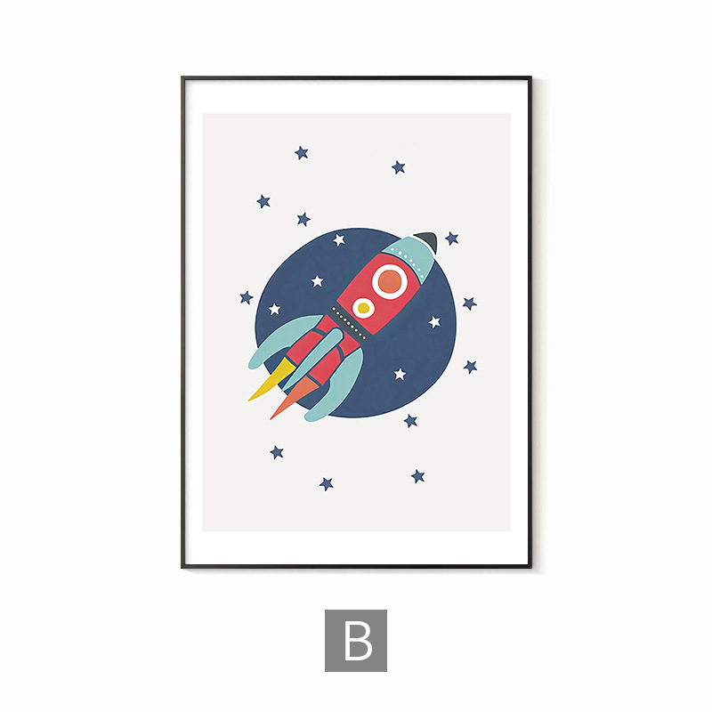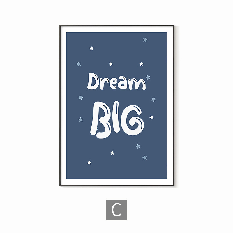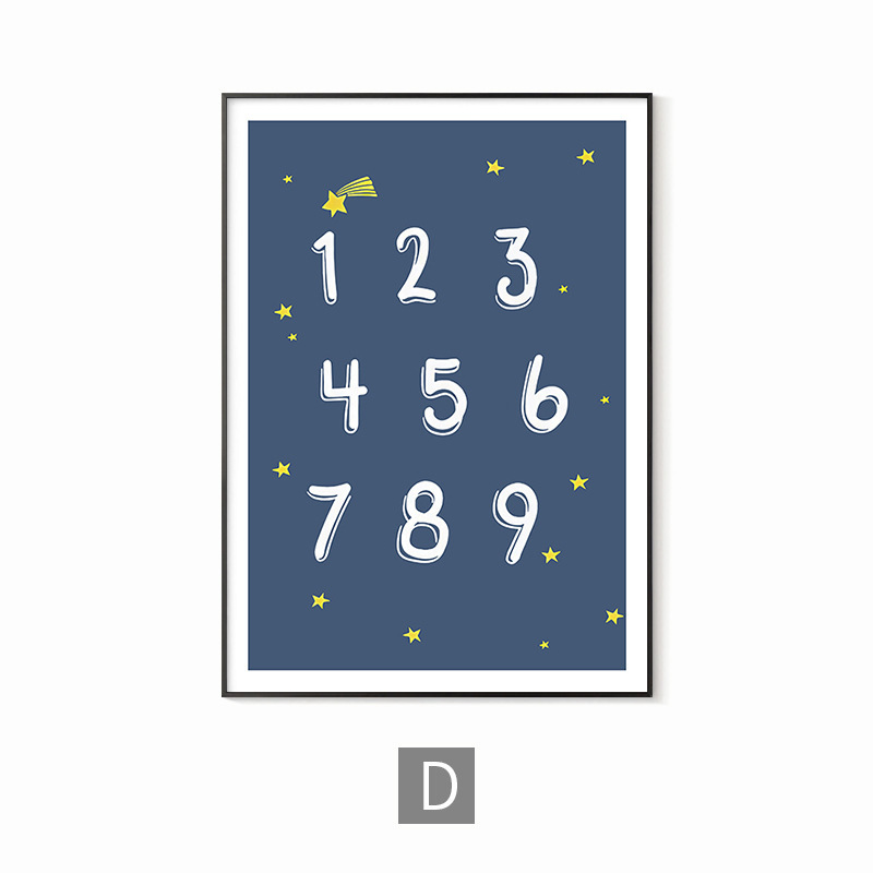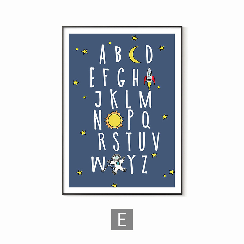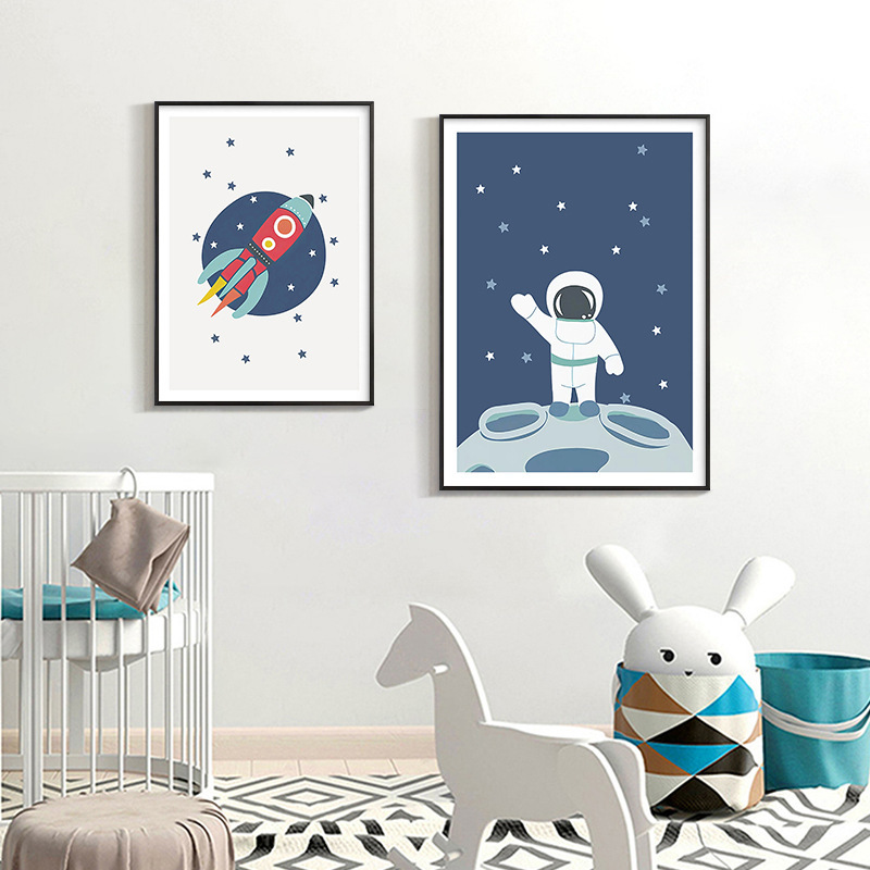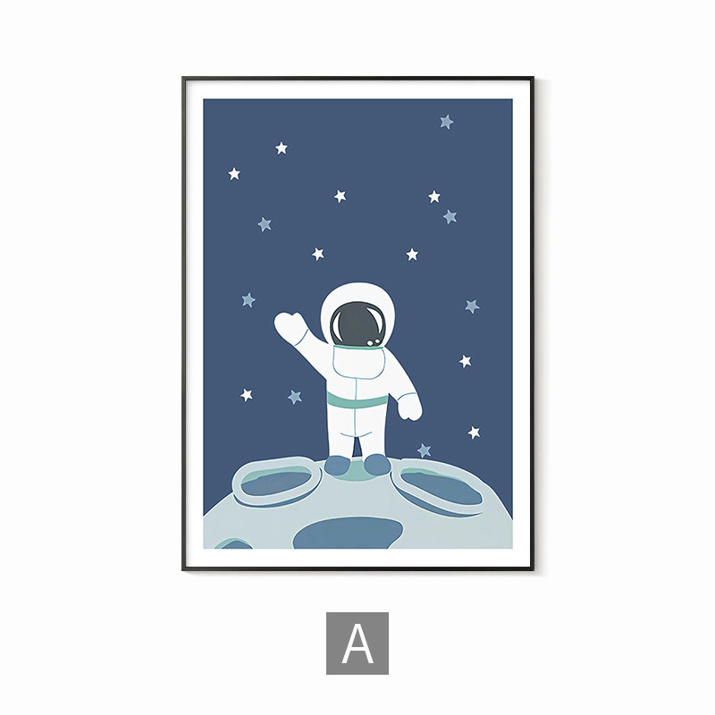 简约男孩房间儿童房卧室装饰画蓝色太空人宇航员宇宙字母数字学习