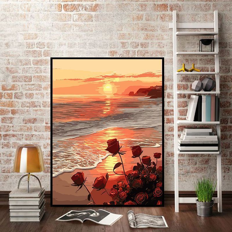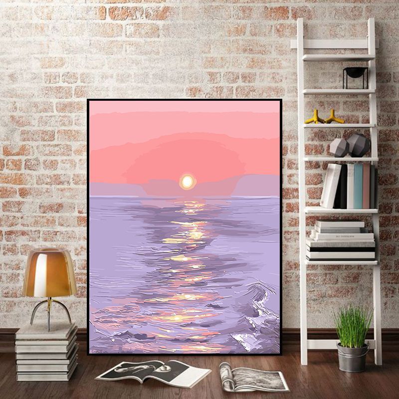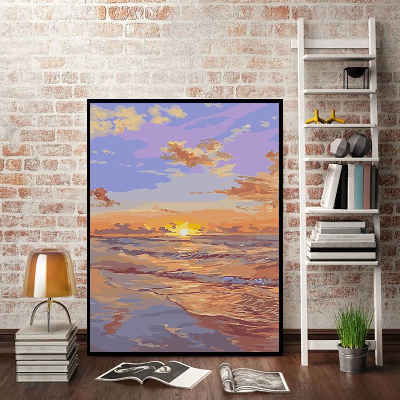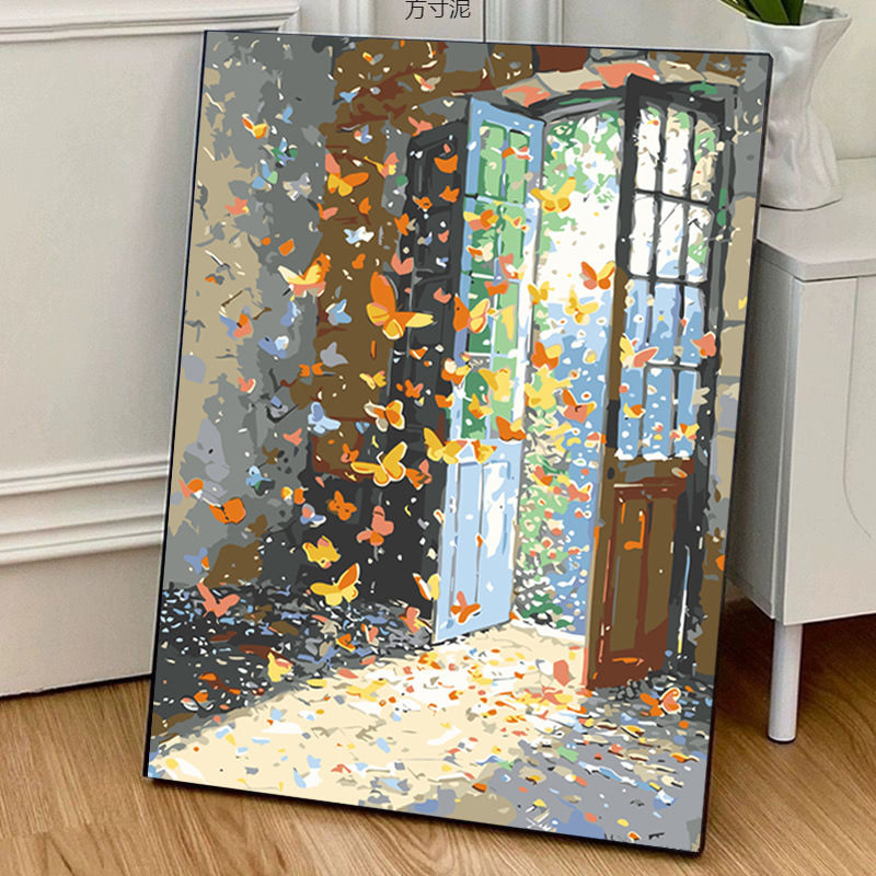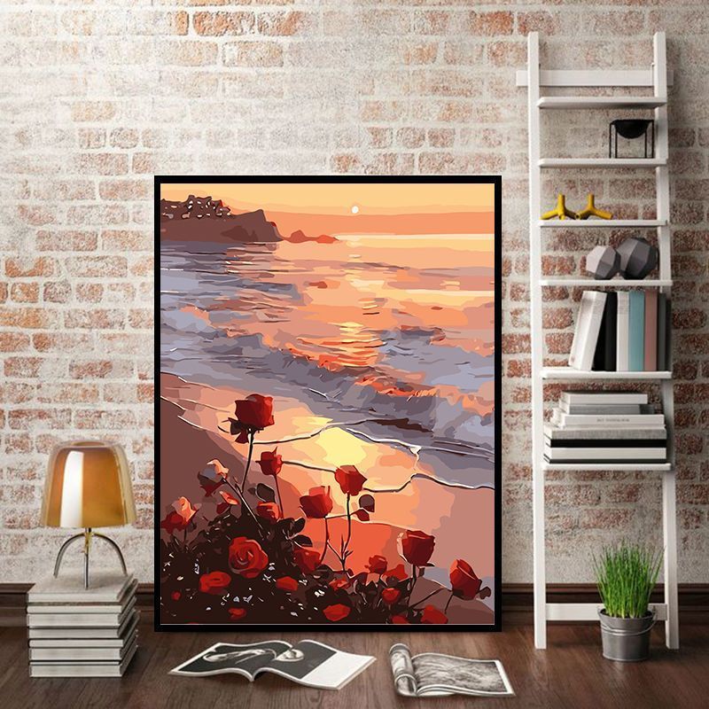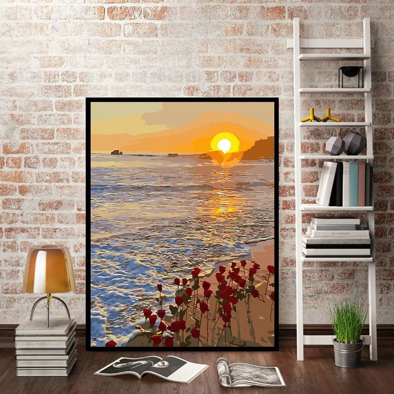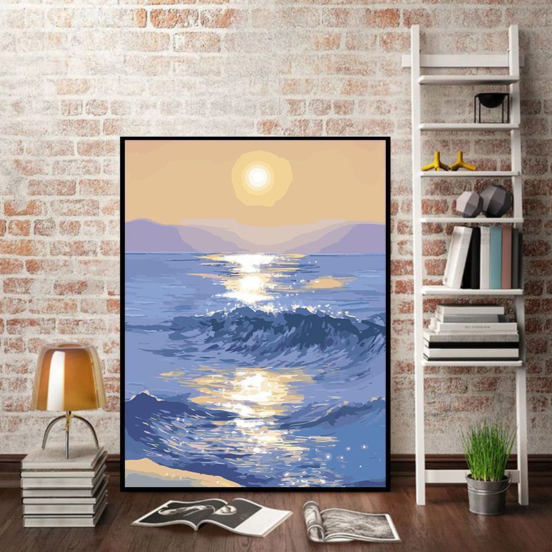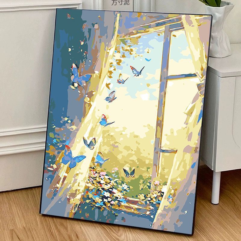 日照金山diy数字油画花卉风景解压手工手绘水彩填涂色挂画厂批发