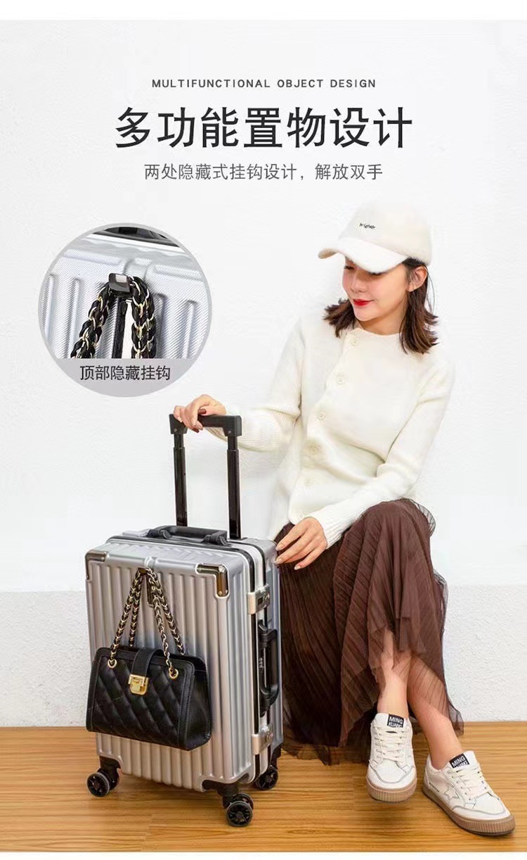 高颜值气质铝框款行李箱时尚商务20寸登机箱休闲蜜月旅行箱女批发