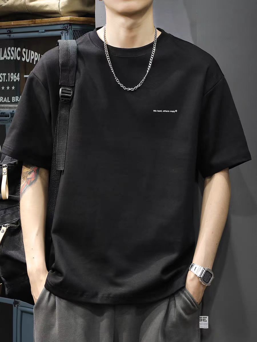 短袖男生纯棉重磅t恤打底衫潮牌潮流2025新款宽松美式上衣服夏季
