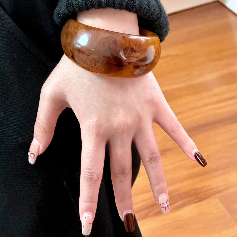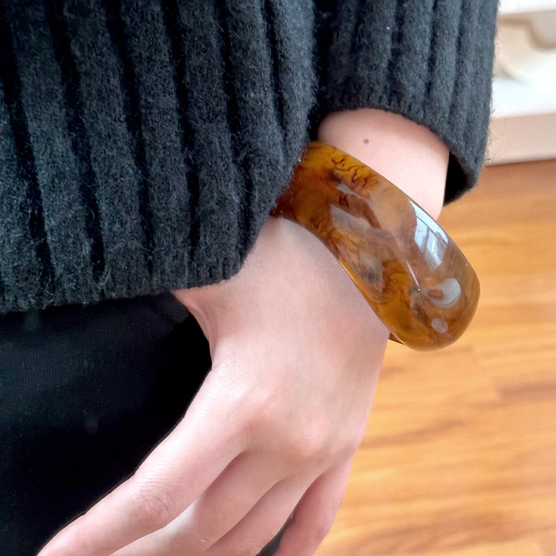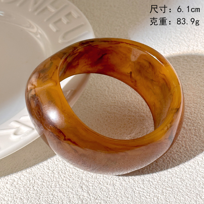 虞虞 欧美跨境饰品 复古不规则晕染手镯 圆形宽面弧形手环女