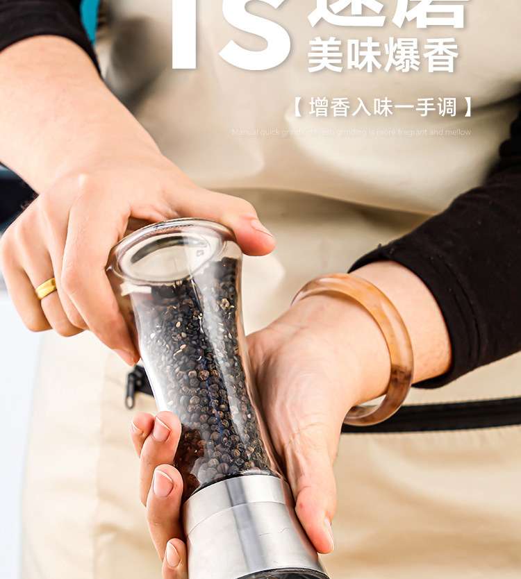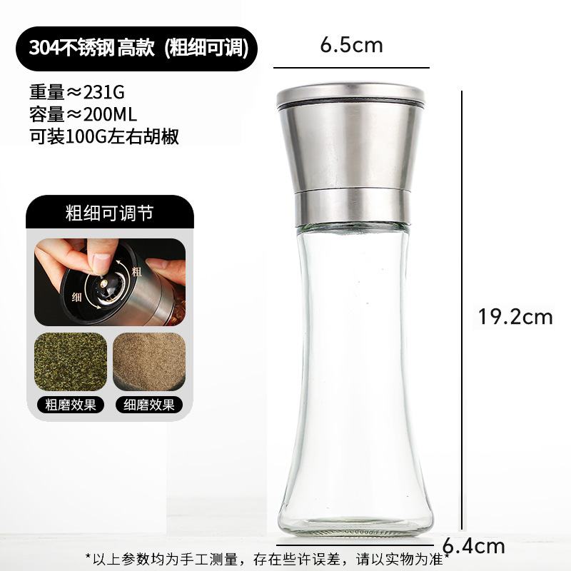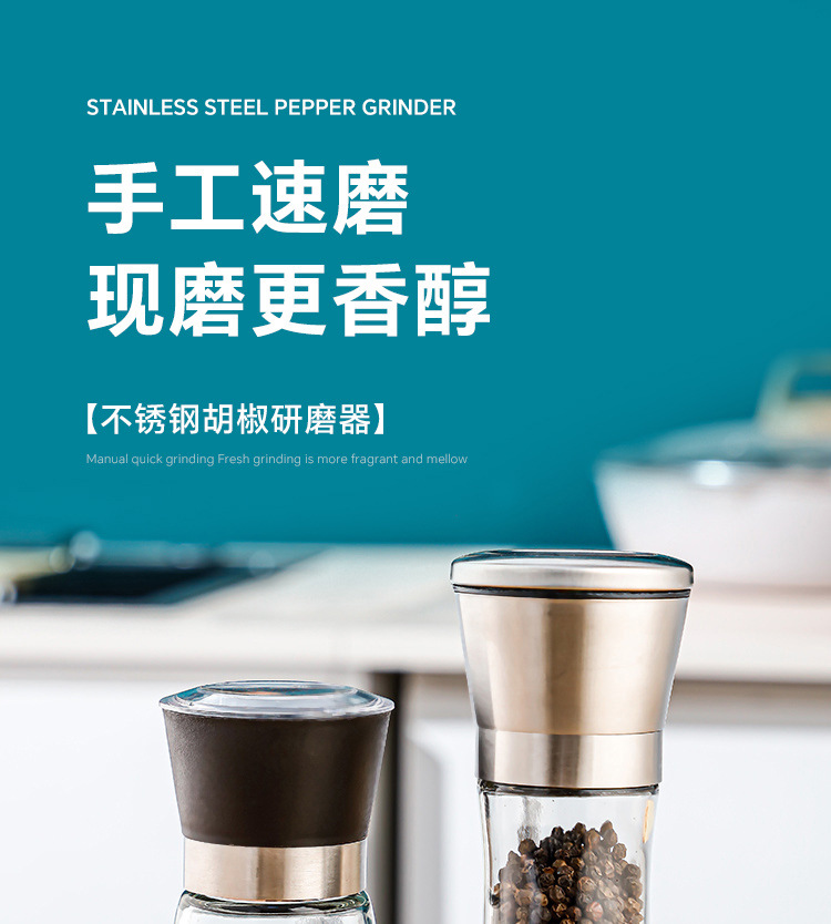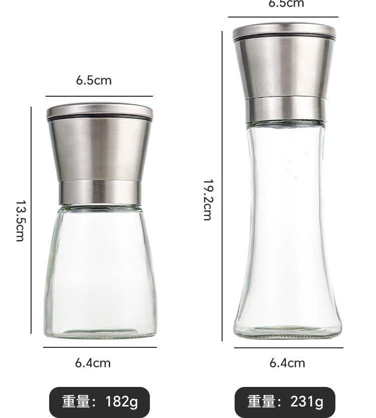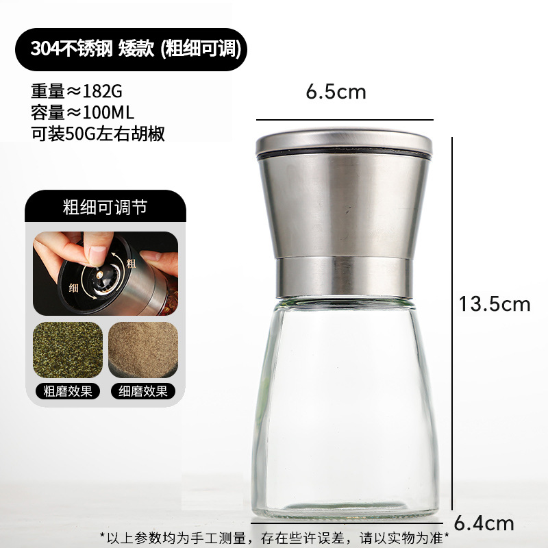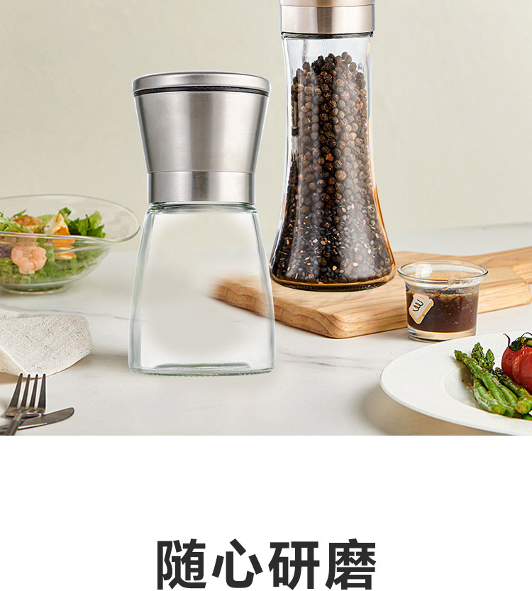 研磨器不锈钢手动研磨瓶家用玻璃调料瓶胡椒磨粉器厨房用品调味瓶