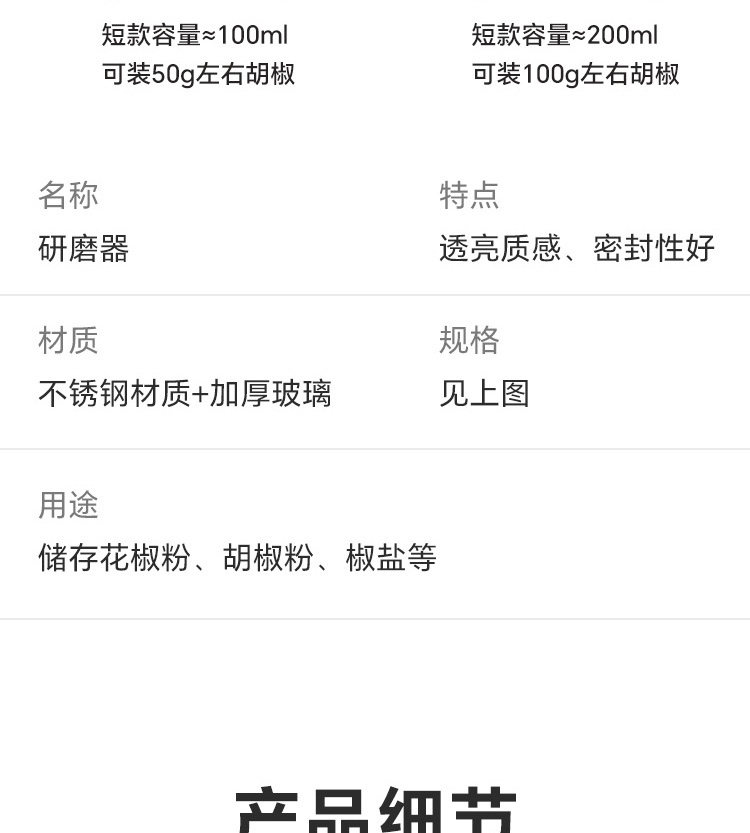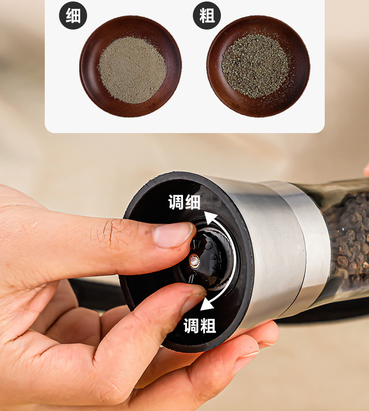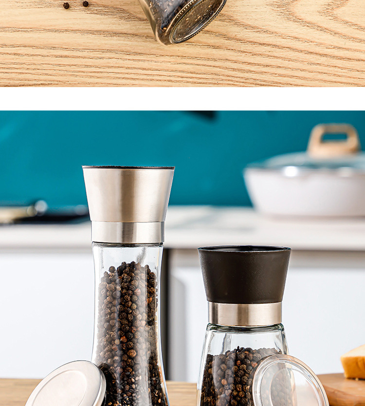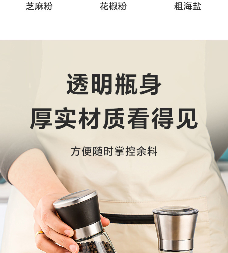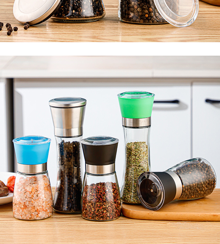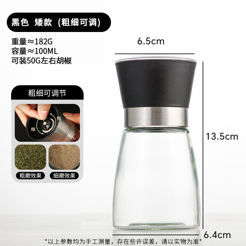 研磨器不锈钢手动研磨瓶家用玻璃调料瓶胡椒磨粉器厨房用品调味瓶