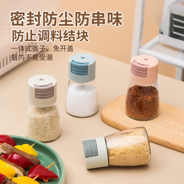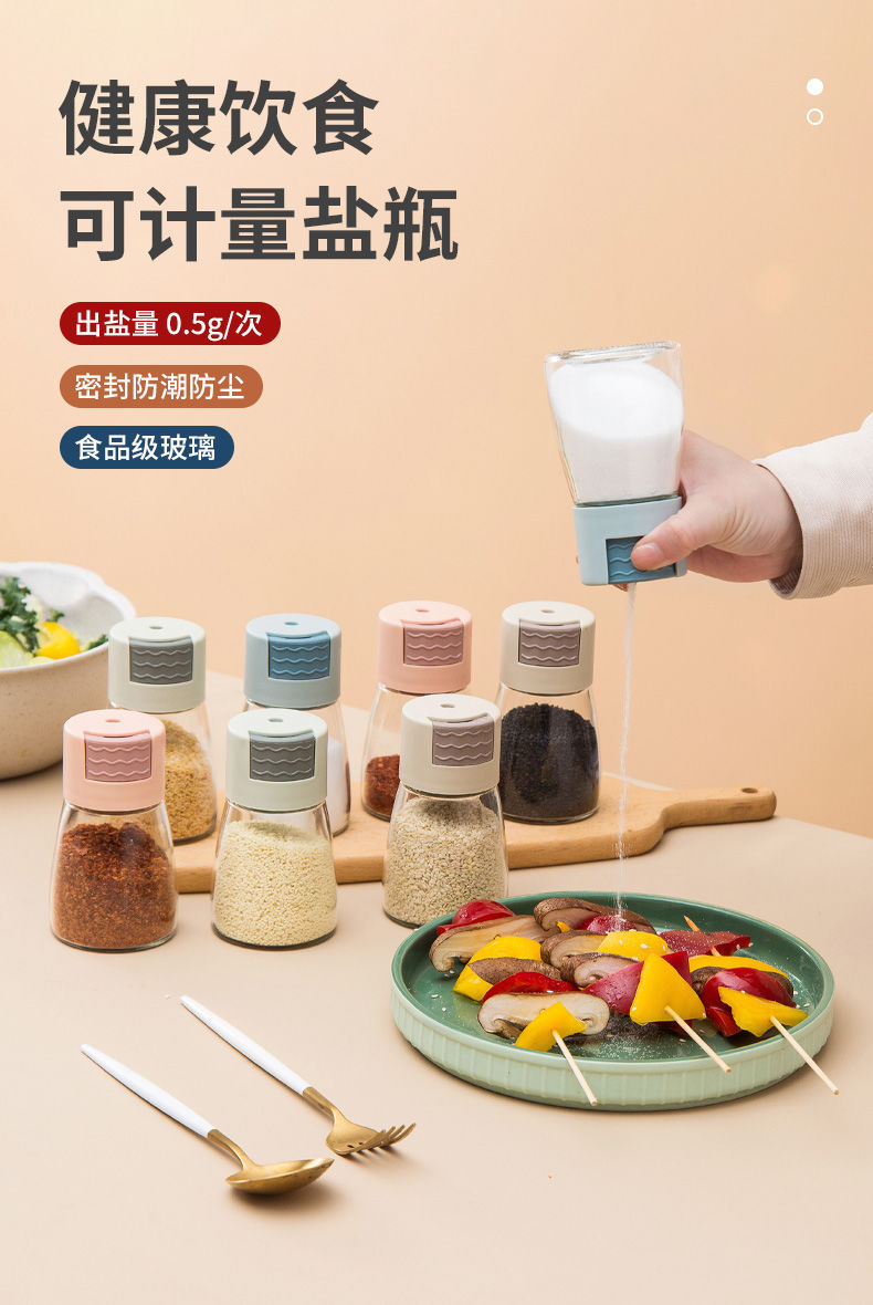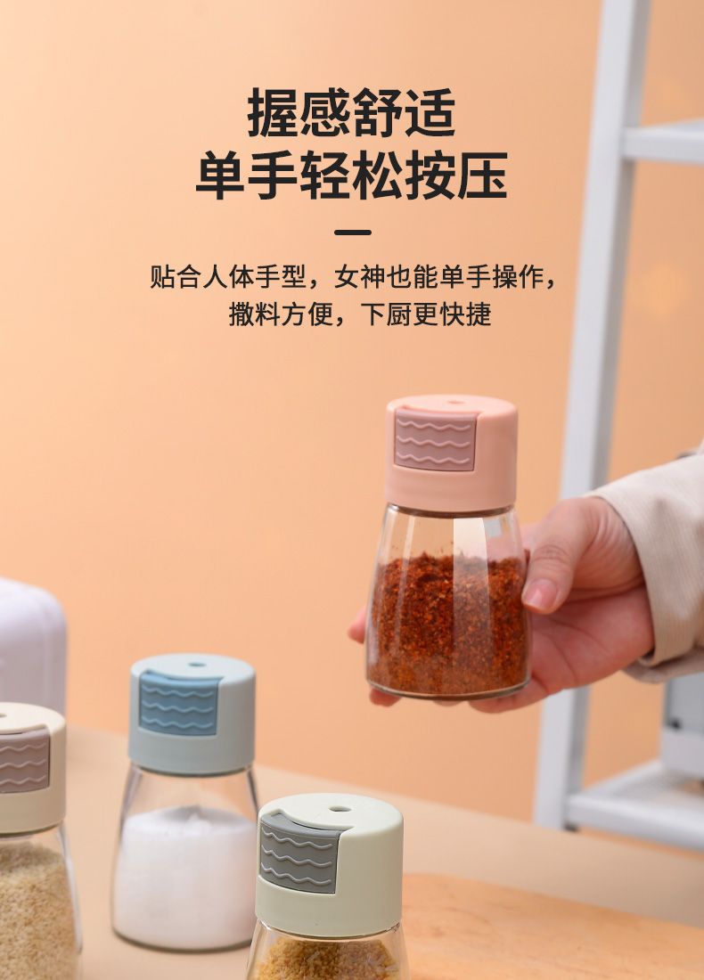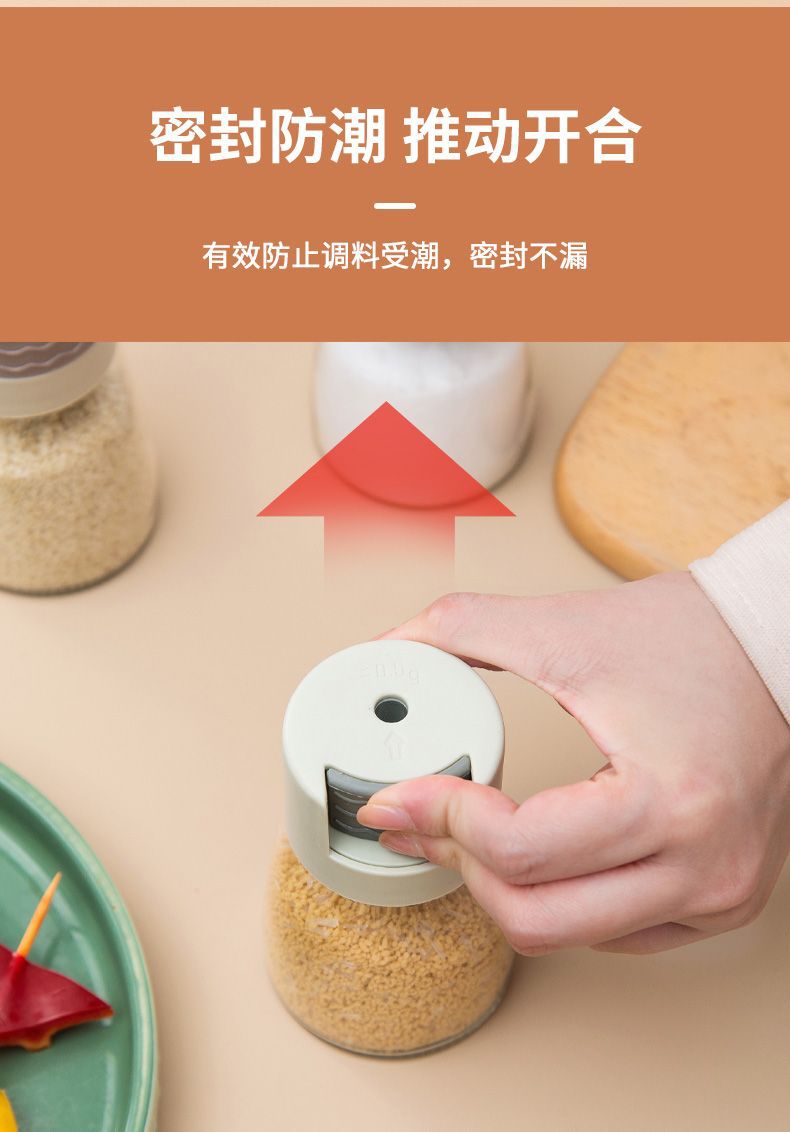 厨房玻璃调味控盐瓶按压式定量调味罐密封调料盒食盐罐味精调料罐