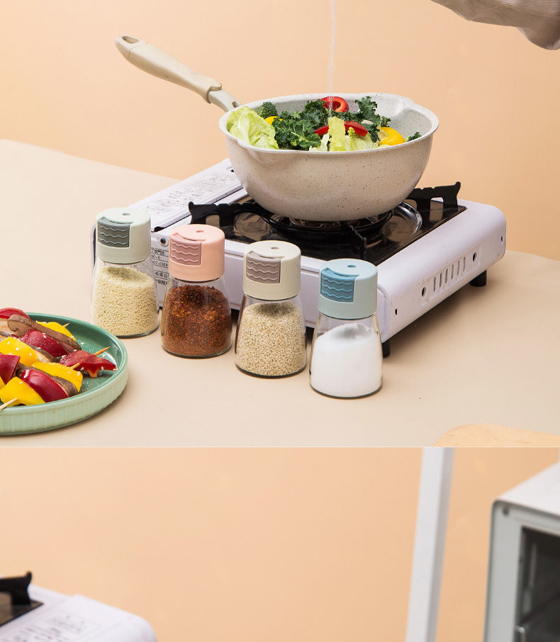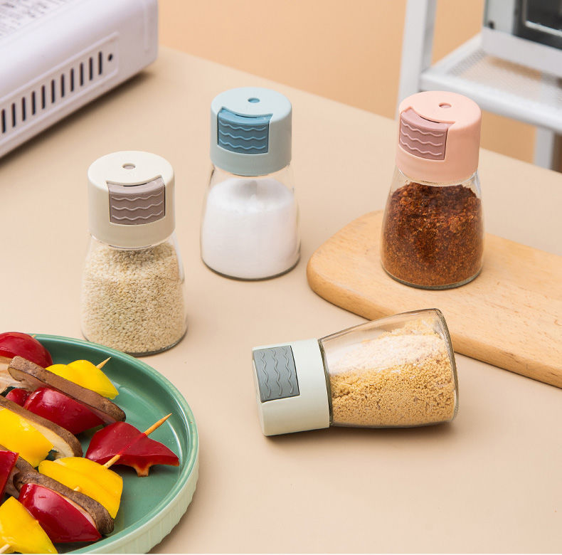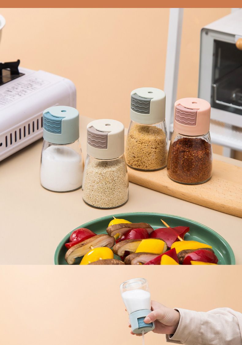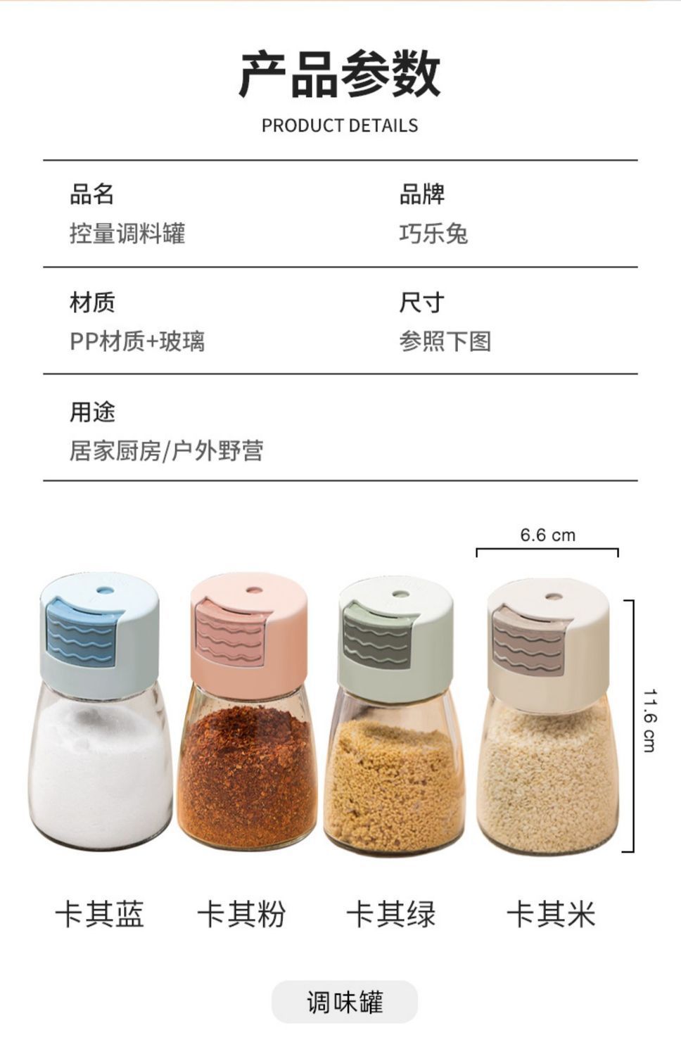 厨房玻璃调味控盐瓶按压式定量调味罐密封调料盒食盐罐味精调料罐