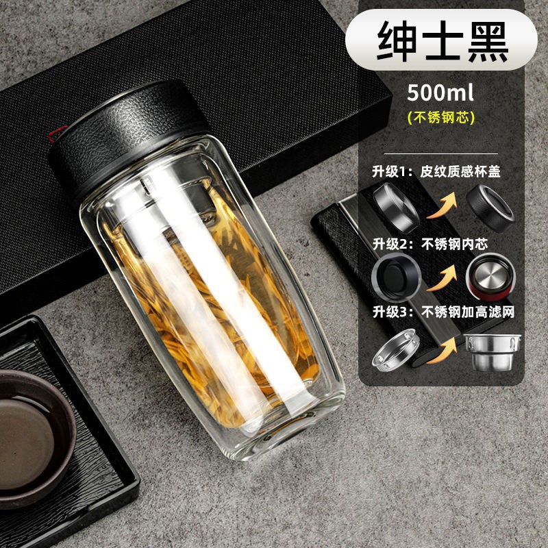 一键开盖茶水分离杯车载速开杯泡茶杯玻璃水杯定制礼盒伴手礼杯子