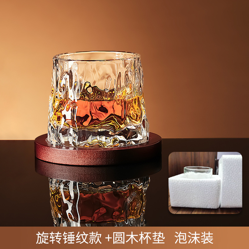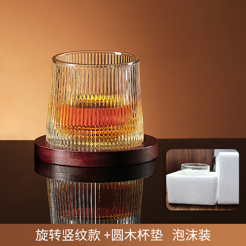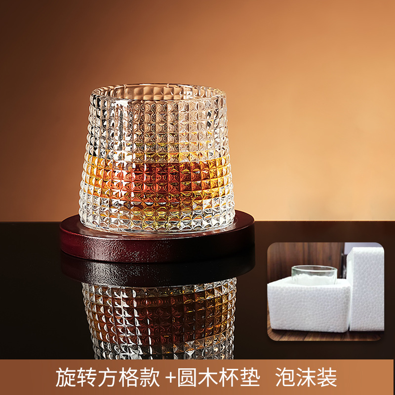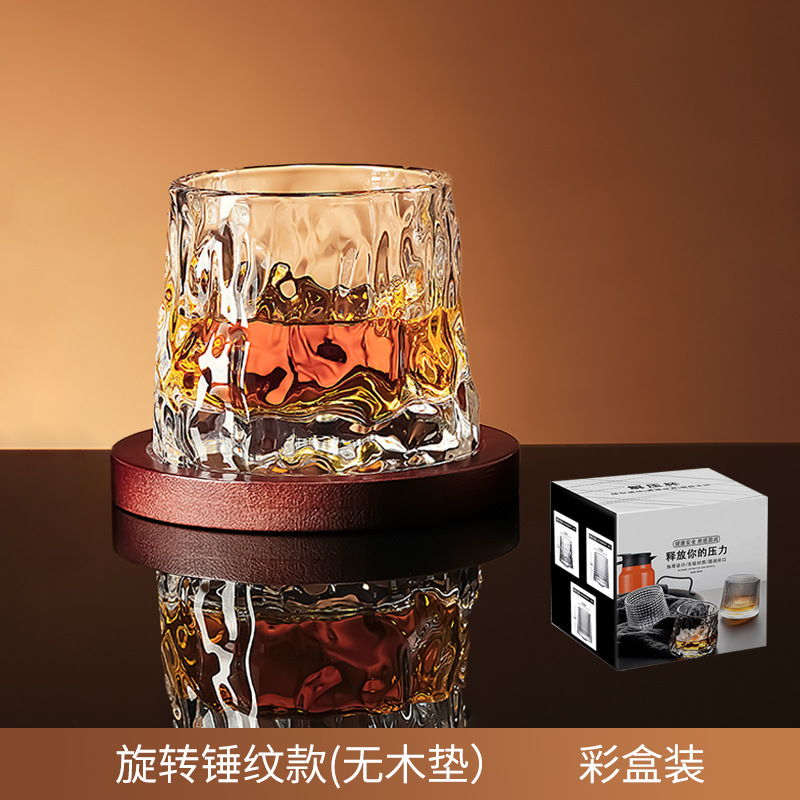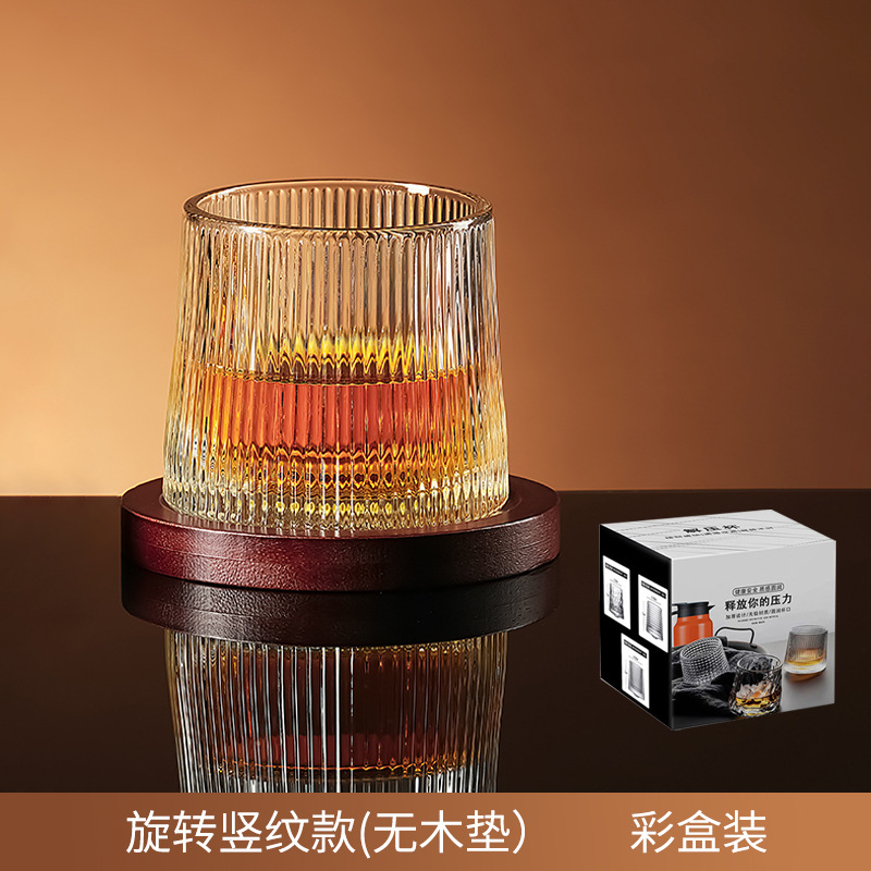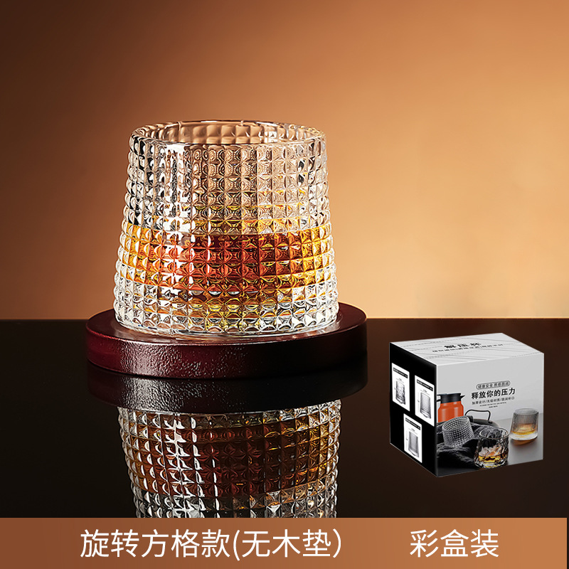 威士忌酒杯玻璃杯家用水杯ins啤酒杯不倒翁转转杯洋酒杯旋转酒杯