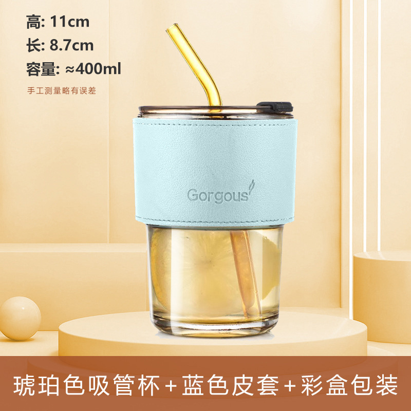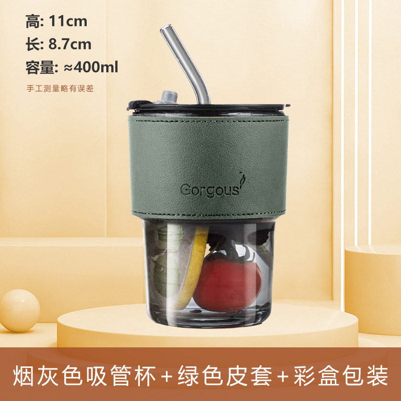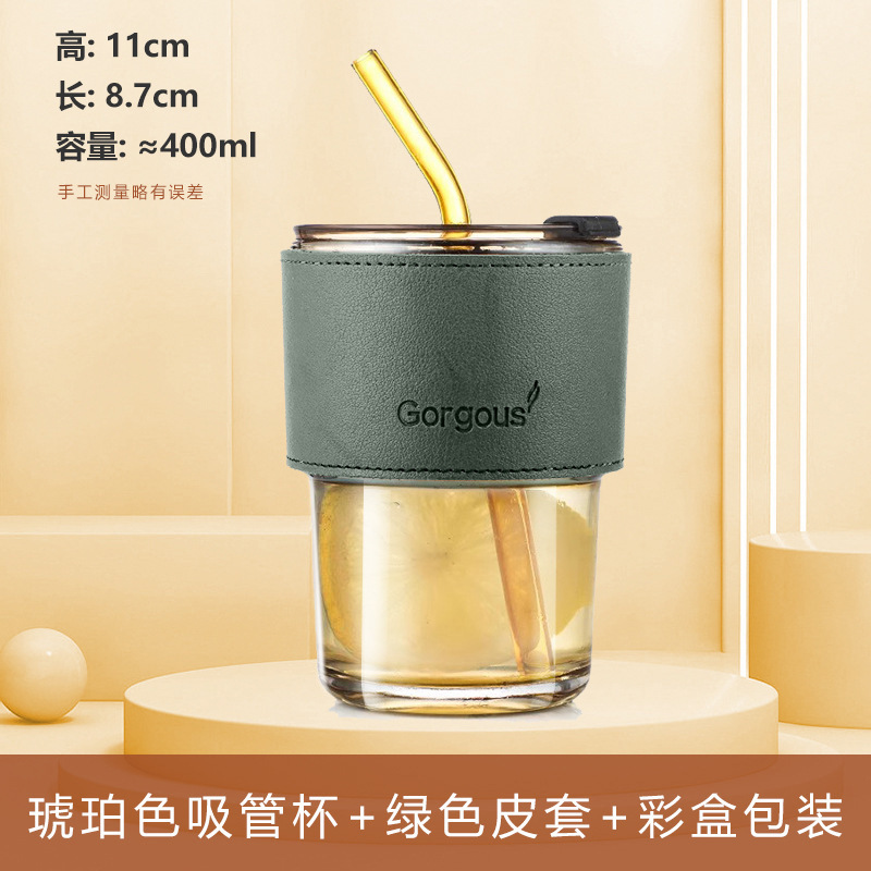 竹节杯吸管杯子办公室咖啡杯高颜值水杯家用玻璃杯果汁牛奶杯印制