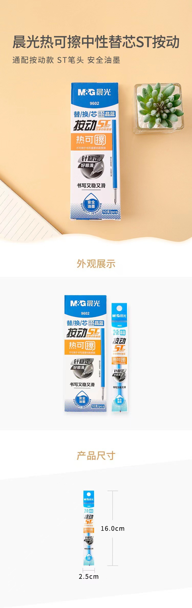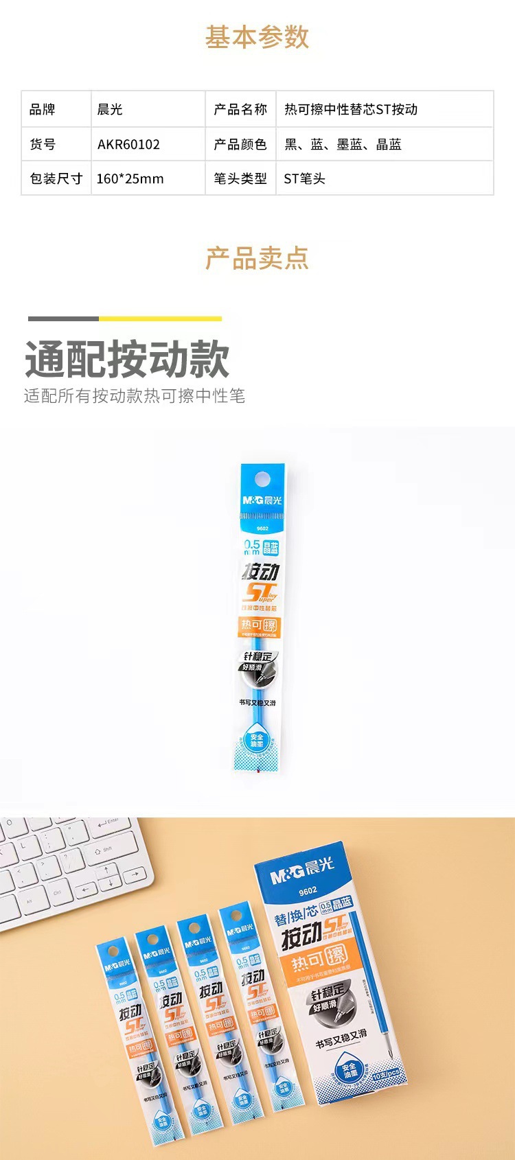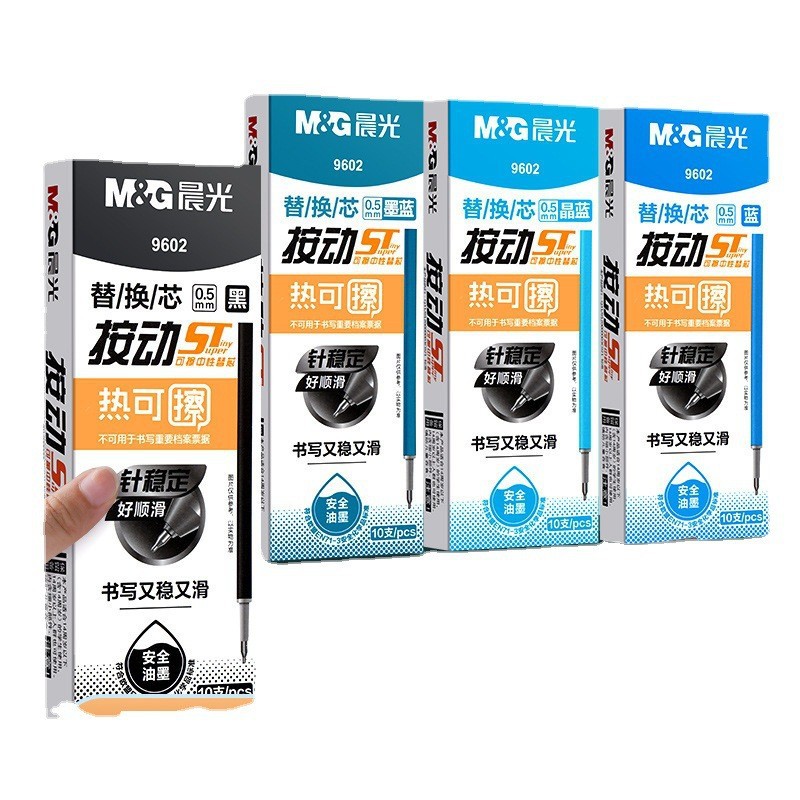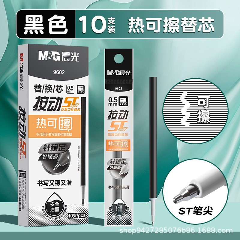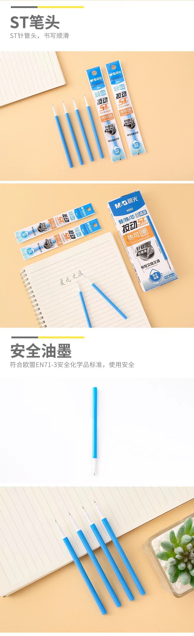 晨光按动ST头可擦笔小学生练字摩易擦黑蓝晶蓝墨蓝色笔芯AKR60102